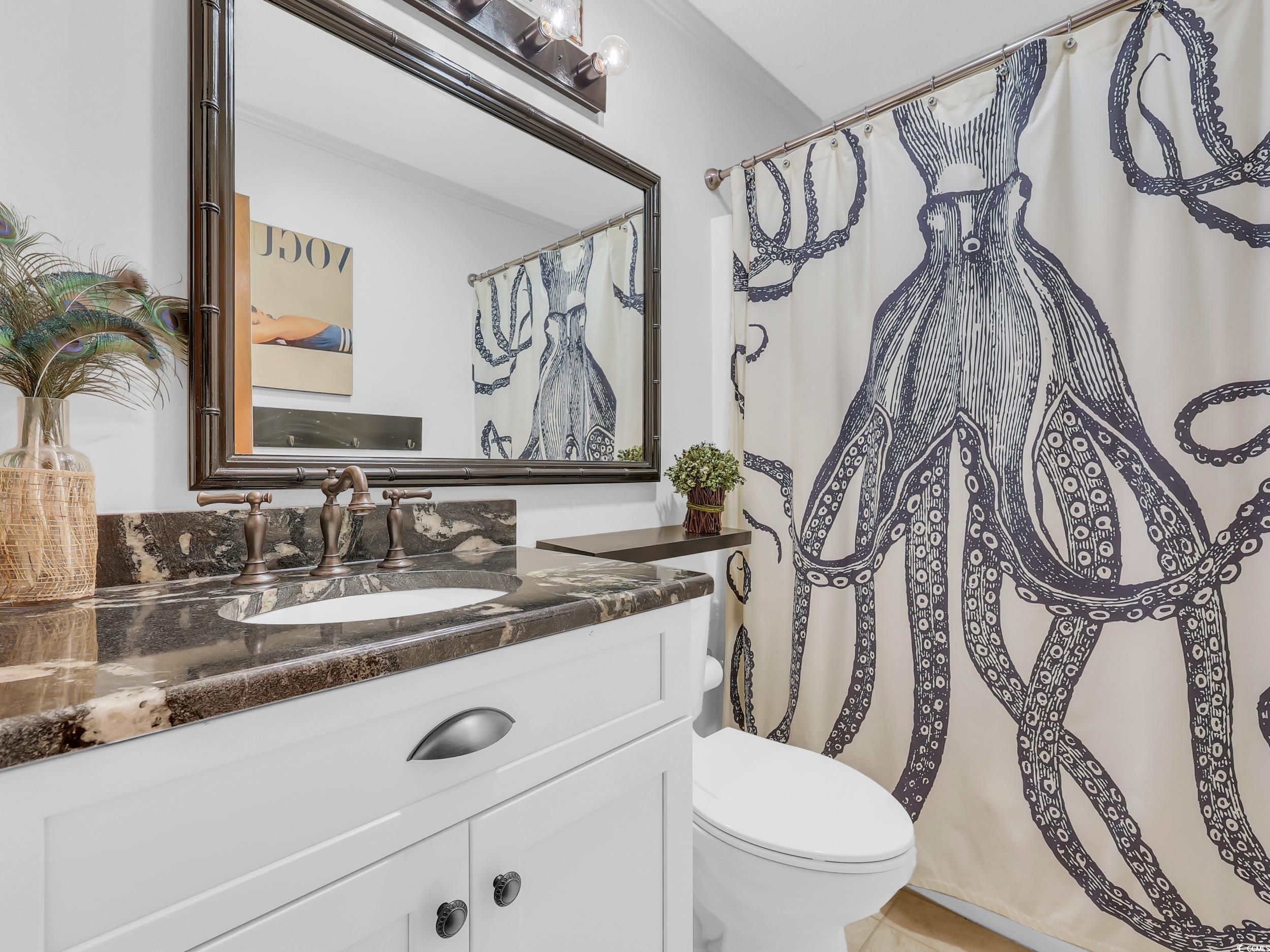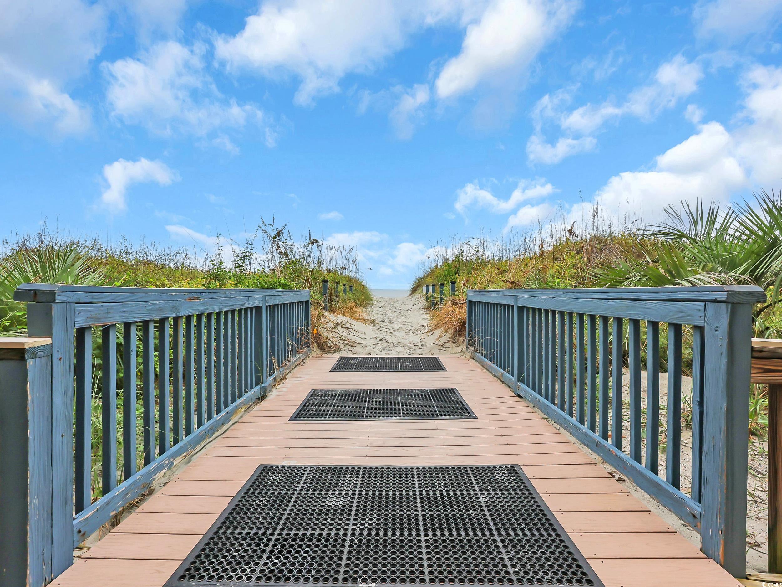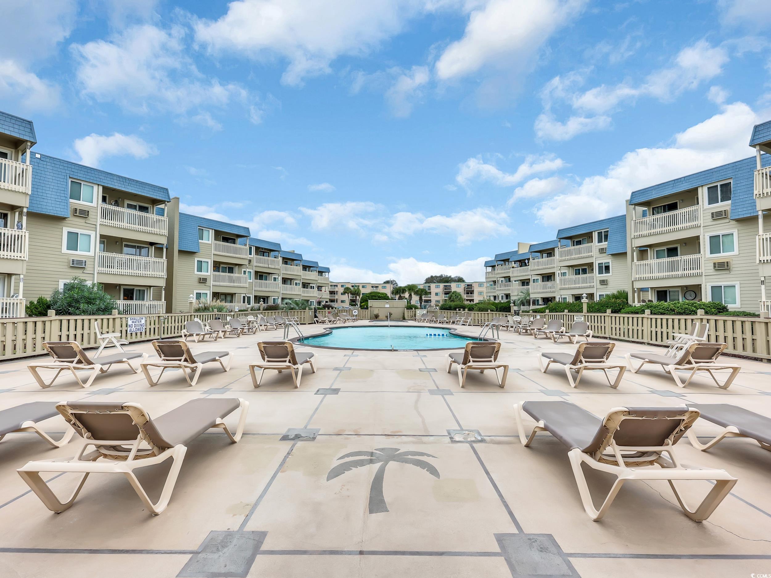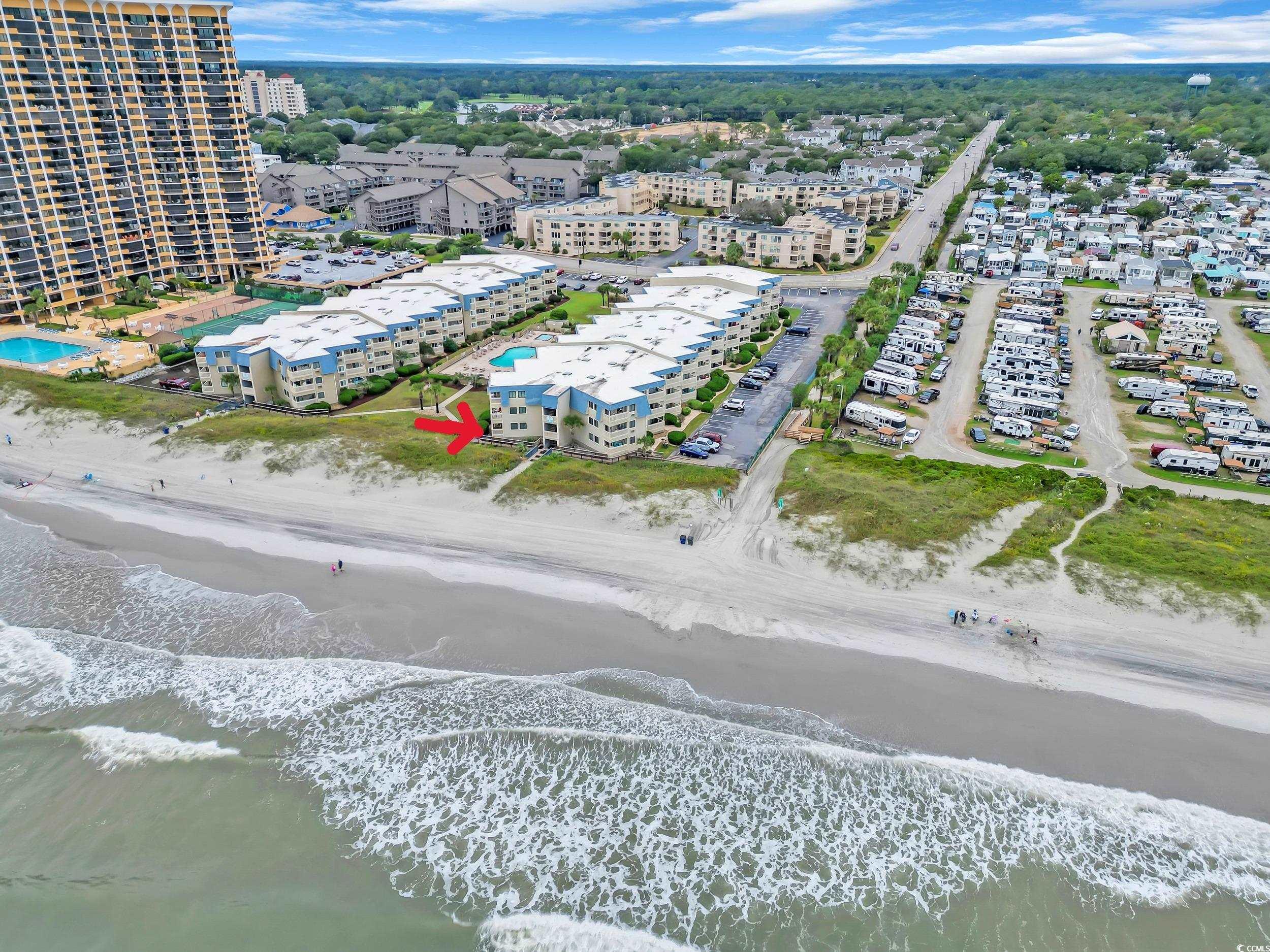 Welcome to this amazing oceanfront, furnished, first floor 2 bedroom 2 bath condo at A Place at the Beach IV in the coveted Shore Drive area of Myrtle Beach. This community is a true gem, with a mix of full time residents, second homes and rental investments. Families have owned here or vacationed here year after year for good reason. Short and long term rentals are allowed making this a good investment option. The showstopper inside is the completely renovated kitchen. New high end slow close cabinets, beautiful granite counters, and updated stainless appliances. The new cabinets also include a custom unit for the in unit washer and dryer. A rare find for oceanfront condos! No need to bring your quarters for the laundry center. There is also a utility closet with storage just inside your front door and hooks for hanging your sandy beach chairs just outside. The primary bedroom is spacious enough for a king size bed and has an ensuite bathroom with updated vanity and a corner shower This bedroom also has its own door to the balcony where you can sit outside, enjoy the sounds of the ocean, watch the dunes grass sway in the breeze and relax and rewind. The guest bedroom includes 2 twin beds and has access to the full hall bath with tub/shower combo and upgraded vanity. Both bedrooms have ceiling fans and full size closets for storage. This unit is equipped with a mini split system to keep the temperature comfortable throughout the unit and is much quieter than the typical wall units. The ocean and pier views greet you in the living room, and just step out the sliding glass doors onto the balcony where you can watch amazing sunrises. If you'd rather watch the sunrise from the beach, you are only about 30 steps from your doorway to the sand. No lugging chairs up and down multiple flights of stairs, and its just a quick trip back to your own kitchen for a sand free lunch. There is a large community pool, kiddie pool, lounge chairs, picnic tables, and grilling areas. Great spot to socialize with your neighbors and meet new friends. If you want a night out, you are just a few blocks from local favorites such as Flip Flops, Ocean Annie's and Finn McCool's. Want to do some shopping? Just hop in the car and be at Barefoot Landing, Broadway at the Beach or Tanger Outlets in just a few minutes. This location is convenient to just about anything you could want or need. Make your appointment soon. These ocean front units do not last long!