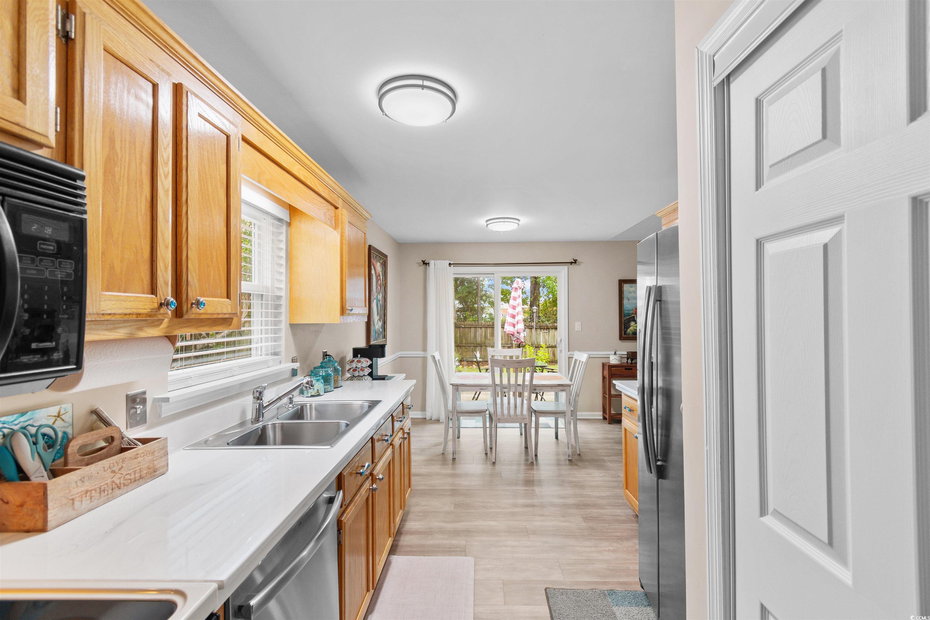***OPEN HOUSE Saturday October 18th 12-3pm*** YOU FOUND IT !! THIS FABULOUS 3 BEDROOM 2 BATH HOME , is just minutes for the Airport, minutes for pharmacies, minutes from gas , grocery and dining , including the wonderful places to eat and shop at and around Market Commons. You are also just minutes from Myrtle Beach State park, oh and let's not forget the beautiful Beaches of the Atlantic Ocean !! This Amazing home has so many upgrades that all you need to do is move in and enjoy. Some of the upgrades include ; 2017 10x16workshop / outbuilding. In 2018 all windows replaced, double hung 130 mph hurricane proof windows, Sliding glass doors , warranty transfers to buyer. Also in 2018 new hot water tank. In 2019 New HVAC system installed by One Hour Heating and Air, 24,000 BTU 18 Seer split heat pump system, New owners can purchase a club plan with monthly payments , has a twice a year inspection . Also in 2019 Bedroom carpets from Lowes. In 2020 Walk in shower by West Shore in guest bath. In 2021 New roof, stain resistant , limited Lifetime warranty transfers to new owner, must call Up and Over to get contact info for manufacturer (Atlas). In 2023 Cultured Marble countertops in kitchen . In 2025 New Flooring: kitchen, living room and hallway, hall closets , waterproof floating laminate with moisture barrier under laminate. Also in 2025 New vanity top and faucet primary bath, and lastly in 2025 a Genie garage door opener. This property has a private locked storage area ,that can be used for a very nominal monthly fee, so park your boat , RV, or what ever in the locked storage are right around the corner . Also there is a free over flow parking that is available for use as well. This place has it all, a move in ready home, with tons of upgrades, close to all the fine dining shops and grocery stores, near Myrtle Beach State park, and easy access to the Atlantic Ocean, the Myrtle Beach International Airport and easy access to route 17. all just minutes from the door step All the hard work has been done on this home all you have to do is move in and enjoy !!