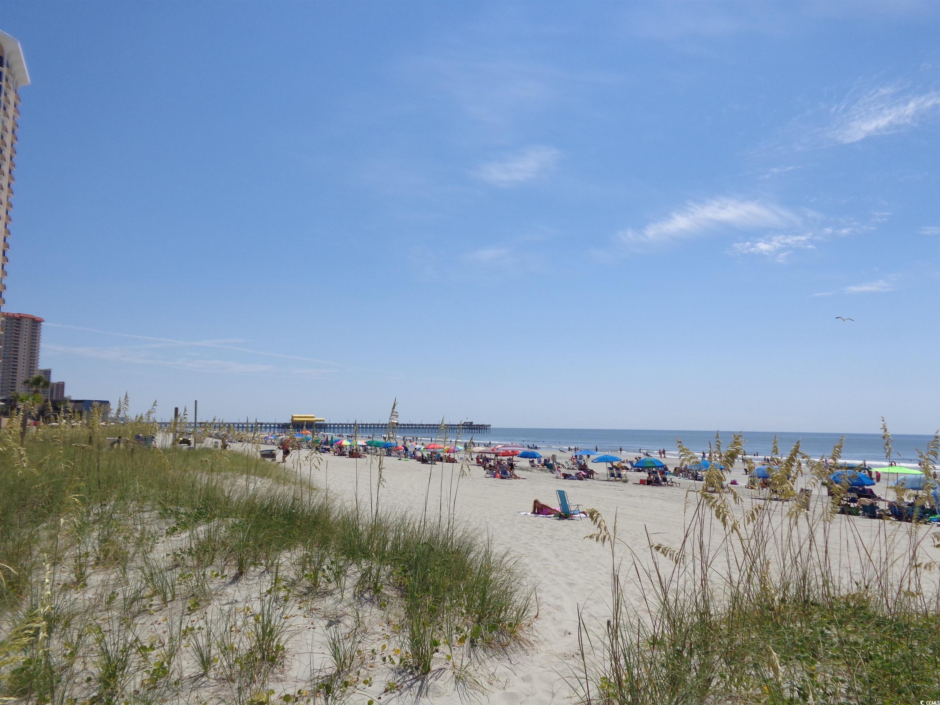 Location, location, location! Just cross the street and you're on the beach, it doesn't get more convenient than this. Don't miss the opportunity to own your own beach retreat in the highly desirable Shore Drive area, just a short walk from the famous Ocean Annie's Beach Bar. This beautifully furnished 2-bedroom, 2-bathroom first-floor condo is move-in ready and perfectly designed for your coastal getaway. The fully equipped kitchen features ample cabinet space, a breakfast bar, and lots of counter space for entertaining. Additional features include central heating and air conditioning and an in-unit washer and dryer for added convenience. The spacious living room opens directly to a private balcony, ideal for relaxing and enjoying the coastal breeze after a day in the sun. Residents enjoy access to two community pools, including one oceanfront pool and a second pool located at Building B. Perfectly situated near all that the Grand Strand has to offer, including Tanger Outlets, Restaurant Row, Walmart, Barefoot Landing and Broadway at the Beach, this property is ideal as a vacation home, rental investment, or primary residence. Schedule your private showing today and see for yourself why Shore Drive remains one of Myrtle Beach's most sought-after beach communities. Square footage is approximate and not guaranteed. Buyer is responsible for verification.