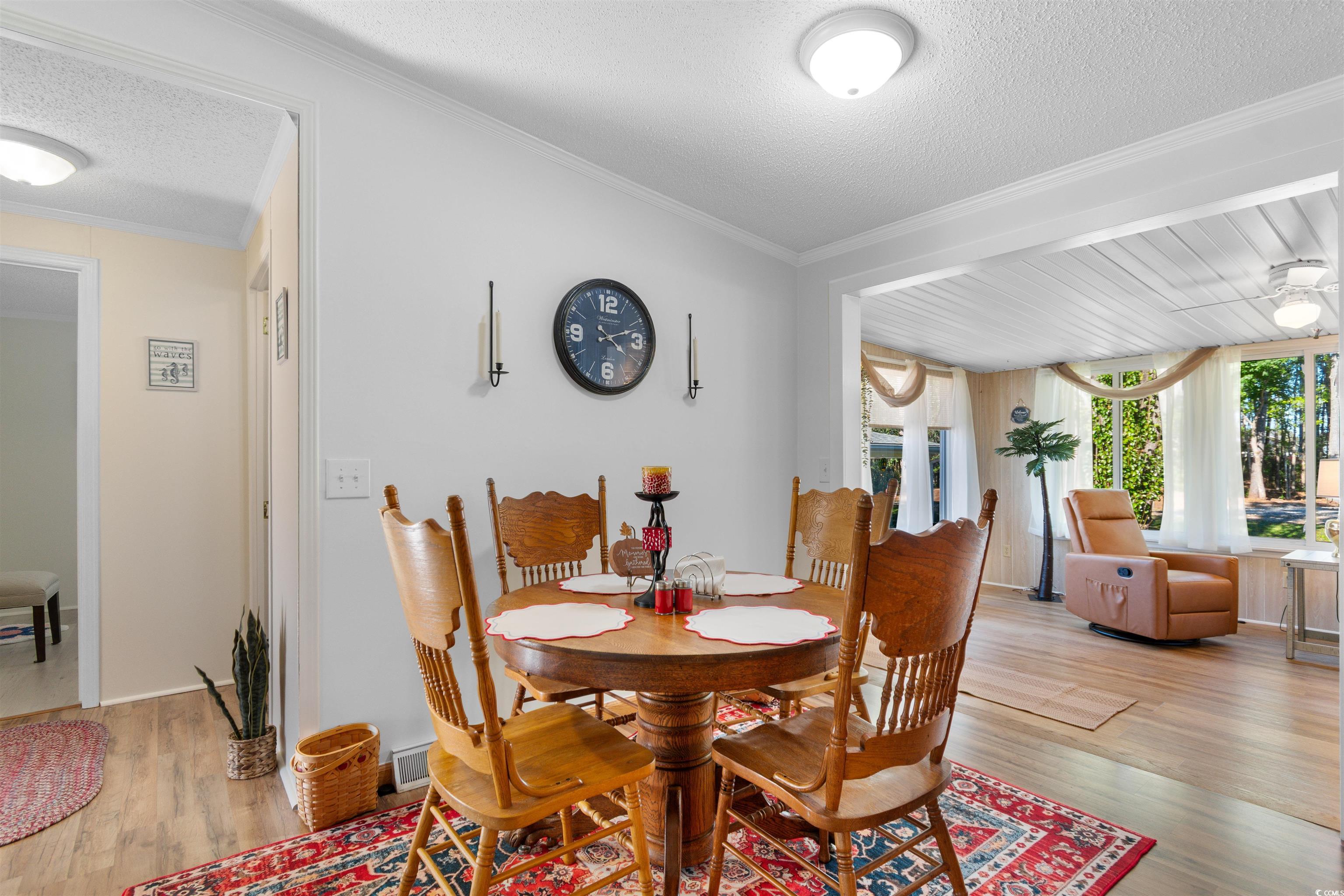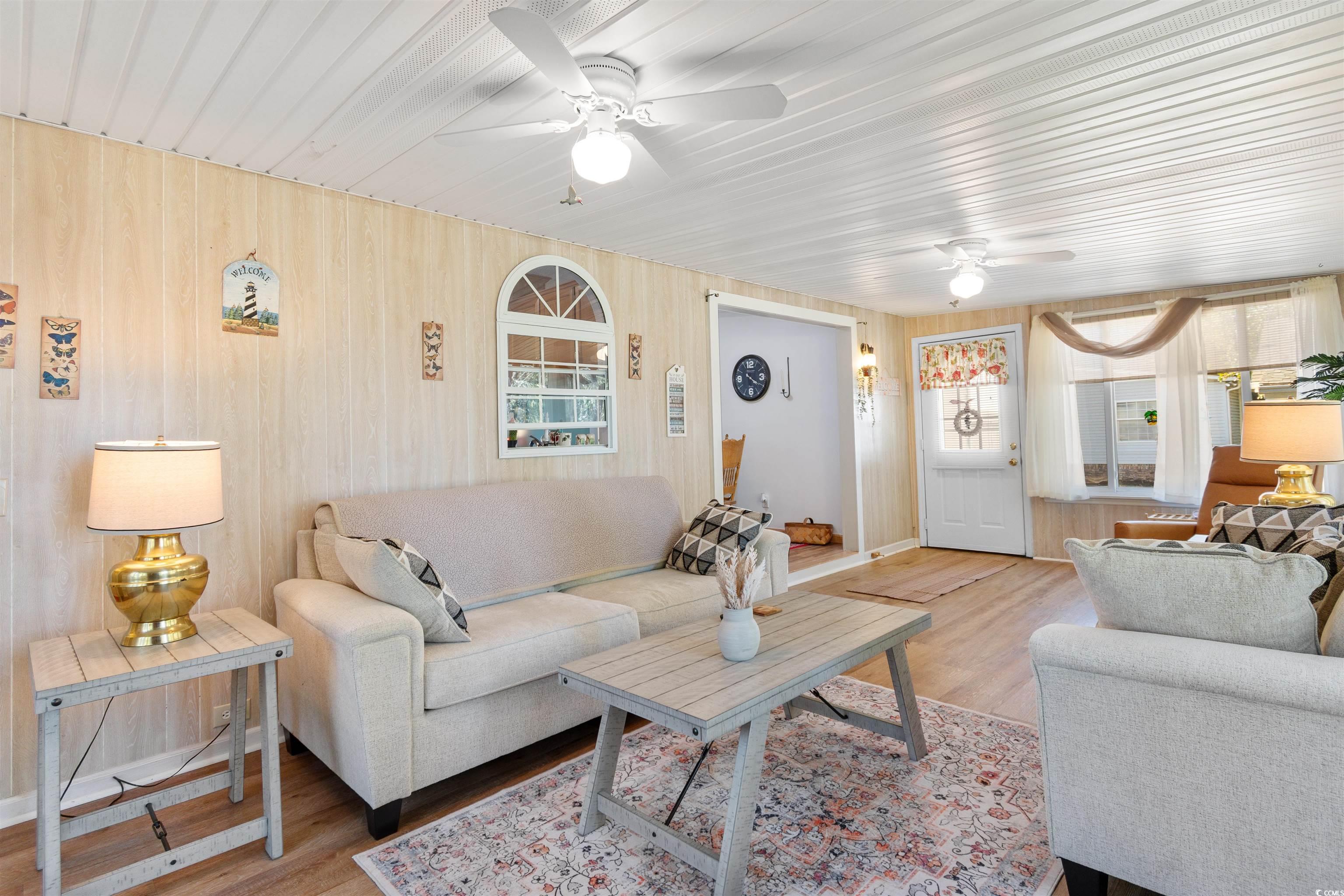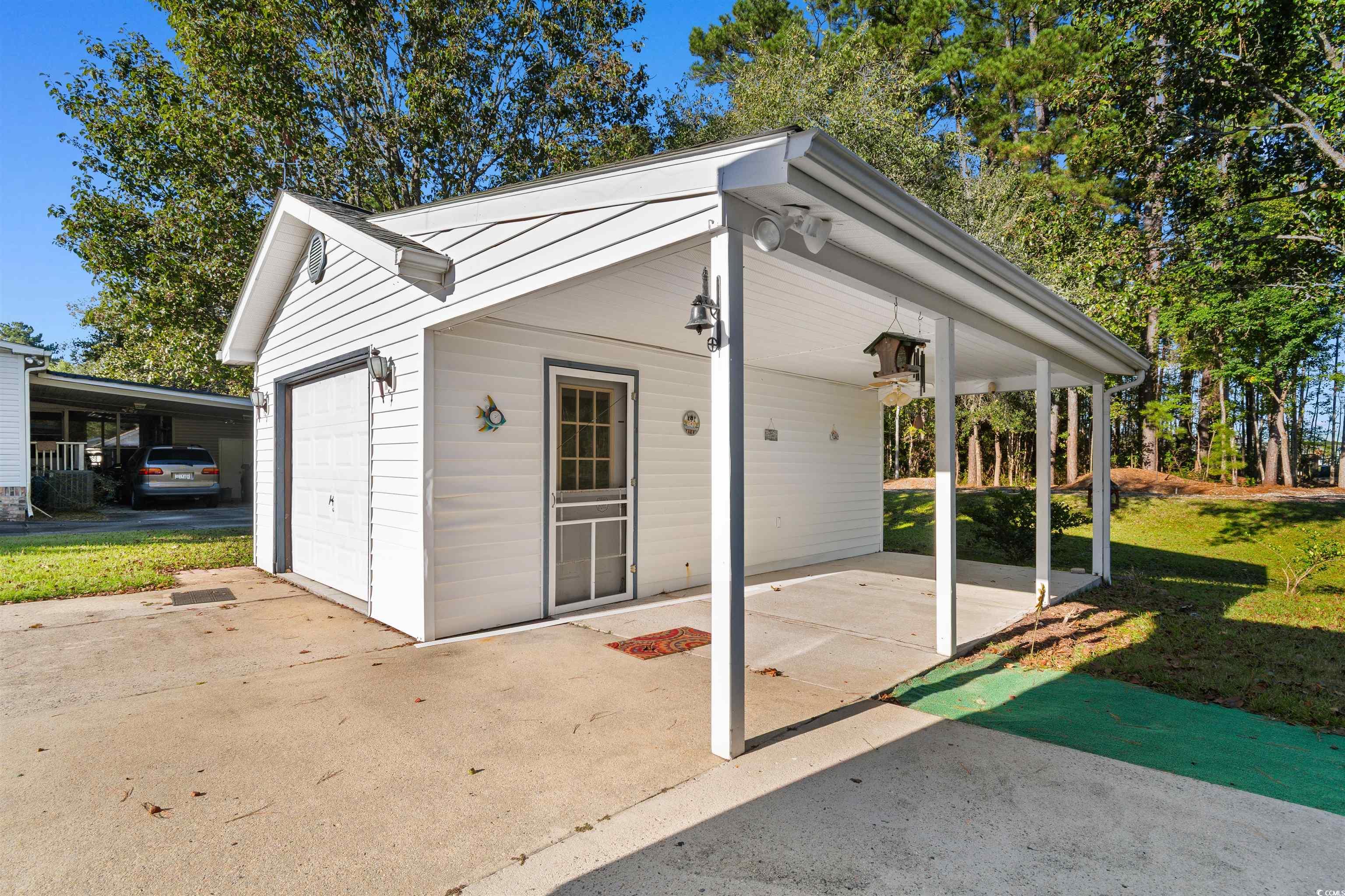 Be in by New Years!!! Welcome to this beautifully maintained 3 bedroom 2 bath home offering 1560 sqft of comfortable coastal living. Freshly painted inside, this home shines with a clean, inviting feel. Enjoy peace of mind with a brand new roof installed in 2024 and spacious rooms designed for easy living and entertaining. The seller enjoyed hanging out in the Carolina Room that also has a gas fireplace. The kitchen is lined with plenty of cabinets and decorated with SS appliances and the laundry (just off the kitchen) has a brand new washer and dryer. This home also has a detached one car garage perfect for your fishing boat, a workshop or extra storage. Home has new screens on windows, new hurricane straps and new vapor barrier just installed 2024. You'll love being in Captains Choice which is just 10 minutes to the beaches of Cherry Grove, shopping, dining, and all the fun that North Myrtle Beach has to offer, oh and it's a short drive to North Myrtle Beach HS, McLeod Hospital and Rt 31. So whether you're looking for a primary residence, vacation getaway, or investment opportunity, this home is move in ready, furnished, and waiting for you.