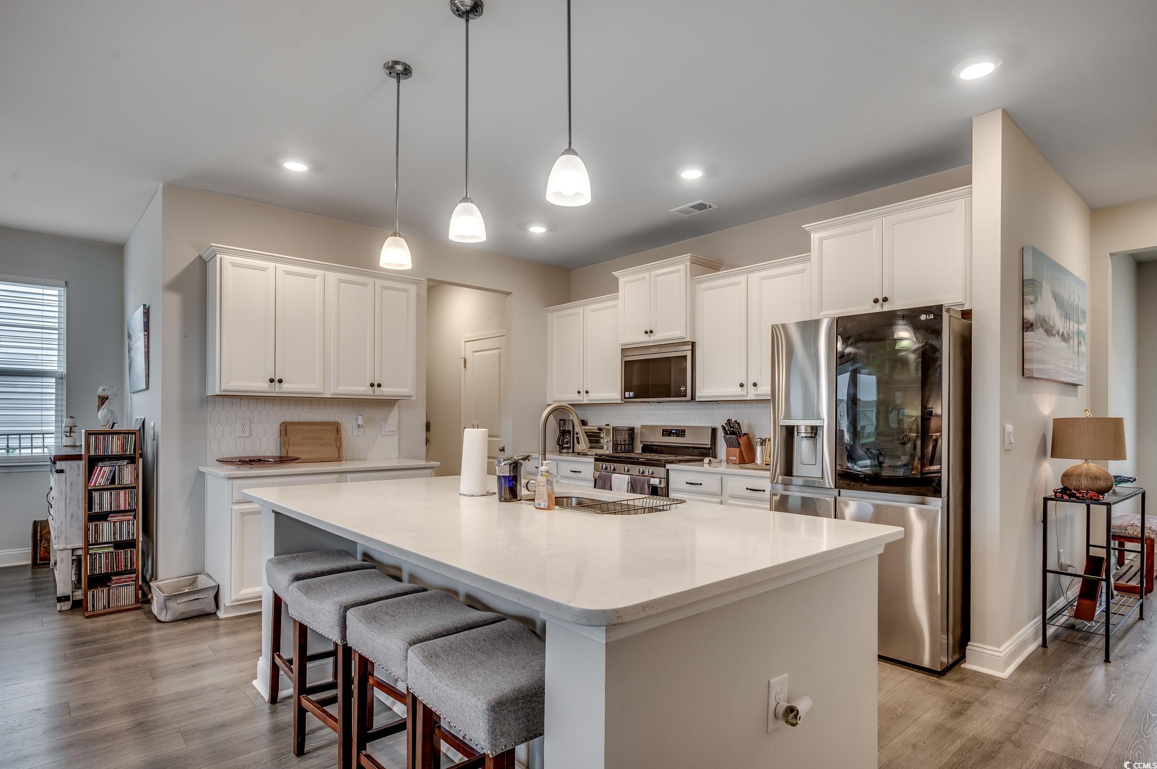 Welcome to this stunning 4-bedroom, 2.5-bath Belfort floorplan located in the highly desirable community of The Farm at Timberlake in Myrtle Beach. This thoughtfully designed home features a spacious first-floor primary suite complete with a walk-in closet and en-suite bath, offering both privacy and convenience. A first-floor laundry room adds to the home's functionality. The open-concept kitchen boasts modern appliances, abundant cabinetry, a breakfast bar, and flows seamlessly into the bright great room and dining areaperfect for everyday living and entertaining. Upstairs, you'll find three additional bedrooms, a full bath, and a versatile loft ideal for guests, a home office, or playroom. Enjoy outdoor living with a screened porch, private backyard, and patioon a premium lot with a beautiful pond view, great for relaxing or hosting gatherings. The owner has added gutters and a sprinkler system enhancing exterior maintenance and protection. A two-car attached garage provides ample parking and storage. Located in the top-rated St. James school district and just minutes from shopping, dining, golf, the Intracoastal Waterway, and the beach. Community amenities include: Two outdoor pools, fitness center, open-air pavilion, playgrounds, fishing dock, walking trails, and an indoor pickleball court. The Farm at Timberlake offers a vibrant lifestyle with year-round events and activities.