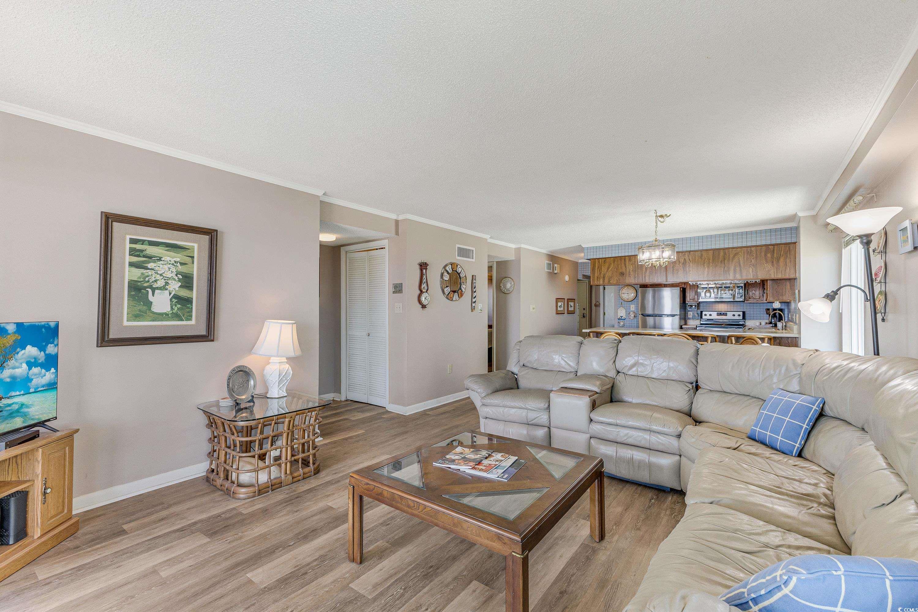 Opportunity is knocking...and it comes with an ocean view! Dont miss this end-unit, oceanfront, 3-bedroom, 3-bath condo in the highly sought-after Tidemaster buildingperfectly positioned on the oceanfront with panoramic beach and water views. This open concept, end unit is filled with natural light from multiple windows and the large sliding glass door that showcases the stunning ocean views from the main living areas, kitchen and primary suite. Step out onto your large private balcony and take in the sights and sounds of the Atlanticperfect for morning coffee, evening sunsets, and everything in between. Offered fully furnished, this condo includes everything you need to start enjoying coastal living right awaywasher and dryer, dishes, pots, and pans included. The interior features easy-care tile and vinyl flooring throughout (no carpet!), making beach clean-up a breeze. This unit has been family owned and loved since 1988 and it is an amazing opportunity for the next owner to create their own oceanfront retreat or use it as an excellent investment property. Enjoy the many community amenities Tidemaster is known foran oceanfront pool, kiddie pool, expansive sundeck, grilling area, and private walkway directly to the beach. Owners may have golf carts, there is additional gated parking across the street for guests, coded elevator access is an extra security feature, and both short-term and long-term rentals are permitted, adding great flexibility and income potential. This is your chance to own a bright, open, end-unit in one of North Myrtle Beachs most sought-after oceanfront addressesready for your personal touch and years of coastal memories ahead!