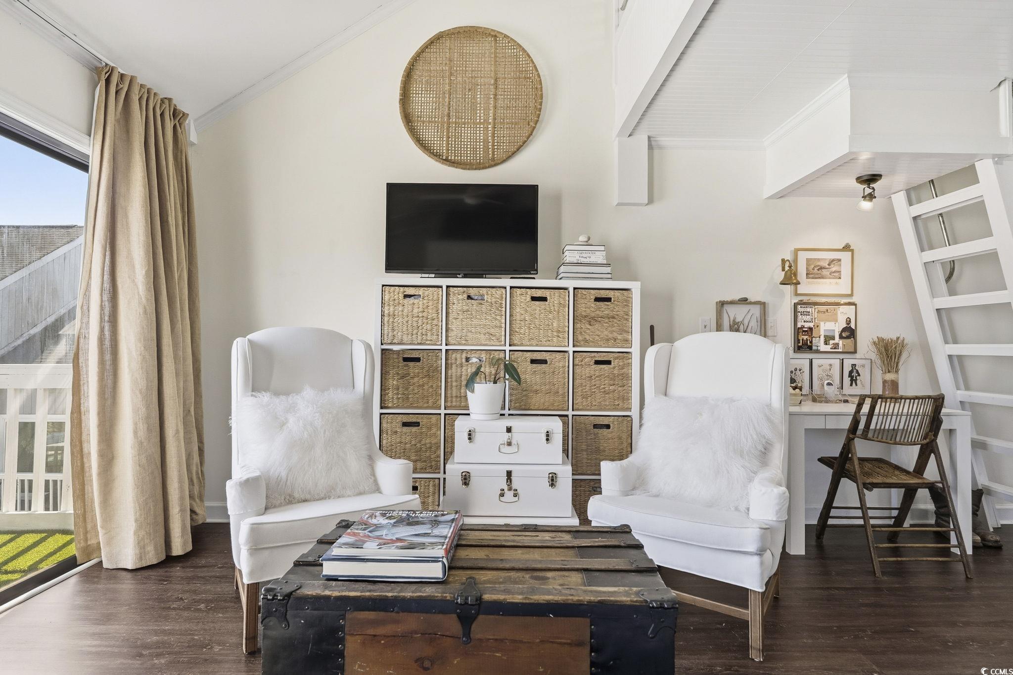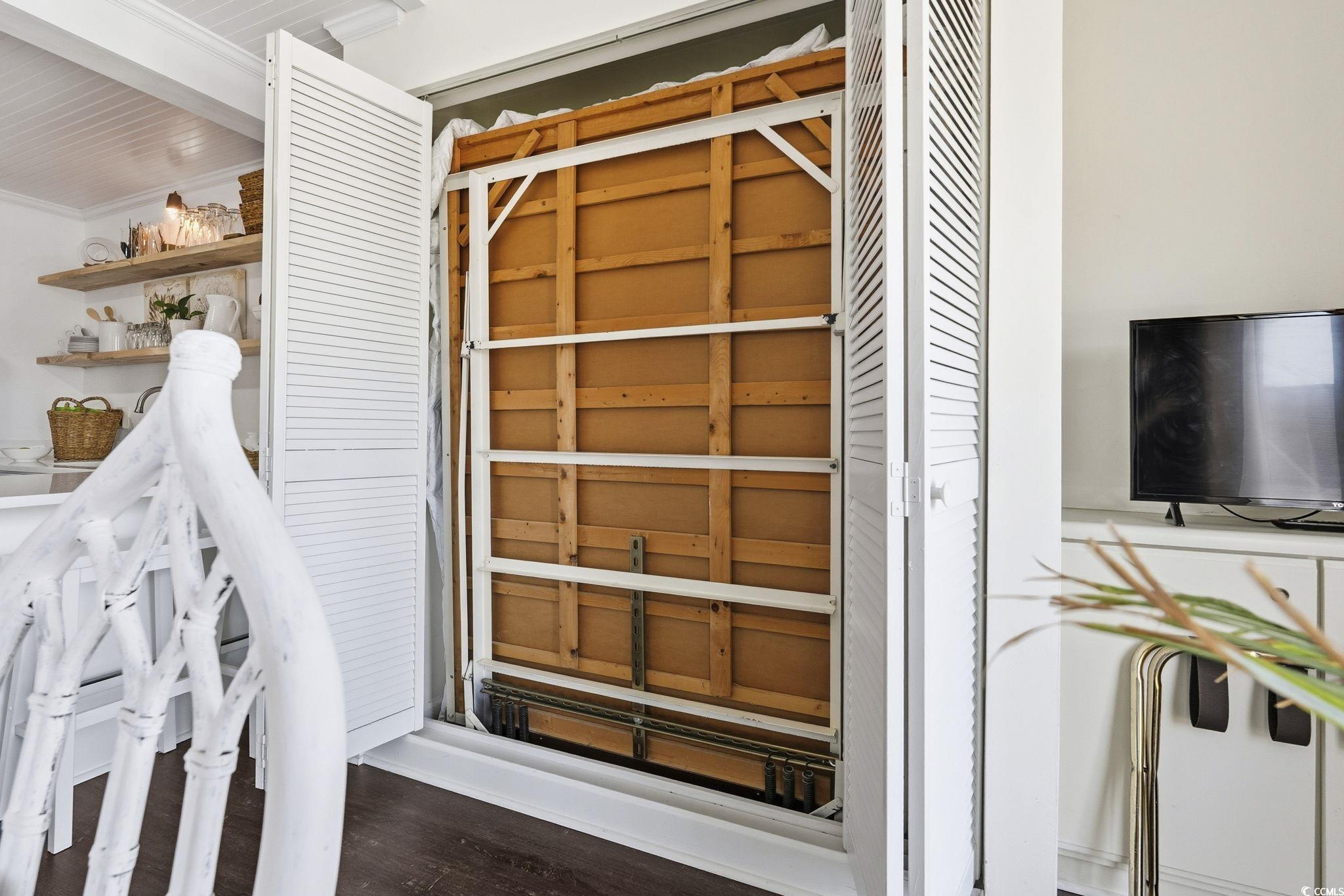 Experience modern elegance in this completely updated efficiency condo, thoughtfully redesigned with high-end finishes. Every detail has been refreshed. Featuring a brand-new HVAC, water heater, premium appliances, a fully renovated kitchen with sleek cabinetry and countertops, updated bathroom, and luxury flooring throughout. A custom-built loft area utilized as an extra sleeping area for guests while also having a Murphy bed on the bottom floor. Perfect for investors or those seeking a refined retreat, this condo permits short-term rentals, offering exceptional income potential. Move-in ready and beautifully finished, this is your opportunity to own a modern, low-maintenance escape where every element feels brand new. Located near Seacoast Medical Center and is approximately a short ride to Cherry Grove and North Myrtle Beach.