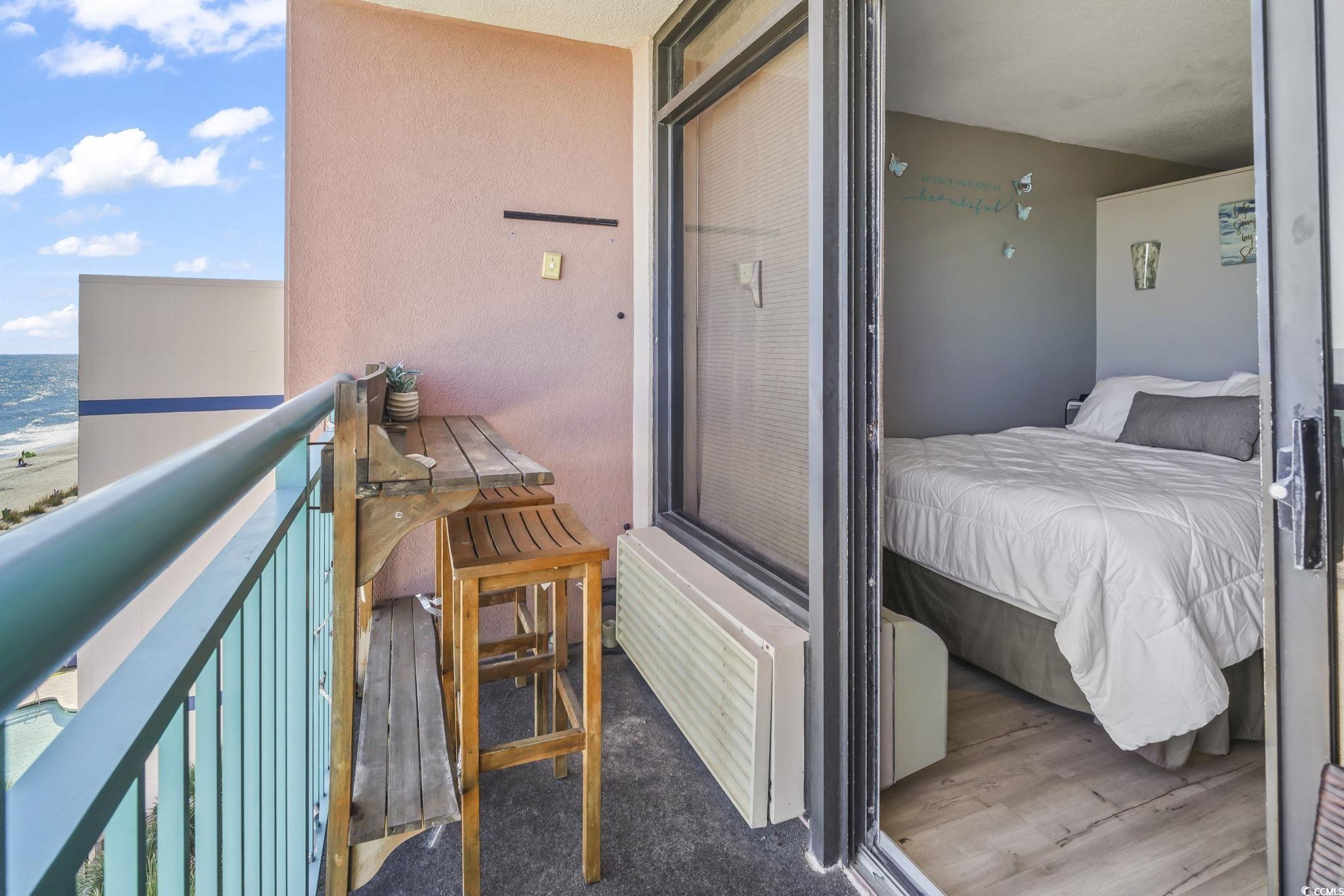 Experience coastal elegance in this brilliantly renovated oceanfront condo at Sandcastle South in Myrtle Beach, South Carolina. This uniquely designed efficiency suite lives like a one-bedroom condo, featuring thoughtful upgrades and stylish finishes throughout. Enjoy a spa-inspired bathroom, cozy fireplace, granite dining counter, and the unbeatable experience of waking up to panoramic views of the Atlantic Ocean each morning. Every inch of this retreat exudes comfort and sophistication, creating the perfect blend of luxury and relaxation. Sandcastle South offers fantastic amenities including indoor and outdoor pools and spas, a lazy river, poolside grill, brand-new state-of-the-art fitness center with sauna, and the on-site Island Breeze Grill restaurant. Conveniently located near many of Myrtle Beach's top attractions, dining, and entertainment options. Don't miss the chance to make this oceanfront gem your getaway or investment property contact your trusted agent today to schedule a private showing!