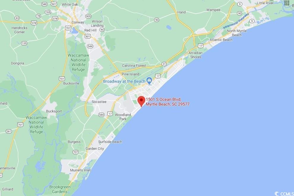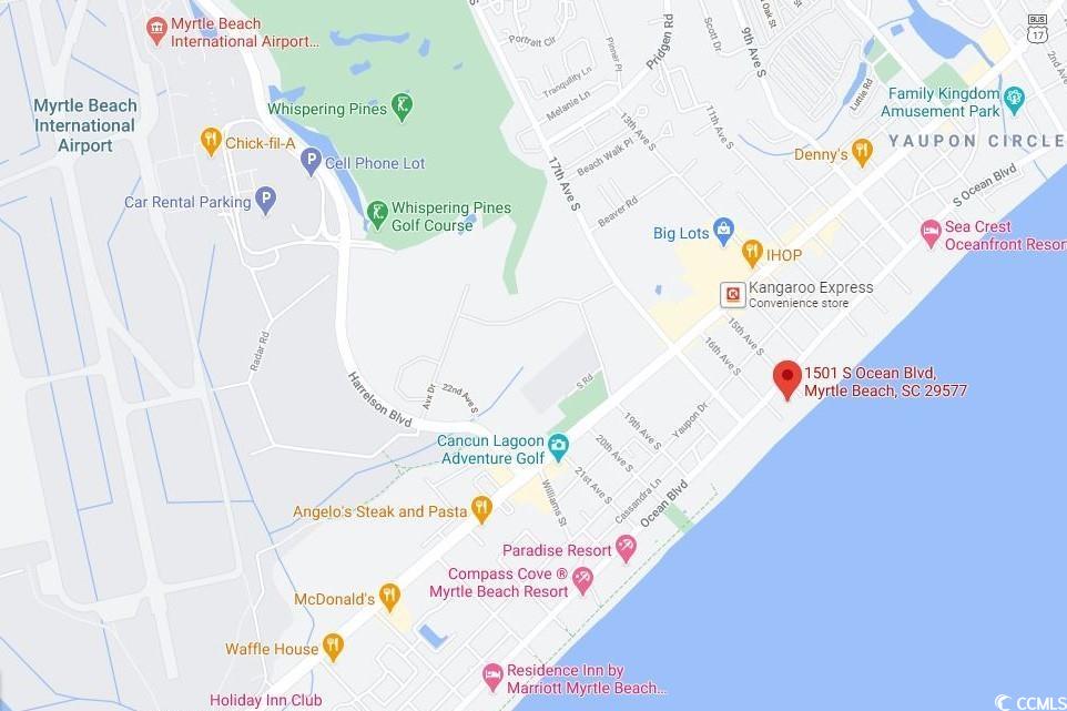 Landmark Resort is an oceanfront building located at 1501 South Ocean Blvd MBSC 29577. GPS 33.673354, -78.900671Courtesy of Re/max Southern Shores Gc - Cell: 843-450-8760