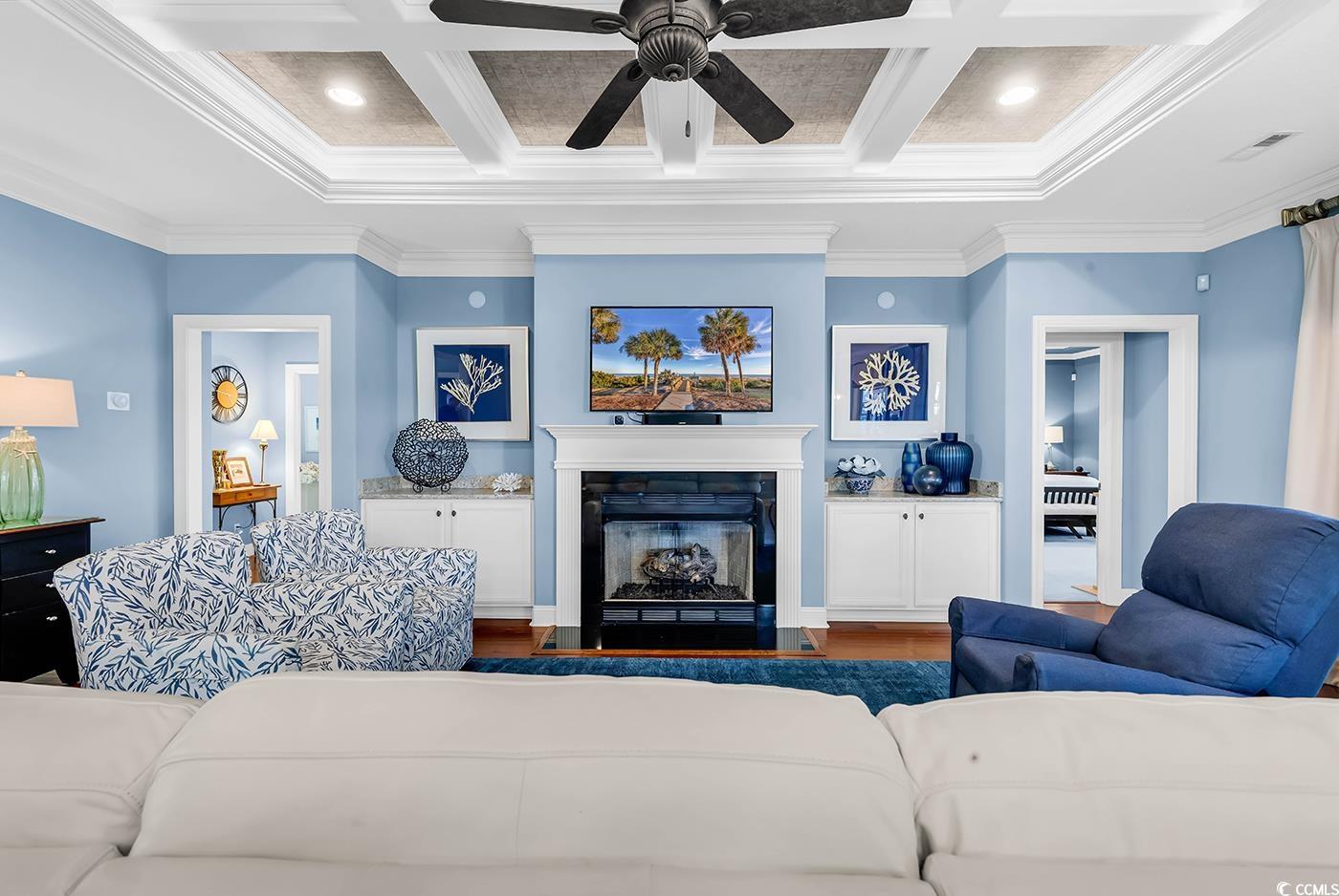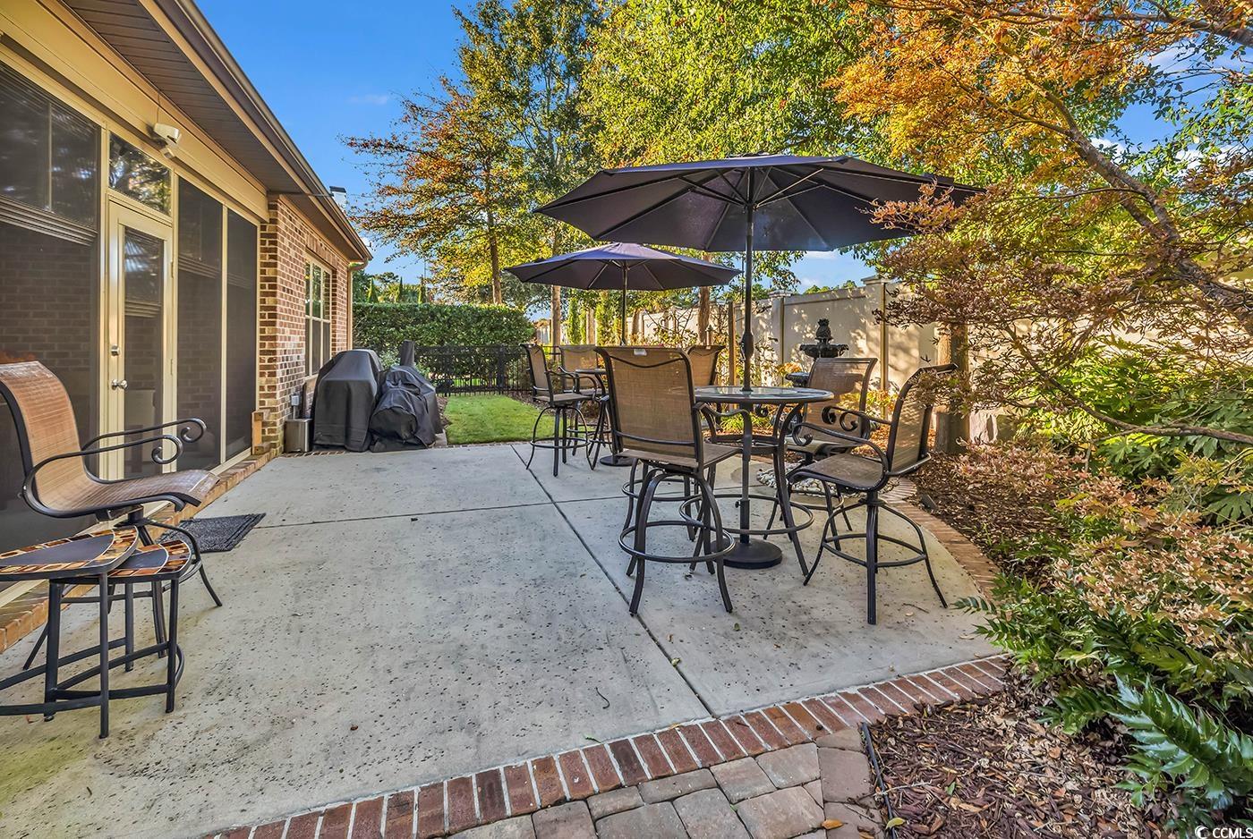 This gorgeous, former model, loaded with upgrades, in prestigious Cipriana Park nestled in the Grande Dunes can be your next dream home. Comes with a membership to the Ocean Club with a private beach and pool including resturant dining, pool bar and a beautiful view of the ocean while you eat. You can walk, golf cart or drive to the beach and enjoy lots of activities nearby. This custom all-brick home, once featured on HGTV, is the popular Sabal Floorplan and is located in a cup-de-sac. Beautifully maintained and very private. Garage is heated/cooled and not included in heated sq ft. Features include custom kitchen, closets, coffer ceilings, granite countertops, soft-close cabinets, fireplace, hardwood flooring, immediate hot water in kitchen, recessed lighting throughout, skylight in bathroom, surround sound inside/outside, gas double oven, SS appliances, fenced in backyard, paver brick sidewalk front/back, custom-made window treatments convey, plantation shutters convey, formal dining room, propane tank, Carolina Room, new landscaping put in 2023 to include Zoysia sod. Don't miss this opportunity to be part of a great neighborhood and close access to shopping, restaurants, hospital, theater, movies, entertainment and don't forget the beach/pool are within walking/golf cart distance.