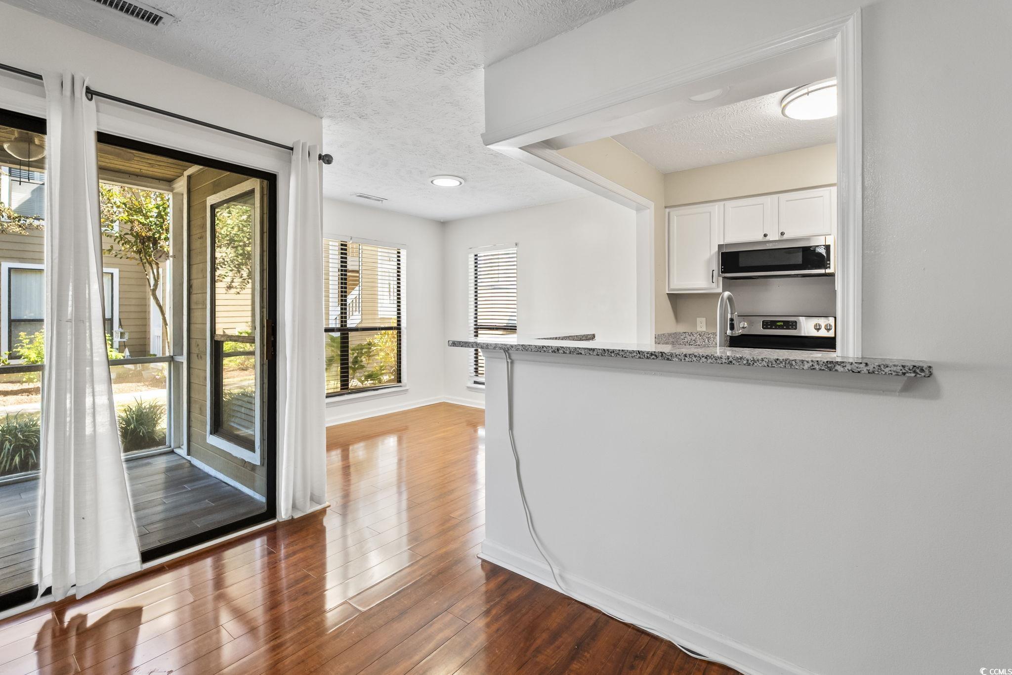 Tucked away in a quiet, stress-free enclave inside the city limits of Myrtle Beach, this beautifully maintained 2-bedroom, 2-bath end-unit condo in the charming Park Terrace community offers the perfect blend of relaxation, privacy, and convenience - all just minutes from the sandy shores of the Atlantic. As soon as you walk in, you'll notice how light and airy the space feels. Being an end unit, you'll enjoy extra windows, more natural light, and a peaceful sense of privacy that truly makes this condo feel like home. The open floor plan flows seamlessly from the living area to the dining space and out to your very own screened-in porch, the ideal spot to enjoy your morning coffee, curl up with a good book, or unwind after a day of beachside fun. The primary suite is spacious and inviting, complete with a private bath and ample closet space. A second bedroom and bathroom offer flexibility for guests, a home office, or whatever suits your lifestyle. Located in one of the most desirable parts of Myrtle Beach, you're just a short drive (or golf cart ride!) from the beach, and close to everything the Grand Strand is known for - including world-class golf courses, shopping, fine dining, live entertainment, and scenic walking trails. Whether you're searching for a primary residence, second home, or investment opportunity, this condo is all about easy coastal living with low maintenance and high enjoyment. Don't miss your chance to own a peaceful retreat in the heart of Myrtle Beach. Schedule your private tour today and experience the relaxed Park Terrace lifestyle for yourself!