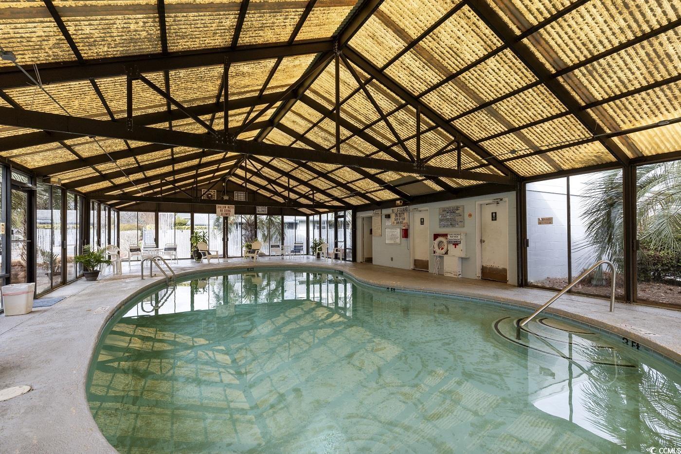 This is THE ONE!! FIRST-FLOOR END UNIT! Just steps from your back door to the poolthis beautifully updated 1-bedroom, 1.5-bath condo offers comfort, convenience, and coastal charm. The enclosed 4-season sun room provides tons of light and comfort for use as an extra room all year long overlooking beautiful landscaping and the pool. The spacious bedroom features a large closet, and three additional hall closets provide extra storage. As an end unit, the home is filled with natural light from extra windows. Recent updates include luxury vinyl plank flooring throughout, 6-inch baseboards, and beadboard accents on the kitchen island and living-room wall with added sound-reducing insulation. The remodeled full bath features a large walk-in shower, new vanity, lighting, and comfort-height toilet. The half bath for your guests has been updated as well with new lighting, mirrors, toilet and vanity. The kitchen shines with stainless steel appliances including refrigerator that conveys, new cabinets, tile backsplash, and countertops. A very generous sized pantry provides even more space for your kitchen items. A large closet off the four-season room includes a full size stackable washer and dryer that also convey. Great location near Hwy 9, 17, 31, and 90, youll be less than five miles from North Myrtle restaurants & shopping and Cherry Grove Beaches and across from McLeod Hospital and other medical facilities. Included furnishings: Vizio 50"" TV, three barstools, kitchen appliances including Stainless Refrigerator, stackable washer and dryer and all window treatments. LOW HOA includes exterior insurance, internet/cable TV, water & sewar, trash, pest control and indoor and outdoor pool maintenance.just bring your suitcase and start living the beach life. Ideal for full time first floor living, as a vacation home or an investment property. Home has been virtually staged.