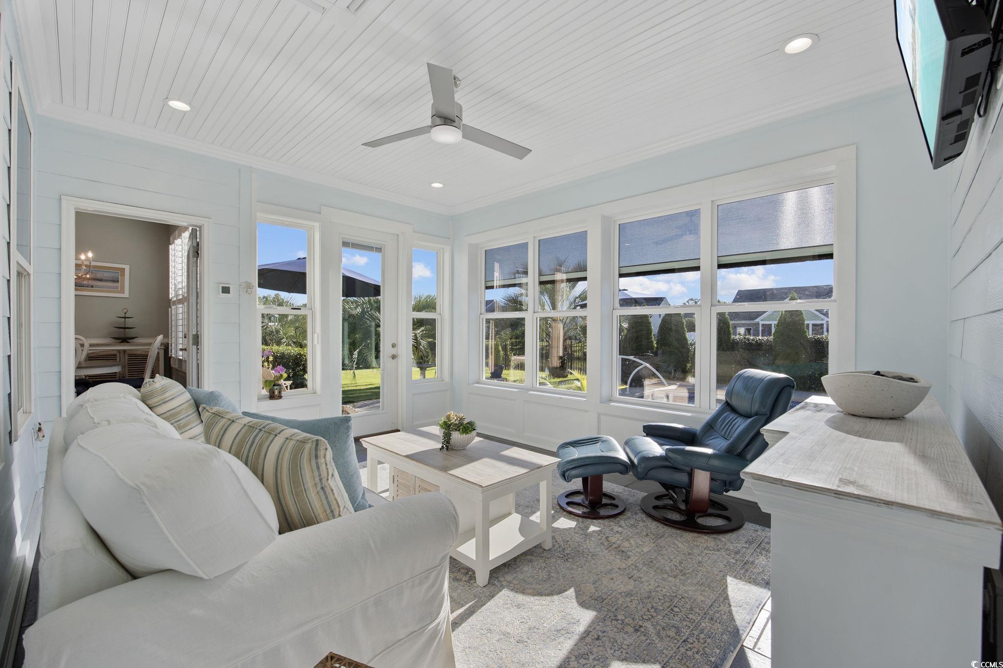 SELLER IS FIRM ON PRICE. Tucked away on a quiet cul-de-sac in the premier gated Waterway community of Pelican Bay, this elegant 4-bedroom, 3-bath home offers a blend of comfort and craftsmanship. Wrapped in Southern charm and elevated by luxurious touches, this home feels both grand and gracefully inviting. Featuring a spacious open layout, plantation shutters, and a freshly painted interior (2025) that gives the home a light, airy feel. The primary suite offers a private retreat with stunning pool views, boasting a tray ceiling, walk-in closet, and a stylishly updated ensuite bathroom. It features a dual vanity, a custom tile shower with a glass enclosure, and a separate water closet. Perfect for year-round enjoyment, the climate-controlled sunroom includes a ductless heat pump and remote-control sunscreen, providing comfort and privacy in every season. Step outside to your backyard oasis, where a 5x35 Barrier Reef fiberglass saltwater pool awaits, complete with heating, cooling, and a tranquil water fall feature surrounded by lush landscaping and a Hybrid Tea Rose garden. Additional highlights include a whole-home water filtration system, dedicated laundry room with washer and dryer hookups, and a leased propane tank for energy efficiency. The property also offers a two-car garage plus an additional single-car garage, perfect for extra storage, a workshop, or golf cart parking. With its half-acre lot, thoughtful updates, and access to one of the areas most desirable gated communities, this home offers both luxury and livability just minutes from the Intracoastal Waterway.