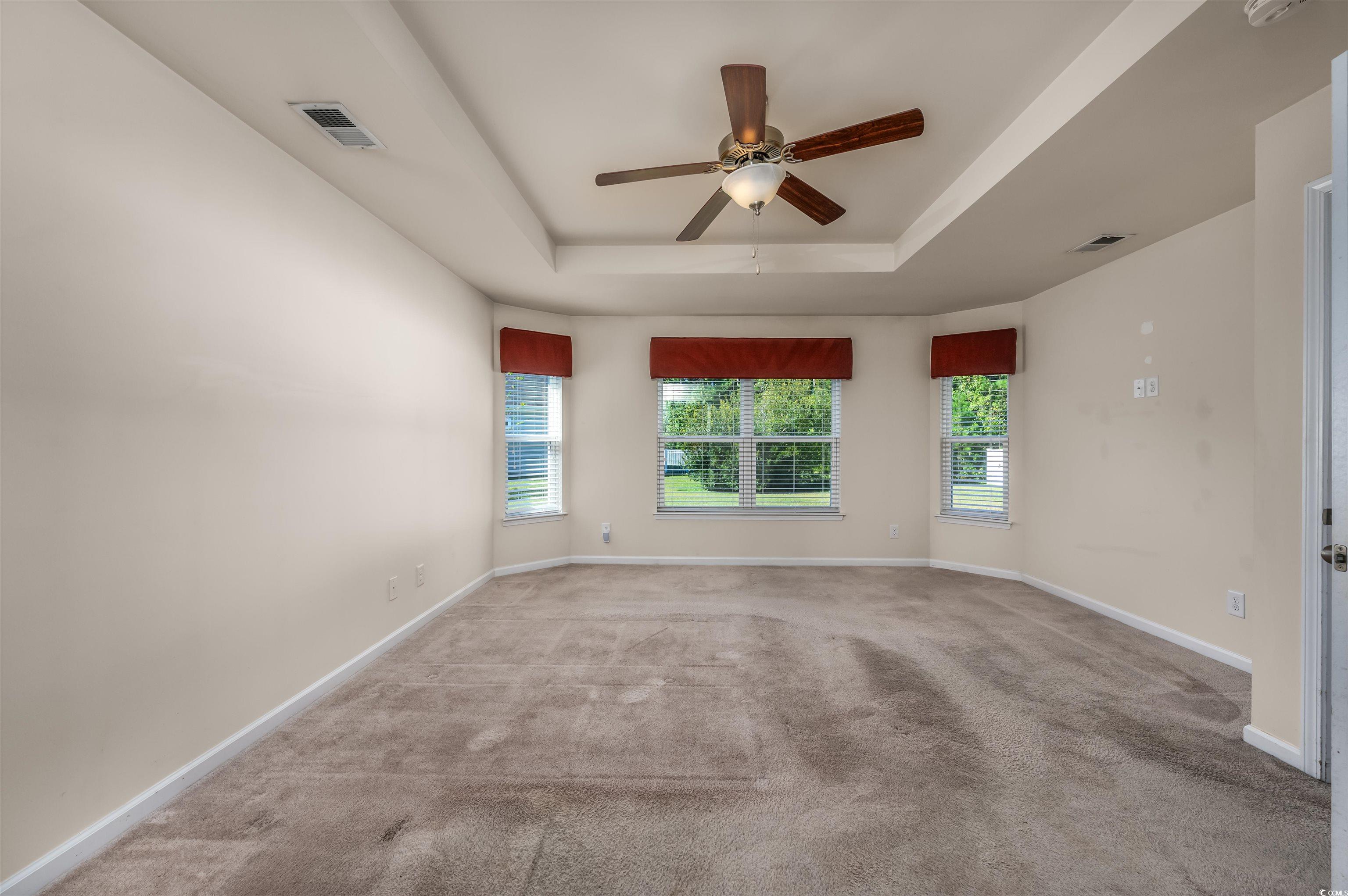 PrimaryBedroom: TrayCeilings, CeilingFans, LinenCloset, MainLevelMaster, WalkInClosets
