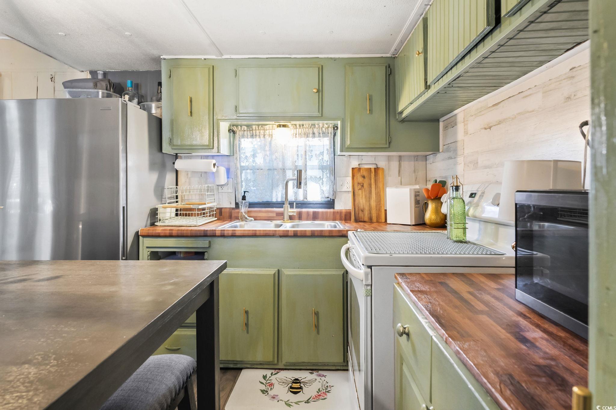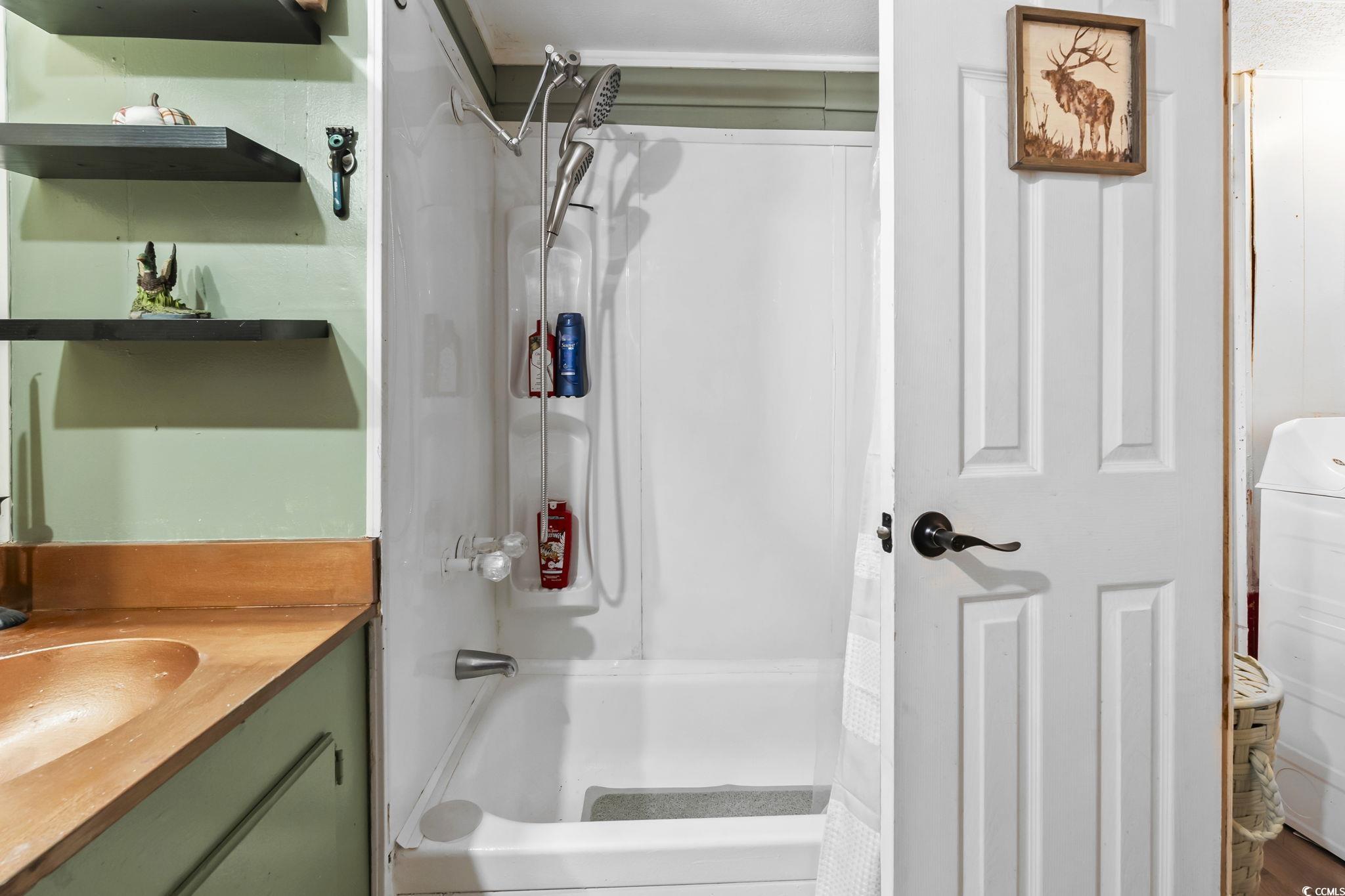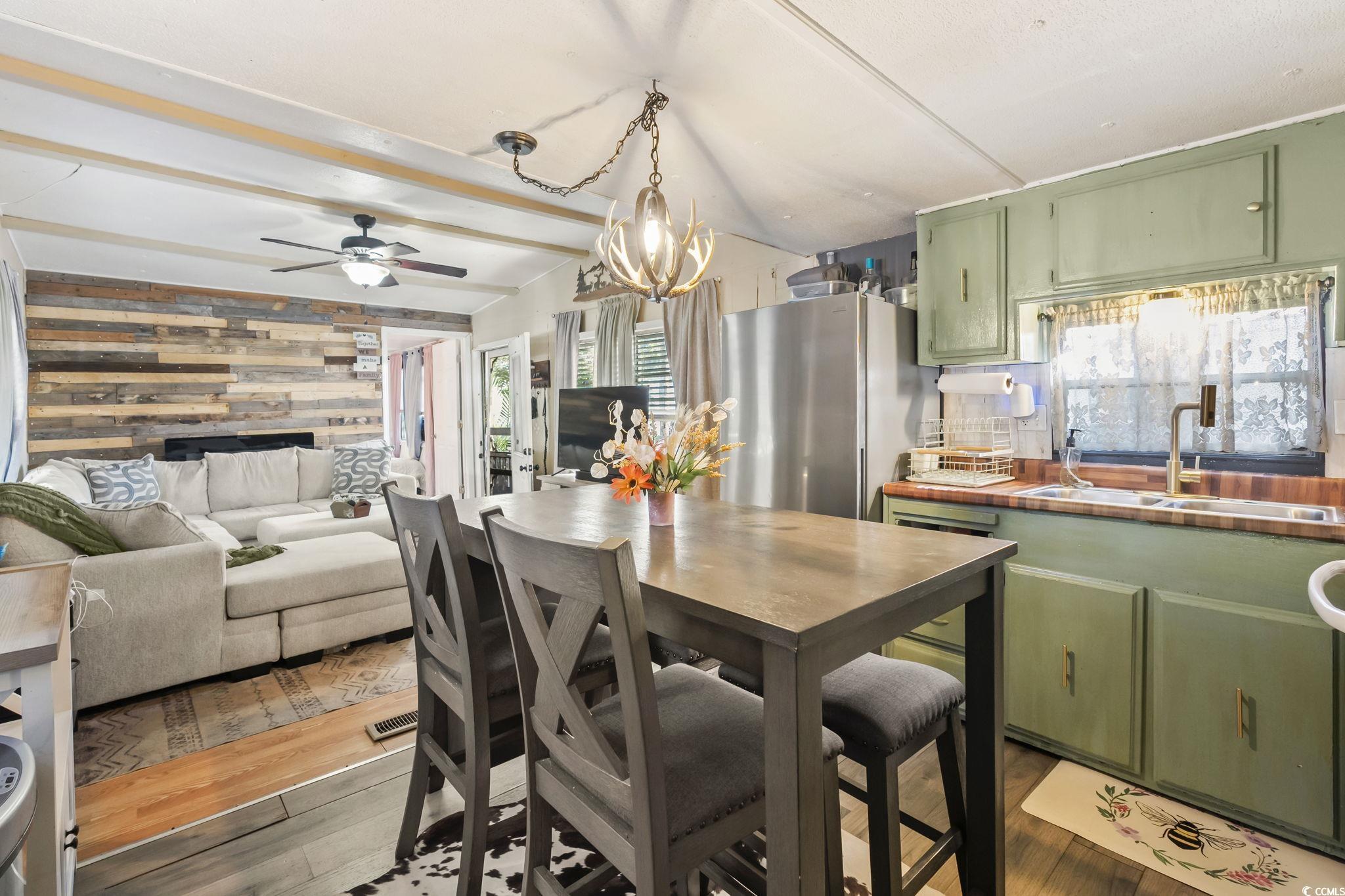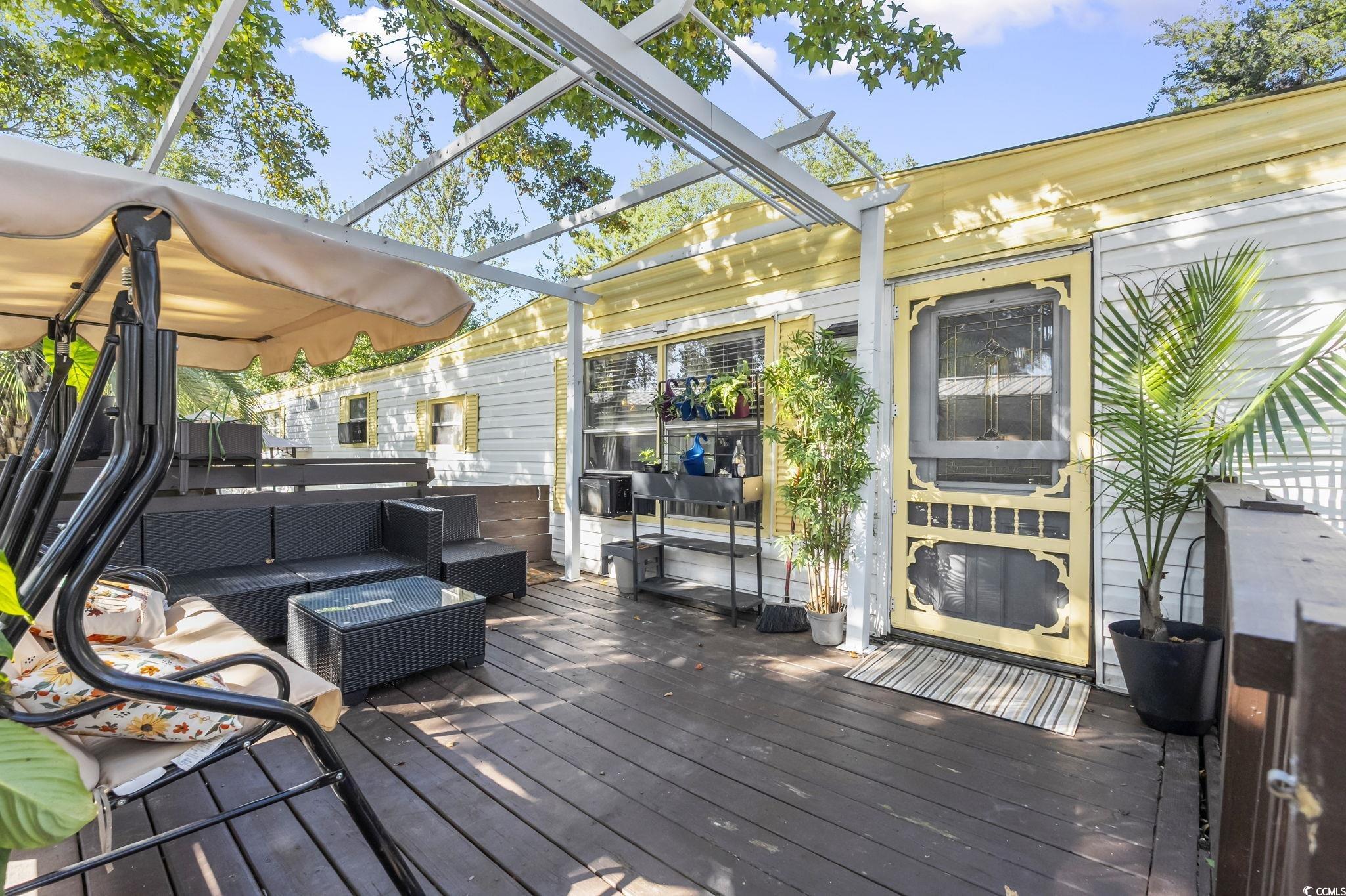 Welcome to this beautifully updated single-wide home in the sought-after Windjammer Village community, perfectly situated in the Garden City section of Murrells Inlet - just minutes from Garden City Beach and Pier, the Murrells Inlet Marsh Walk, and all the dining, shopping, and entertainment you could ask for. Step inside and you'll immediately feel at home in the living room, where durable LVP flooring flows underfoot, creating a warm and welcoming atmosphere perfect for relaxing after a day at the beach. The open-concept layout connects seamlessly to the eat-in kitchen, featuring painted cabinetry, modern appliances, and an island that doubles as a breakfast bar - ideal for casual meals or entertaining. Down the hall, you'll find two comfortable guest bedrooms, a conveniently located laundry area, and a full guest bath with stylish finishes. Tucked privately at the opposite end of the home, the primary suite offers a peaceful retreat with ample space, a double-sink vanity, and a tub/shower combo, giving you both comfort and convenience. This thoughtfully expanded and completely updated home offers move-in ready living with a floor plan that maximizes both space and functionality. Outside, enjoy the coastal lifestyle Windjammer Village is known for, a community clubhouse, refreshing pool, and friendly neighbors all await you. Golf carts and pets are welcome, making this the perfect place to enjoy laid-back Lowcountry living. Whether you're searching for a beach getaway, vacation home, or full-time residence, this property offers everything you need - close to beaches, golf, restaurants, groceries, and medical facilities, all just an eight-minute golf cart ride to the ocean. Don't miss your chance to own this exceptional home in one of Murrells Inlet's most desirable coastal communities - schedule your private showing today. All measurements are approximate and must be verified by the buyer.