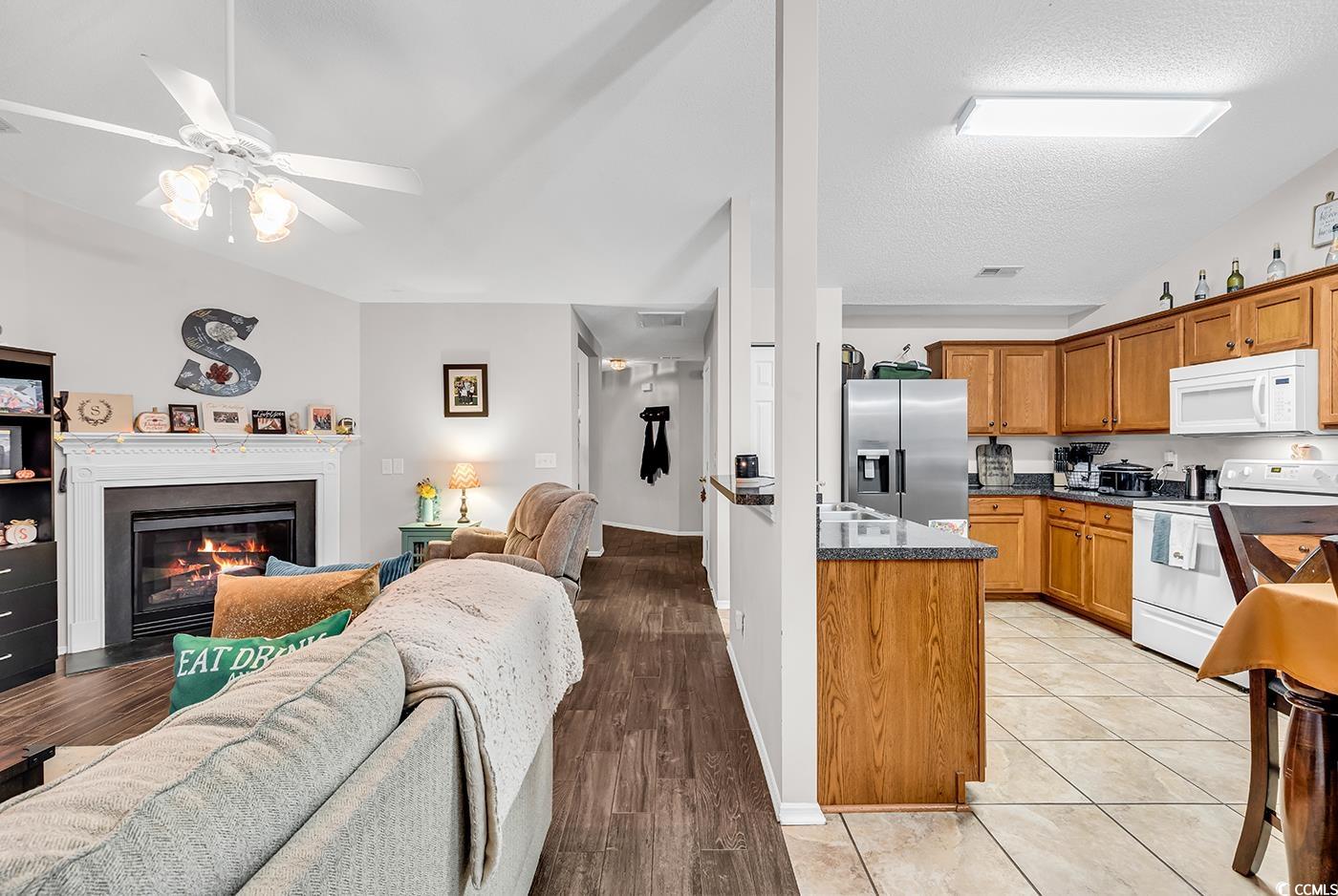 Welcome to this beautifully maintained 4 bedroom, 2.5 bath home located in the sought-after Bellegrove community of Carolina Forest. Nestled on a private lot backing up to the preserve, this home offers both space and comfort with thoughtful updates and inviting features. Step inside to an open floor plan featuring a formal dining room, a large eat-in kitchen, and a cozy living area complete with a fireplace. The Carolina room provides additional space filled with natural light, while the first floor is enhanced with elegant porcelain tile throughout. With 3 bedrooms on the first floor and a bonus bedroom upstairs, there is room for all your family needs. Recent upgrades give peace of mind with a new roof, HVAC system, and hot water heater all recently replaced. Outdoor living is a highlight with a fenced-in backyard overlooking the preserve, perfect for entertaining or relaxing. An 8x12 shed offers added storage, and the 5ft extended 2-car garage provides plenty of room for vehicles, tools, or recreational gear. Bellegrove residents enjoy community amenities such as a pool, clubhouse, playground, and walking paths, all within minutes of award-winning schools, shopping, dining, and the beautiful beaches of Myrtle Beach. Don't miss the chance to own this updated, move-in ready home in one of Carolina Forest's most desirable neighborhoods!