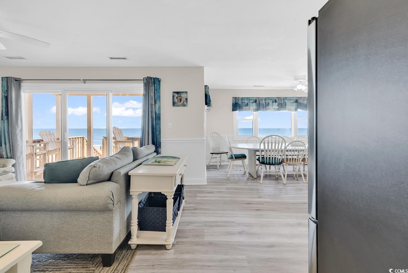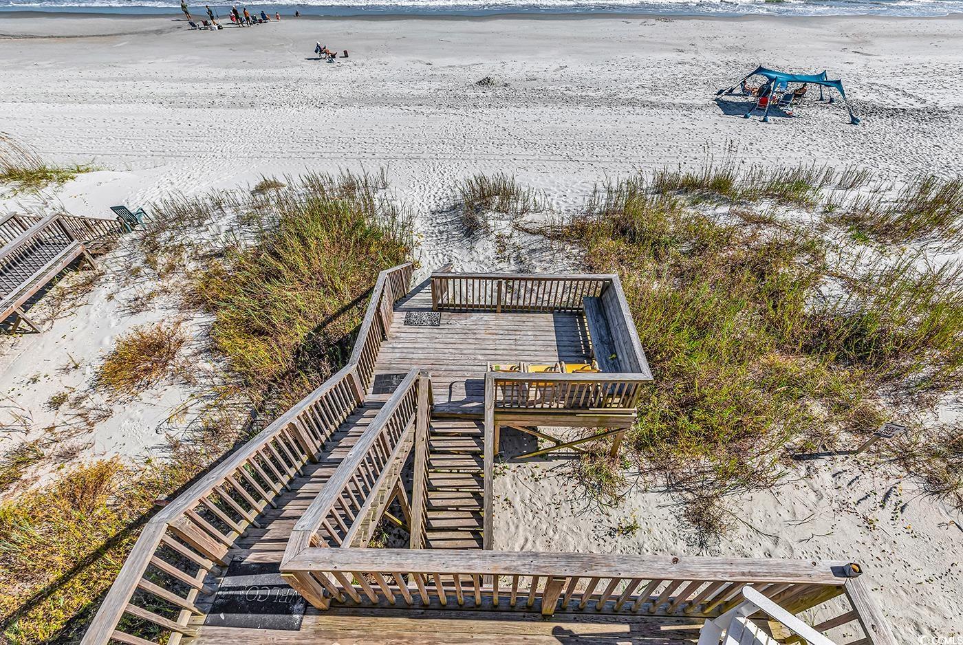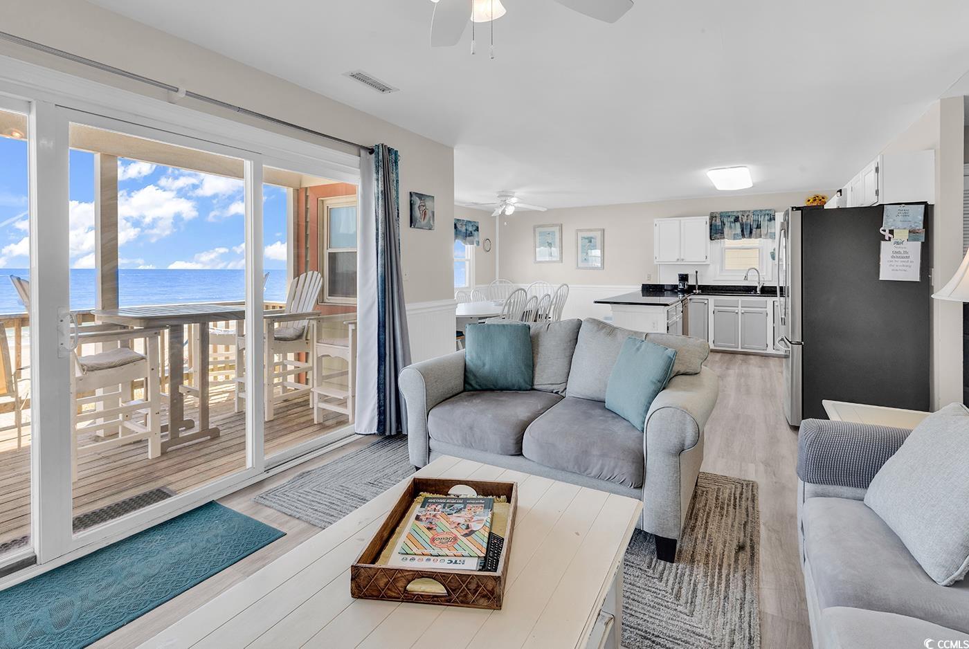 Welcome to Sea Breeze, an oceanfront retreat located at 328 South Waccamaw Drive in Garden City Beach. This 5-bedroom, 3-bath coastal home offers approximately 2,200 heated square feet of open and airy living space with breathtaking Atlantic Ocean views. Thoughtfully designed for relaxed beach living, it features spacious living areas on both levels, a well-equipped kitchen, and large oceanfront porches perfect for taking in the sea breeze and sunrise. The upstairs living area currently has a couch and a day-bed but does have a closet & door to the porch so it could be used as a 6th bedroom. A private walkway leads directly to the sand, while the covered area beneath the home provides space for parking, storage, and outdoor entertaining. With comfortable accommodations for large families or groups, Sea Breeze has a great rental history as an income-producing property but is also ideal for a second home or vacation getaway. Conveniently located just minutes from the Garden City Pier, dining, and local attractions, this home offers the perfect blend of comfort, convenience, and classic coastal charm.