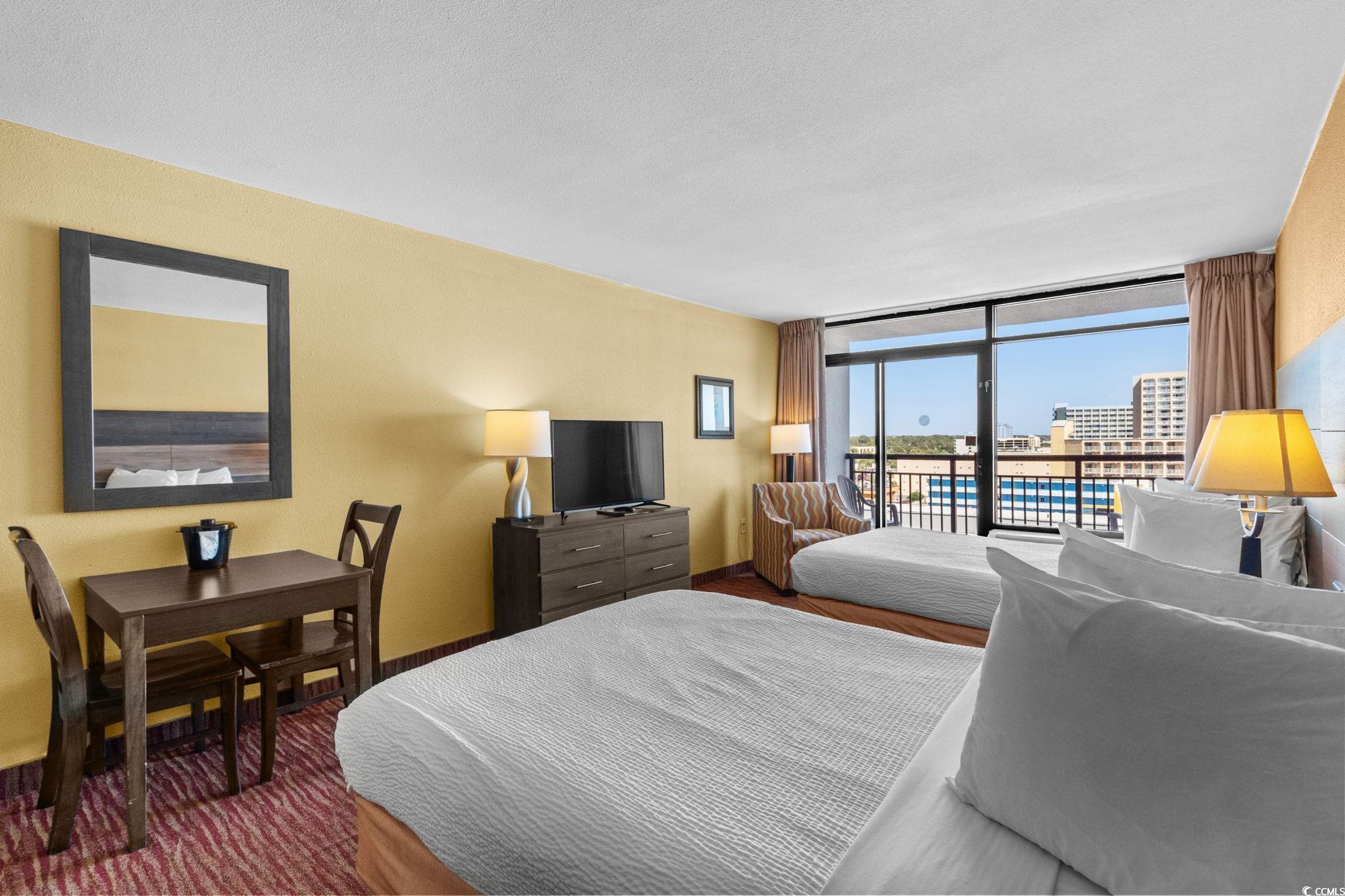 Oceanview Efficiency Condo at Landmark Resort. Experience the perfect beach getaway or investment opportunity with this oceanview efficiency condo in the sought-after Landmark Resort & Conference Center. Enjoy unbeatable amenities, including the H2Oasis waterpark, an indoor heated pool, lazy river and hot tubs, oceanfront heated pool and hot tub, and a seasonal pool bar. The resort also offers a fitness center, game room, laundry room, on-site restaurants and snack bars, a conference center, and an enclosed skywalk connecting the waterpark and parking garage to the resort. The condo features two double beds, a refrigerator and microwave for convenience, and a private balcony with great ocean viewsperfect for your morning coffee or evening cocktails. The convenience of the convention center for your weddings, reunions, and meetings is a big bonus! Prime location near Myrtle Beachs top attractions, dining, and entertainment, with easy airport access. Whether you're looking for a personal escape or a smart rental investment, this Landmark Resort condo has it all!