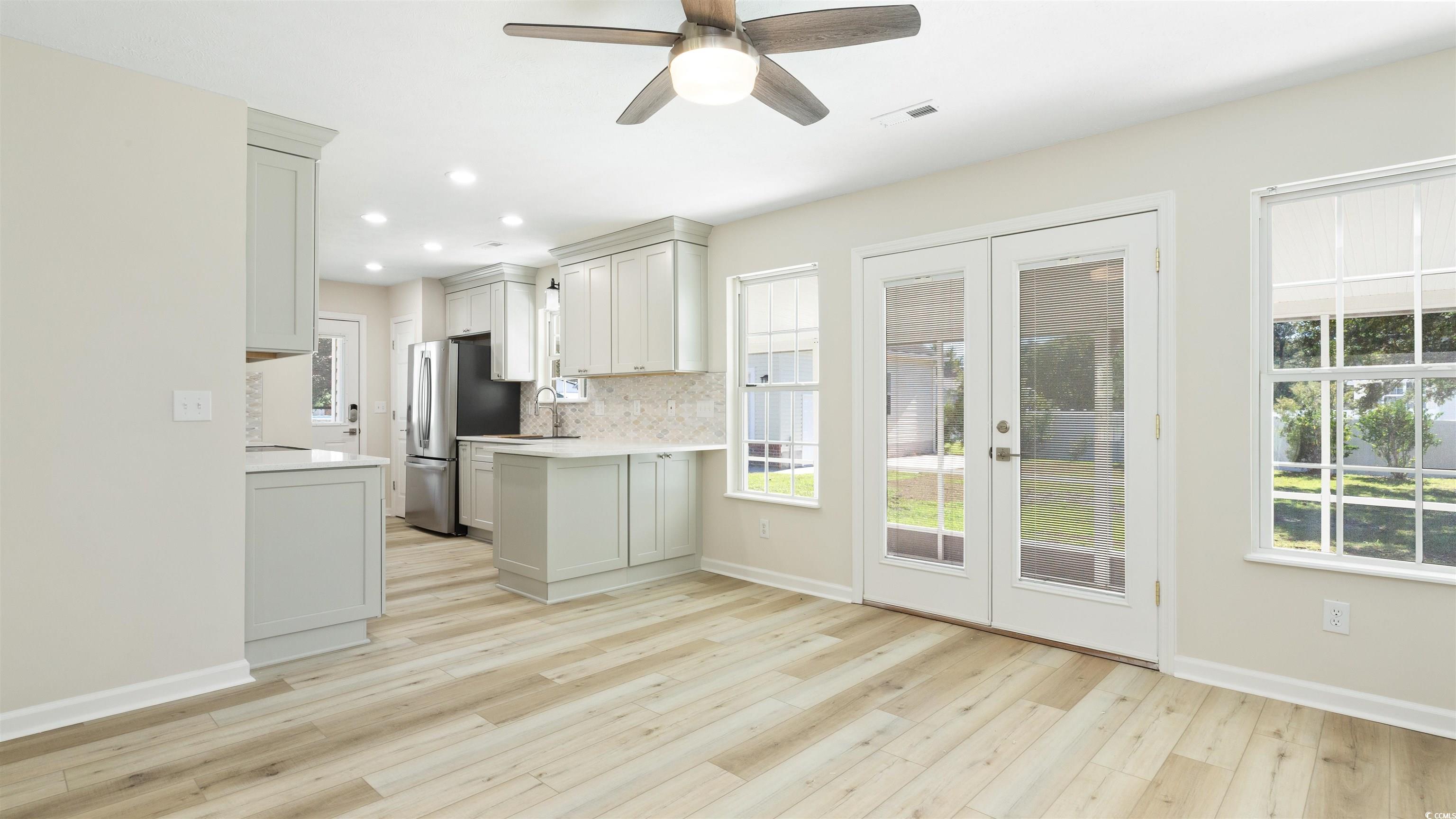Newly renovated and move-in ready! This stunning 3-bedroom, 2-bath home sits on a spacious half-acre lot near the Hwy 31 and Hwy 707 interchange, offering no HOA fees. Features include vaulted ceilings, arched entryways, recessed lighting, a cozy gas fireplace, and a formal dining area with French doors leading to a screened-in patio. The updated kitchen showcases new cabinetry with crown molding, ample counter space, a pantry, and new stainless steel appliances. The primary suite offers a vaulted ceiling, large walk-in closet, and private bath with a tiled walk-in shower. Enjoy the oversized detached two-car garage, storage shed, large backyard, and inviting front porch. Conveniently located near beaches, golf, restaurants, shopping, and all Myrtle Beach and Murrells Inlet attractions.