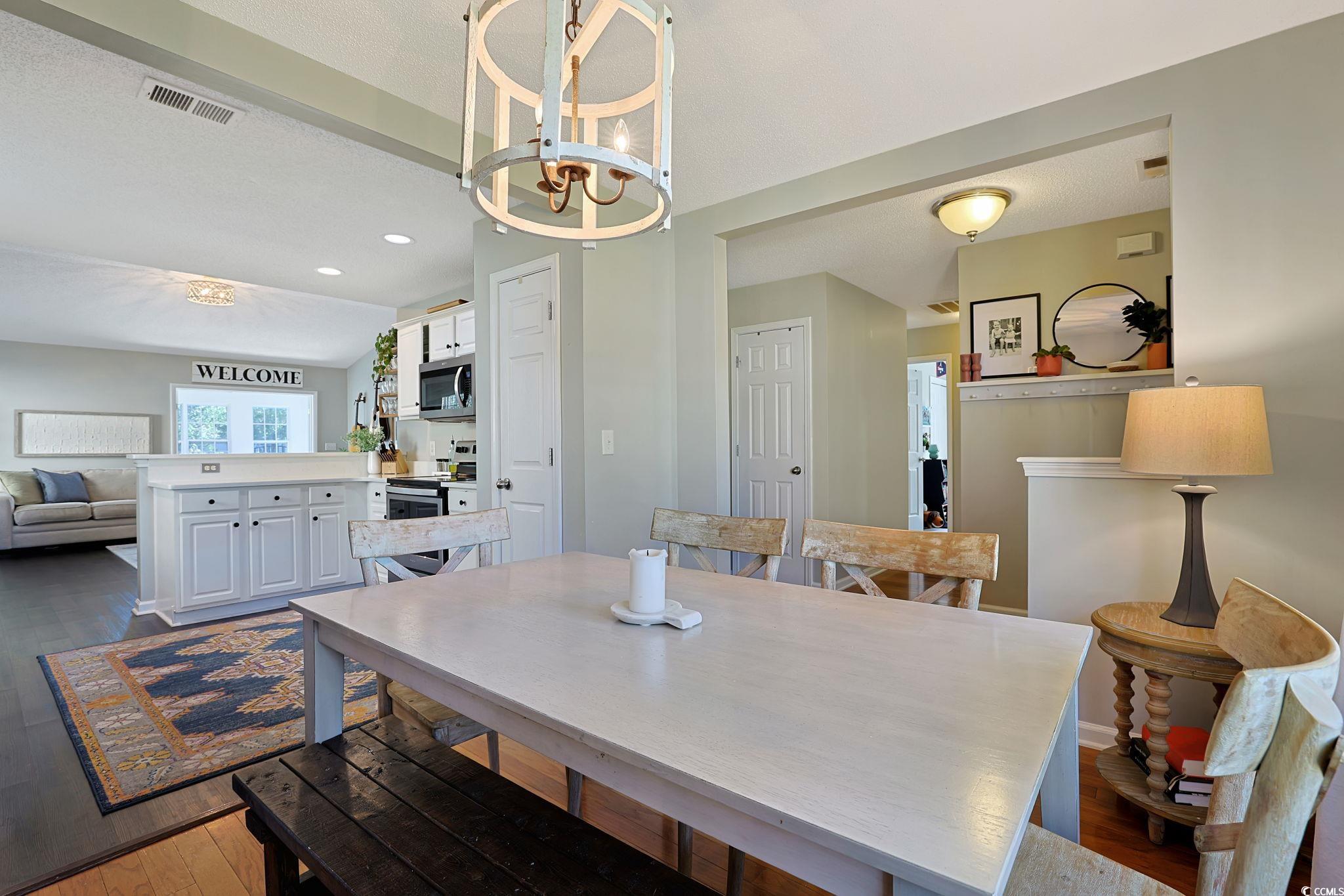 Take a look at this lovely 3 bedroom 2 bath home in the Pinecrest section of the Palmetto Glen community. This delightful home features hardwood, LVP, and carpet flooring, a formal dining room, a large living room with a vaulted ceiling that showcases double door access to the magnificent Carolina room with tranquil lake views. The family style kitchen is equipped with a stainless steel appliance package, a breakfast bar, quartz counter tops, ample cabinet space, recessed lighting, and a practical pantry. The primary bedroom offers a vaulted ceiling with fan, walk-in closet, private access to the primary bath that includes a single sink vanity with a make-up desk, a comfort station, and a timeless tub/shower combo. This home is completed with two additional bedrooms, a full guest bath, a laundry room with extra shelving, a relaxing back patio, back yard fencing, and a two car attached garage. This home affords you easy access to the beach and golfing along with all of the other activities and happenings in Myrtle Beach including fun eateries, award winning off-Broadway shows, public fishing piers, and intriguing shopping adventures along the Grand Strand. Conveniently located to your everyday needs, including grocery stores, banks, post offices, medical centers, doctors offices, and pharmacies. Check out our state of the art 3-D Virtual Tour.