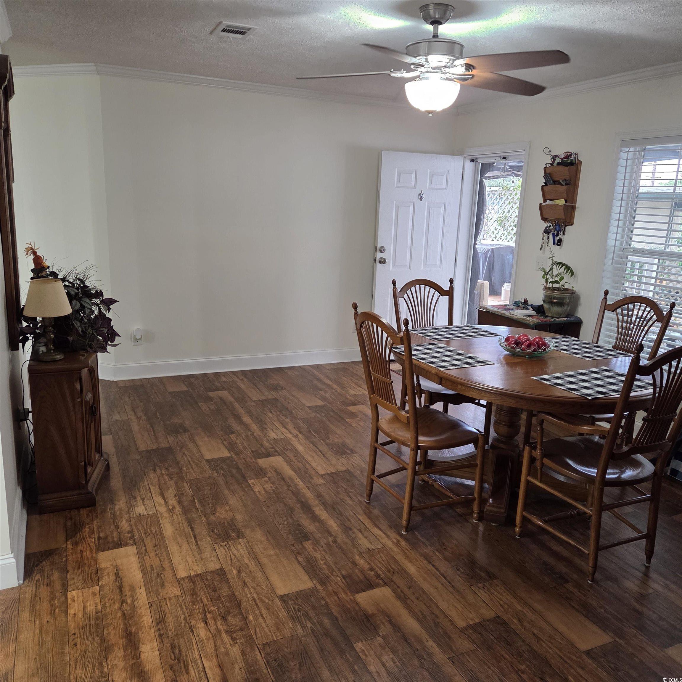 This 3 Bedroom, 2 Bath well loved energy star home is located in the sought after 55+ Inlet Oaks Community. Pool, active clubhouse & storage for boats, trailers & RVs available to residents. The moment you pull into the driveway you will fall in love. Owner has a deck and walkway with beautiful landscape that leads to a 2 story storage/workshop space that is insulated with electric and is 12x12 along with the 9x9 lean to. The front side covered porch is 12x28.5 that is half screened with a deck fire pit and some of the furniture to convey as well as the TV and party lights where you will enjoy spending time relaxing with family & friends. Inside this lovely home you will find a formal dining area plus a spacious eat in kitchen with a center island, recessed lights, pull outs in the cabinetry, pantry, apron sink, fan, plantation shutters, microwave, range, new dishwasher, refrigerator. Just off the kitchen is a laundry room that includes washer/dryer, cabinets & door to rear exterior. The spacious master suite has a walk in closet & master bath has a double vanity, glass enclosed shower, linen closet. Two additional bedrooms and guest bath are on the other side of the home and give privacy to the master suite. The large living room has an electric fireplace with a 60"" flatscreen TV with soundbar that will convey and doors that lead to a 28 x 10 enclosed all seasons porch that adds additional space to this large home. Seller also replaced the heating & air March 2022 Roof was replaced in 2022. Brookgreen Gardens, oceanfront Huntington Beach State Park, Murrells Inlet Marsh Walk and Pawleys Island is just a short distance away. Just outside the back door of your property you border Brookgreen Gardens and out your front door you will enjoy views of a tranquil lake. You could not ask for better neighbors! Golf Cart to Convey as well as the following items: outdoor deck fire pit and pit furniture, TV on porch w/party lights, one porch fan, 60"" flatscreen tv and soundbar, dining room hutch. Do not hesitate call today to schedule an appointment to see this home. Square footage is approximate and not guaranteed. Buyer is responsible for verification.