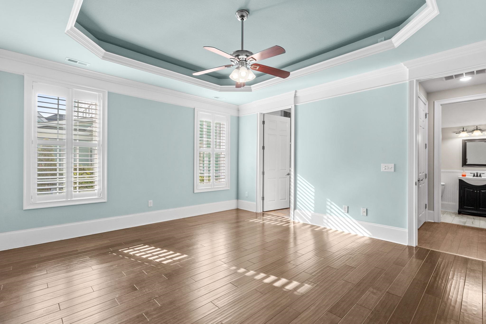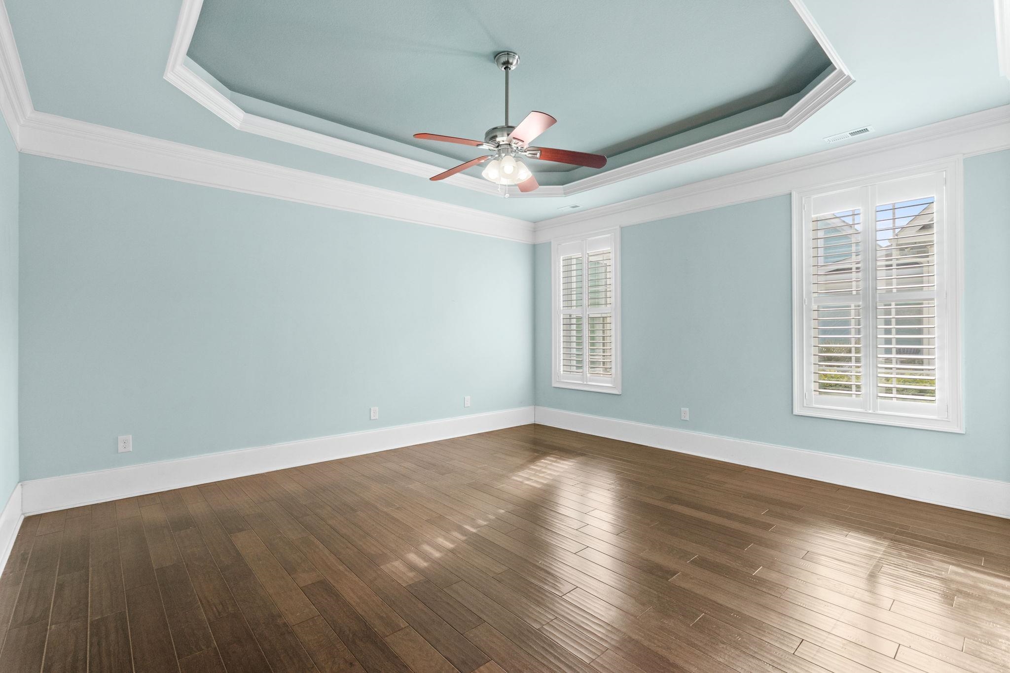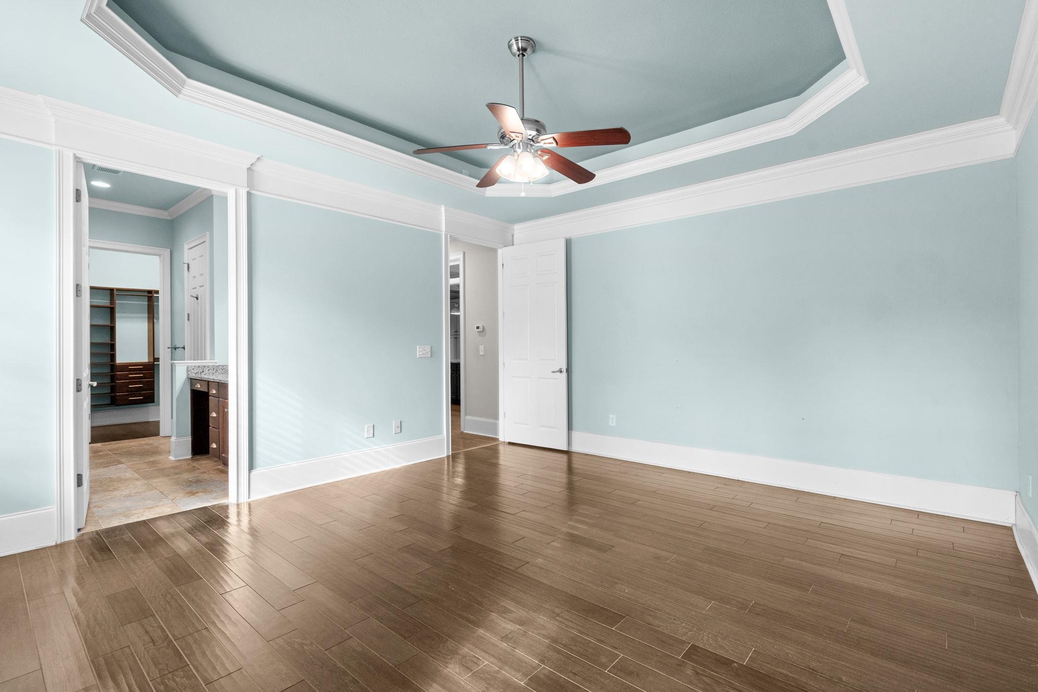 PrimaryBedroom: TrayCeilings, CeilingFans, MainLevelMaster, WalkInClosets