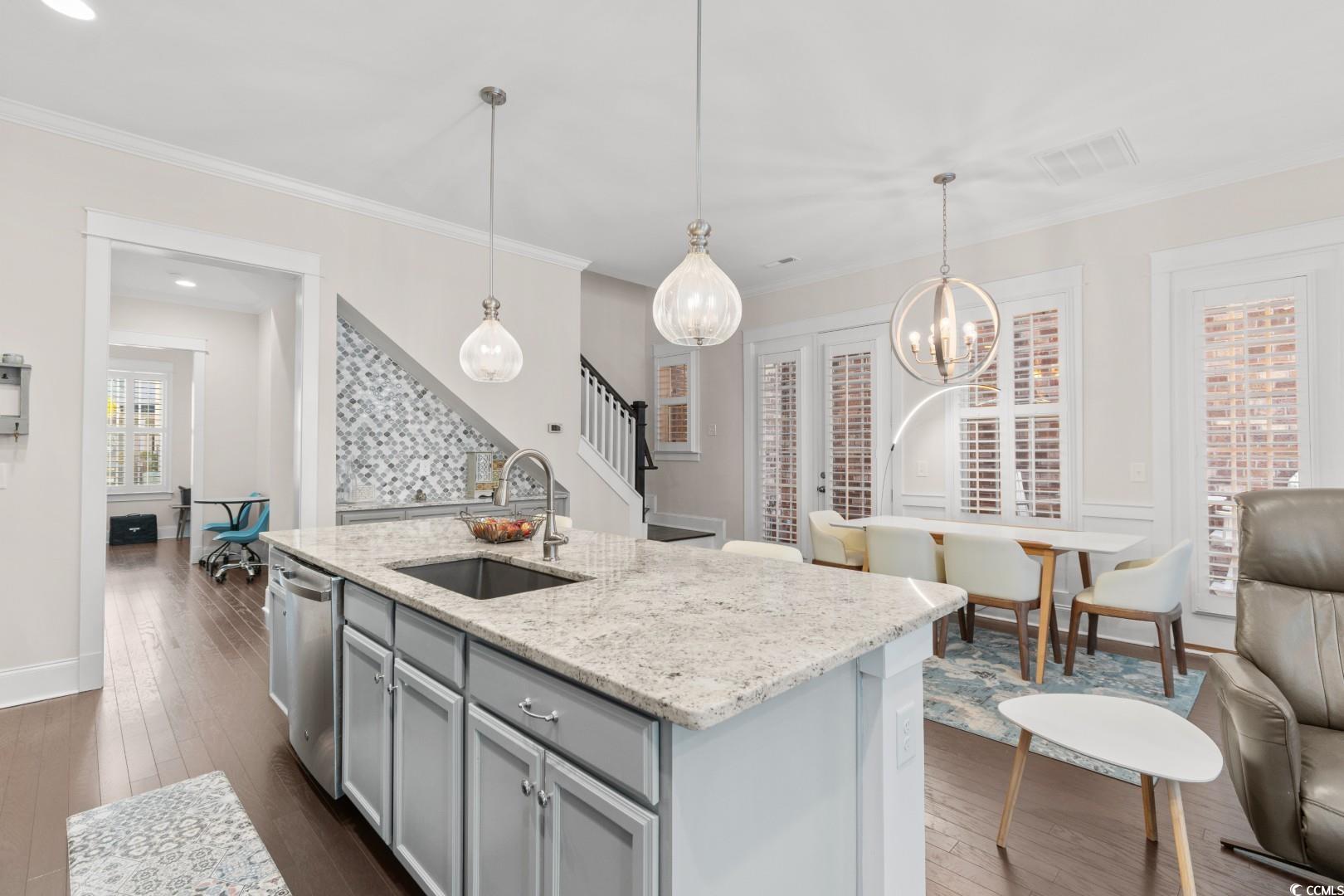 Welcome home to the highly sought-after Wentworth Park community! This stunning three-bedroom, two-and-a-half-bath townhouse at 847 Iris St perfectly blends classic style with modern convenience, featuring durable brick and hardi-board construction and a highly desirable private two-car garage. Step inside to find a spacious, open-concept living and dining area, accented by warm hardwood flooring, abundant natural light, and a cozy fireplace, ideal for both relaxing and entertaining. The updated kitchen is a chef's delight, boasting granite countertops, stainless steel appliances, and a convenient work island with a breakfast bar. Upstairs, the master suite is a true retreat, offering a lovely view, an expansive walk-in closet, and a private full bath complete with a dual-sink vanity, a separate step-in tiled shower, and a luxurious garden tub. Residents of Wentworth Park enjoy exceptional community amenities including a sparkling pool and an on-site gym, along with beautiful walking trails, peaceful lakes, and dedicated playgrounds for outdoor enjoyment. The prime location provides quick access to the unique shops, bistros, and entertainment of The Market Common, is just minutes from the beach, and offers easy routes to all the shopping, dining, and attractions the Grand Strand has to offer!