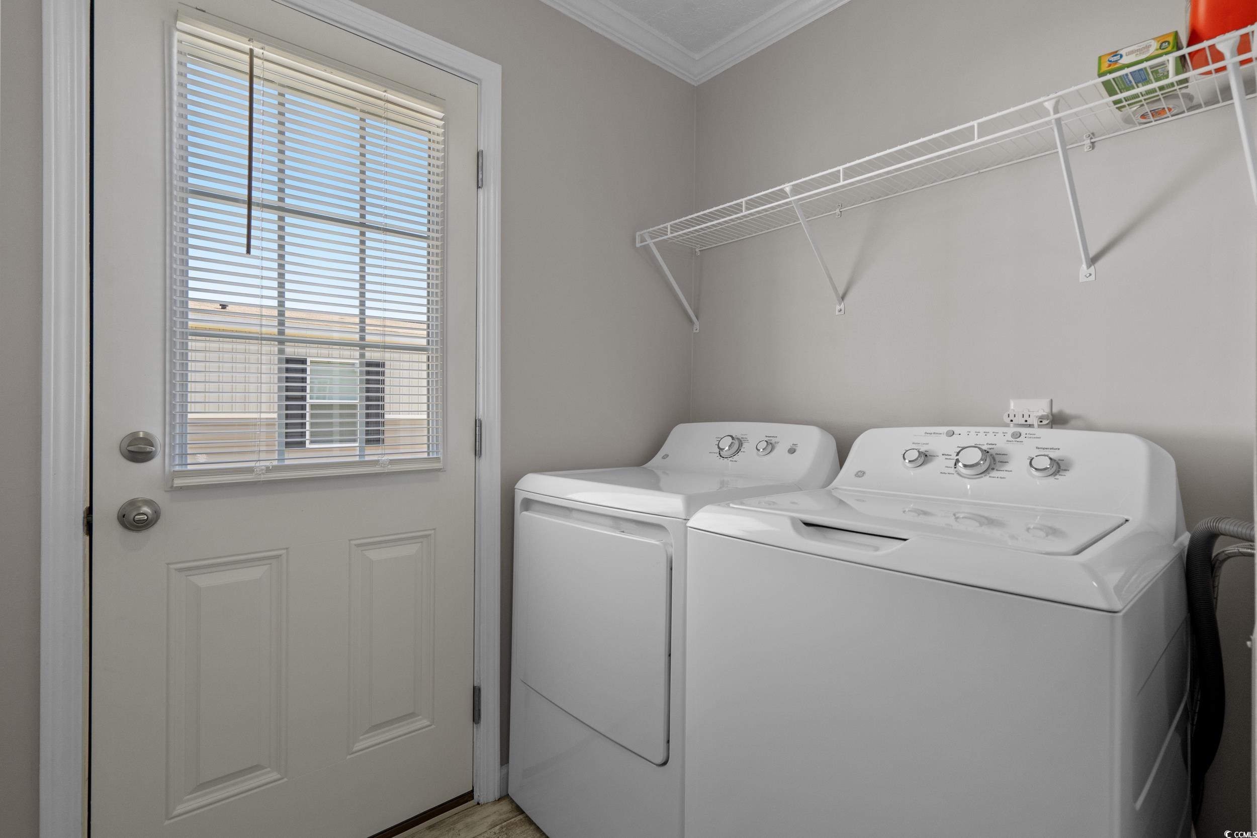 Better than new and perfectly located this meticulously maintained home in Market Village sits on a desirable end lot, offering extra privacy and breathing room. Enjoy an extended outdoor living area enhanced by a functional aluminum awning installed in 2024, ideal for relaxing or entertaining year-round. Inside, the home features an open, bright layout with modern finishes including LVP throughout the main living, a beautiful kitchen island and stainless steel range hood. All appliances including the refrigerator, washer and dryer sell with the home! Effortless low-maintenance living and centrally located just minutes from The Market Commons shops and dining, Myrtle Beach International Airport, and only about a 7-minute drive to the nearest public beach access, this home offers the ultimate in convenience and coastal lifestyle. Discover easy living at the beach in a home that truly feels brand new!