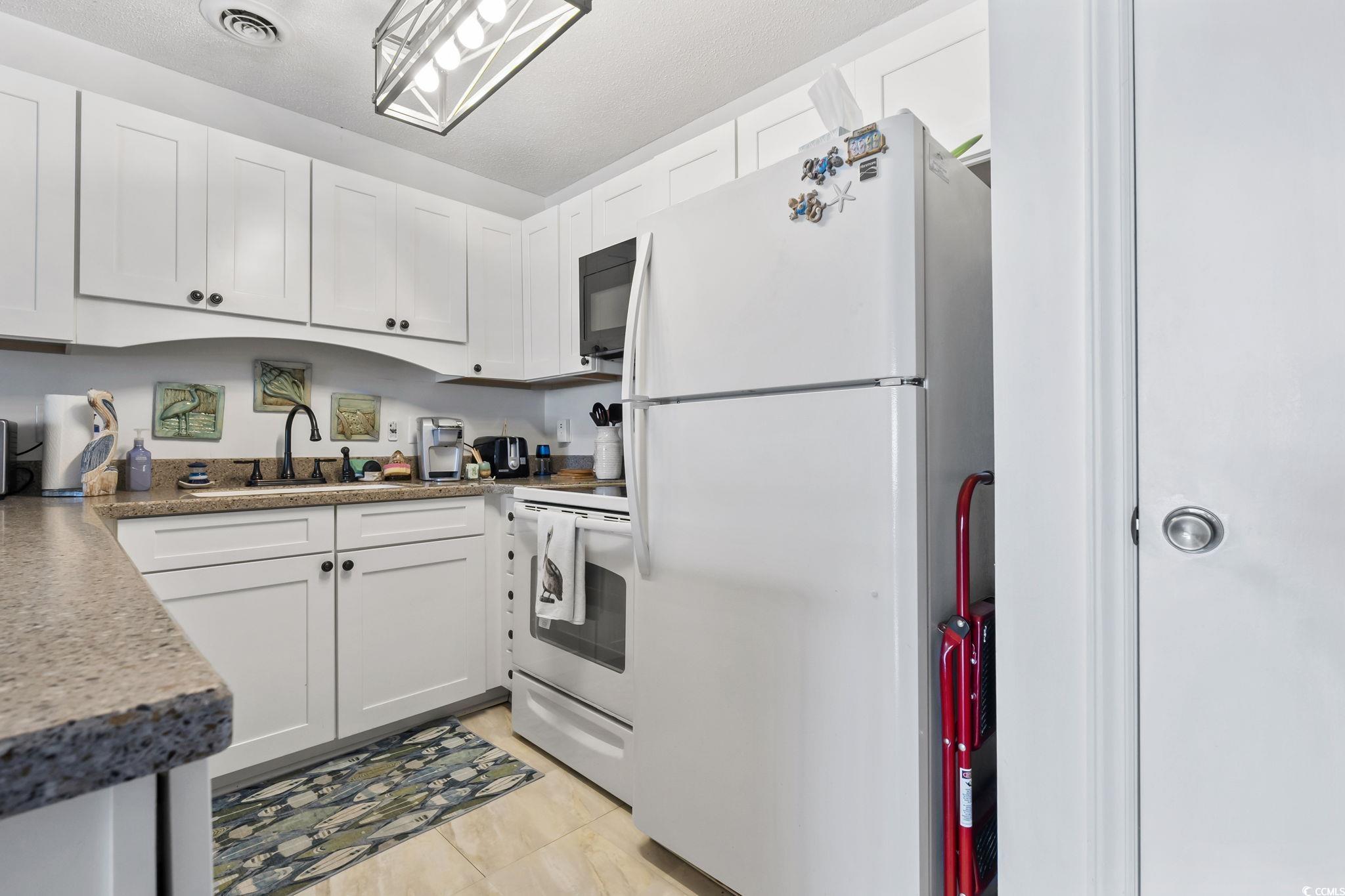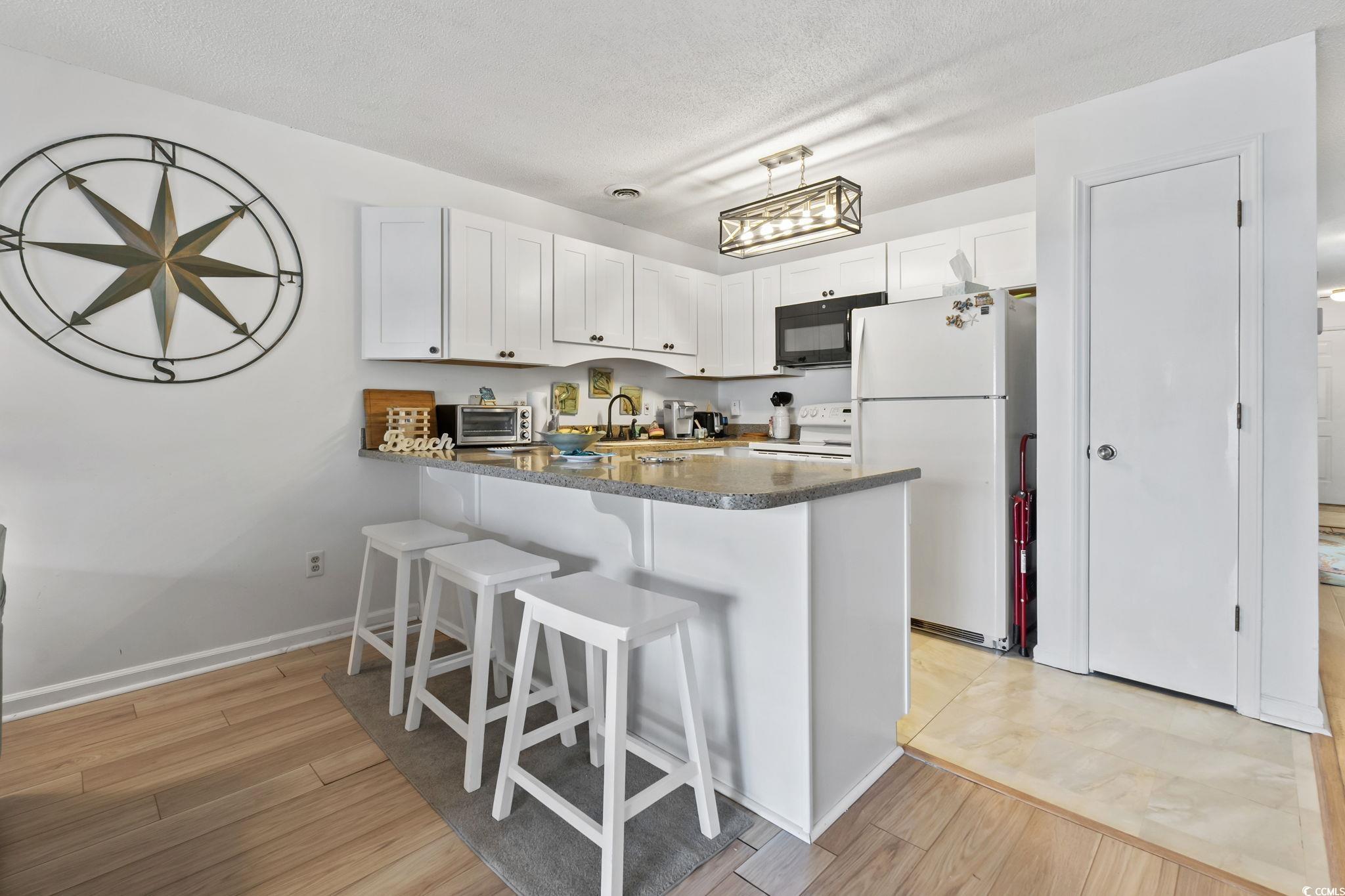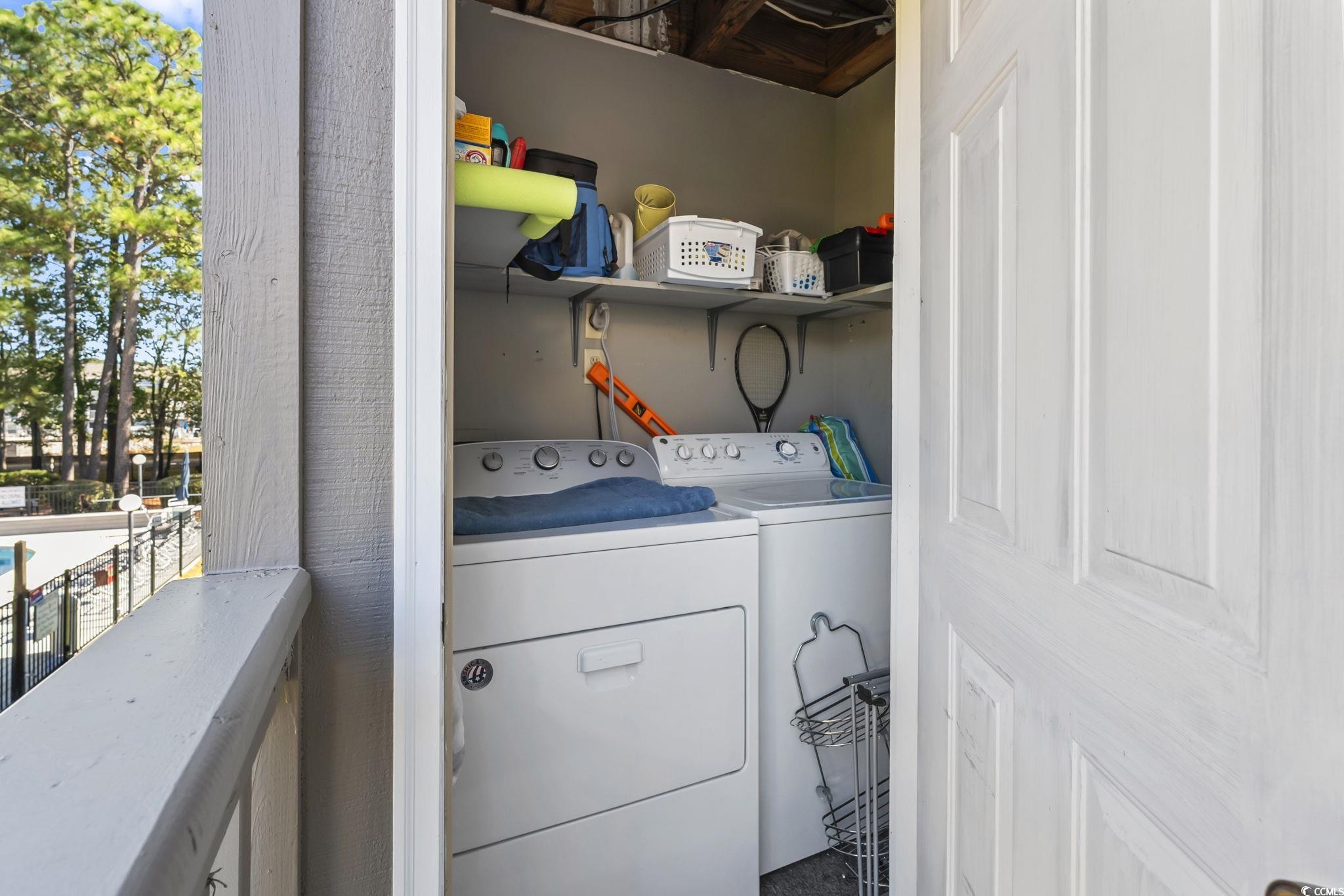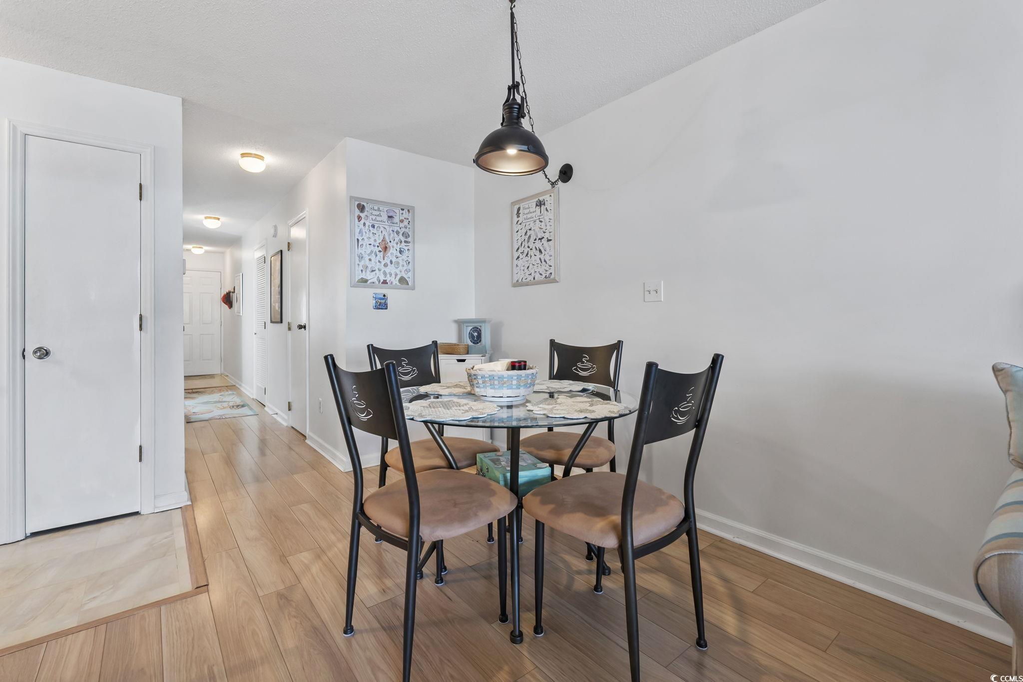 This beautifully updated, furnished, second-floor condo offers an open and inviting layout designed for both comfort and functionality. The spacious living room features durable LVP flooring that flows throughout the home, creating a clean and cohesive look. Adjacent to the living area, the kitchen is highlighted by white shaker-style cabinetry, granite countertops, and a breakfast bar that provides additional seating and serving space - perfect for casual dining or entertaining. The dining area is conveniently positioned near the kitchen, offering the ideal setting for shared meals or gatherings. Just off the living room, a private balcony provides an excellent spot for morning coffee or evening relaxation. The primary bedroom is generously sized and offers direct access to a full bathroom, complete with modern finishes. An additional half bath is located near the entry, ideal for guests or added convenience. A separate utility closet outside provides additional storage space, and the laundry area is easily accessible just off the main living space on the balcony. Thoughtfully designed with a seamless flow from room to room, this condo combines modern updates with low-maintenance living in a prime coastal location. The community is both welcoming and flexible! Golf carts and motorcycles are allowed, and yes, you can golf cart straight to the beach! Short-term rentals such as Airbnb and VRBO are permitted, making this an excellent option for investors or anyone wanting a second home that can generate income when not in use. Owners are also welcome to have pets, adding to the home's appeal and versatility. The HOA covers nearly everything: water, cable, internet, trash, pest control, pool access, and maintenance of all common areas; so you can spend more time relaxing and less time worrying about upkeep. Whether you're looking for a permanent home, a vacation escape, or a rental-ready investment, this property captures the relaxed spirit of coastal living. Condo is being sold furnished. All measurements are approximate and must be verified by the buyer.