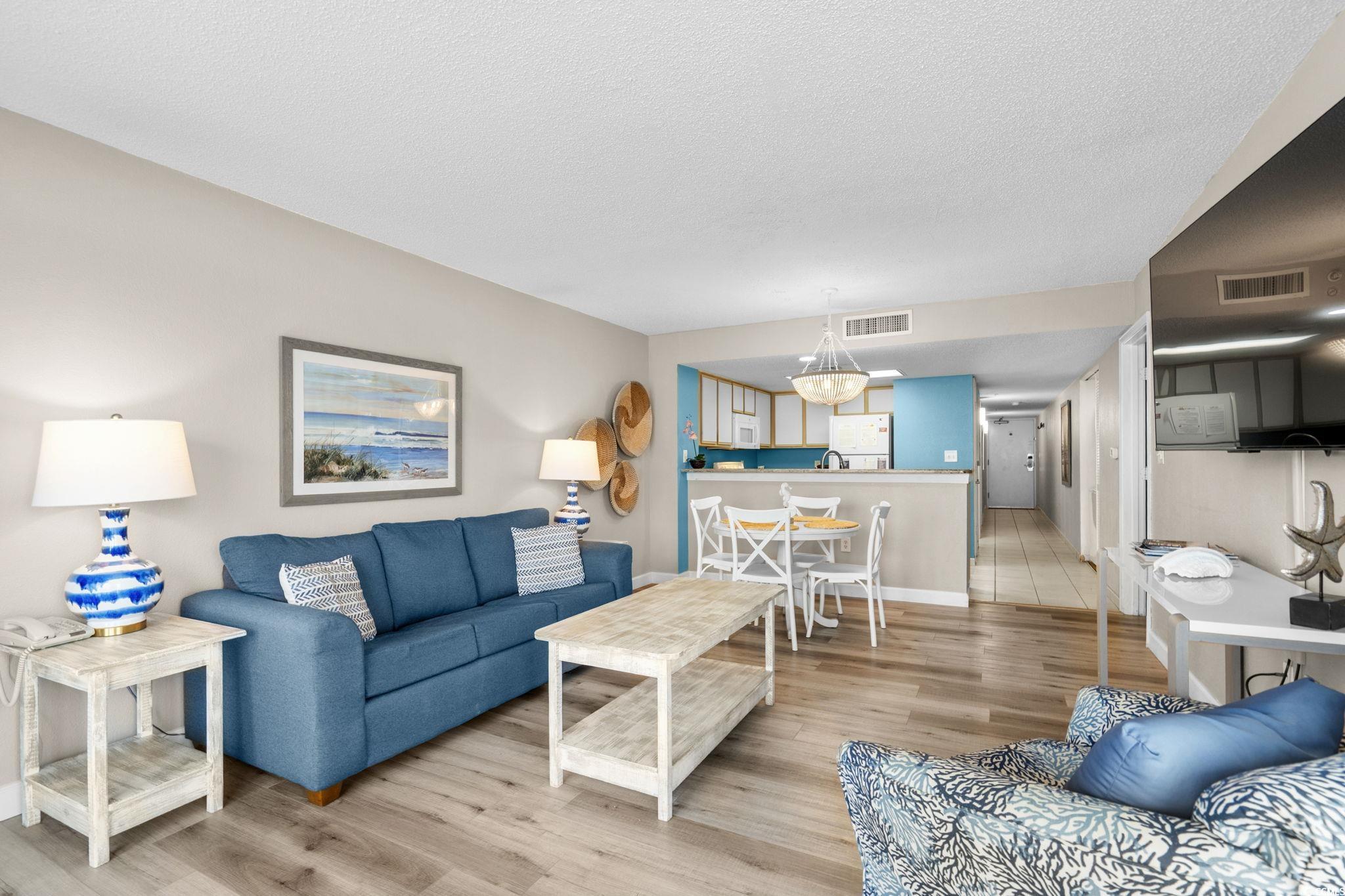 Welcome to Bay Watch 812. Professionally decorated thru out. Sold fully furnished. Primary bedroom is on the Oceanfront to lull you to sleep by the sound of the waves. Full balcony that runs from primary bedroom to the living room gives you tons of outdoor space - right on the Ocean! Bay Watch is well know for it's amenities including over a dozen indoor and outdoor pools, spas and indoor and outdoor lazy rivers, a gym, a restaurant right in the building, sports bar and a seasonal tiki bar. Stop in the gift shop for ice cream too! 812 is in the preferred Center building popular with snowbirds. Super rental, perfect for second home, or finally have your full time dream of living on the Ocean!