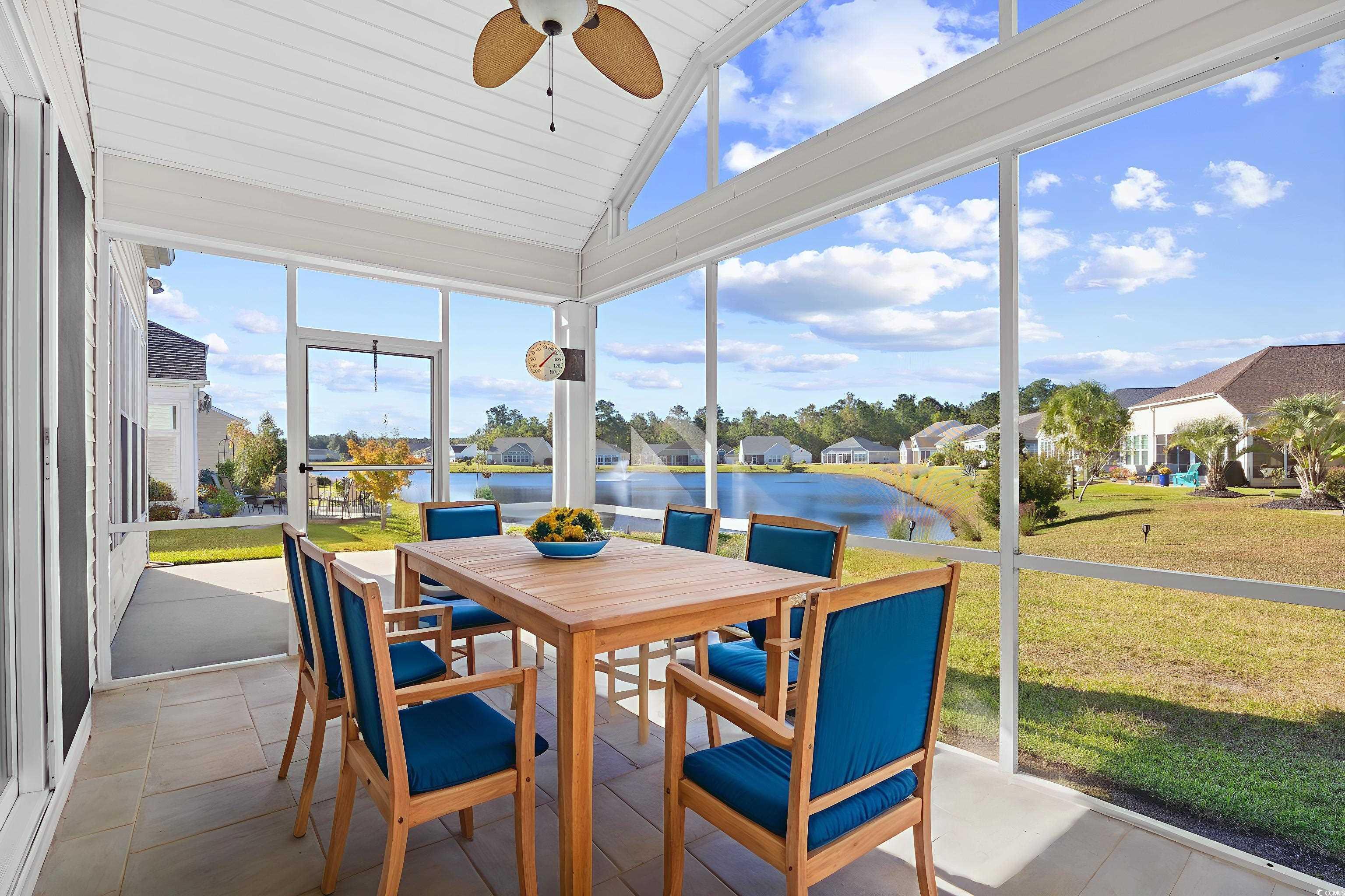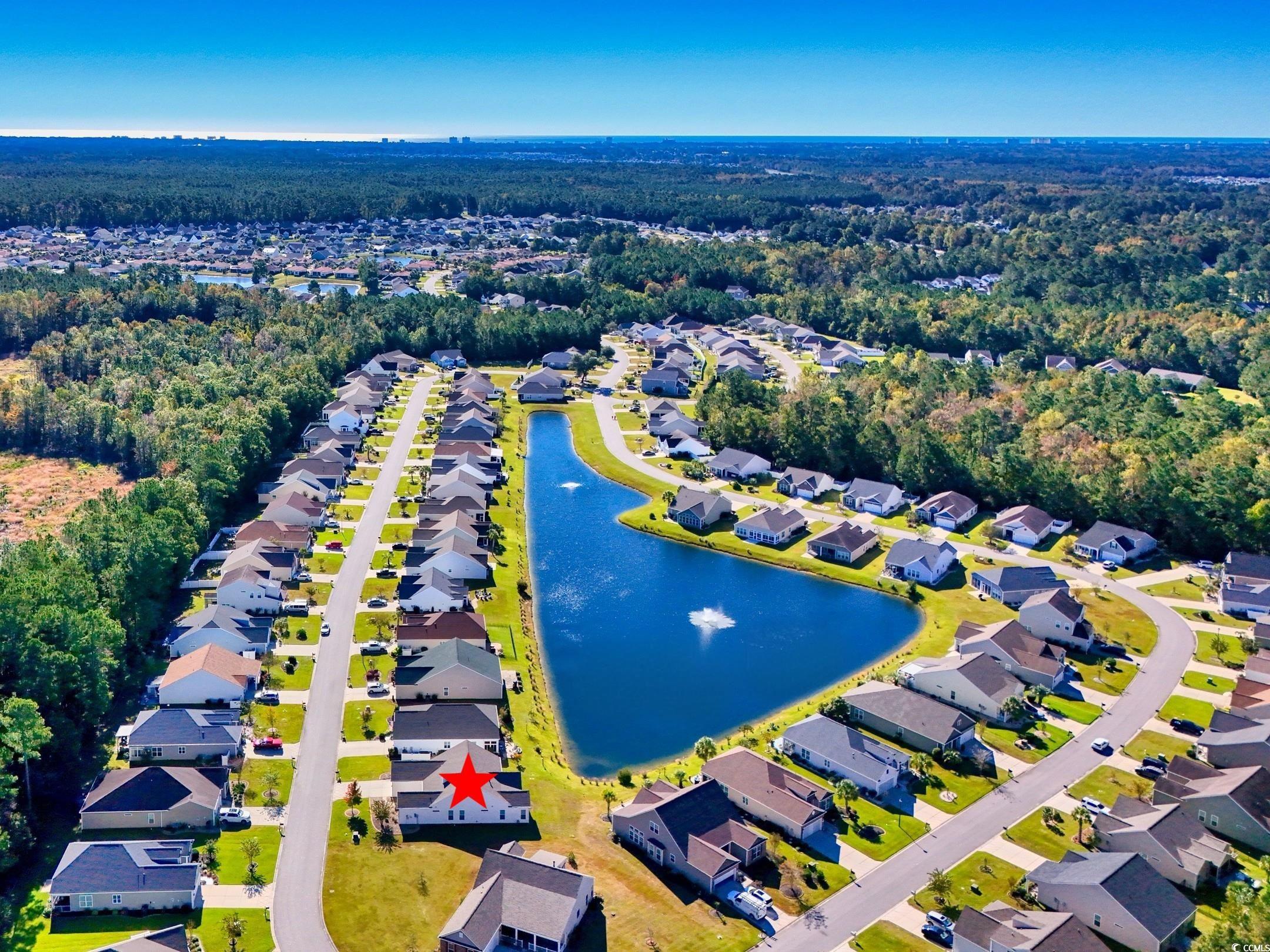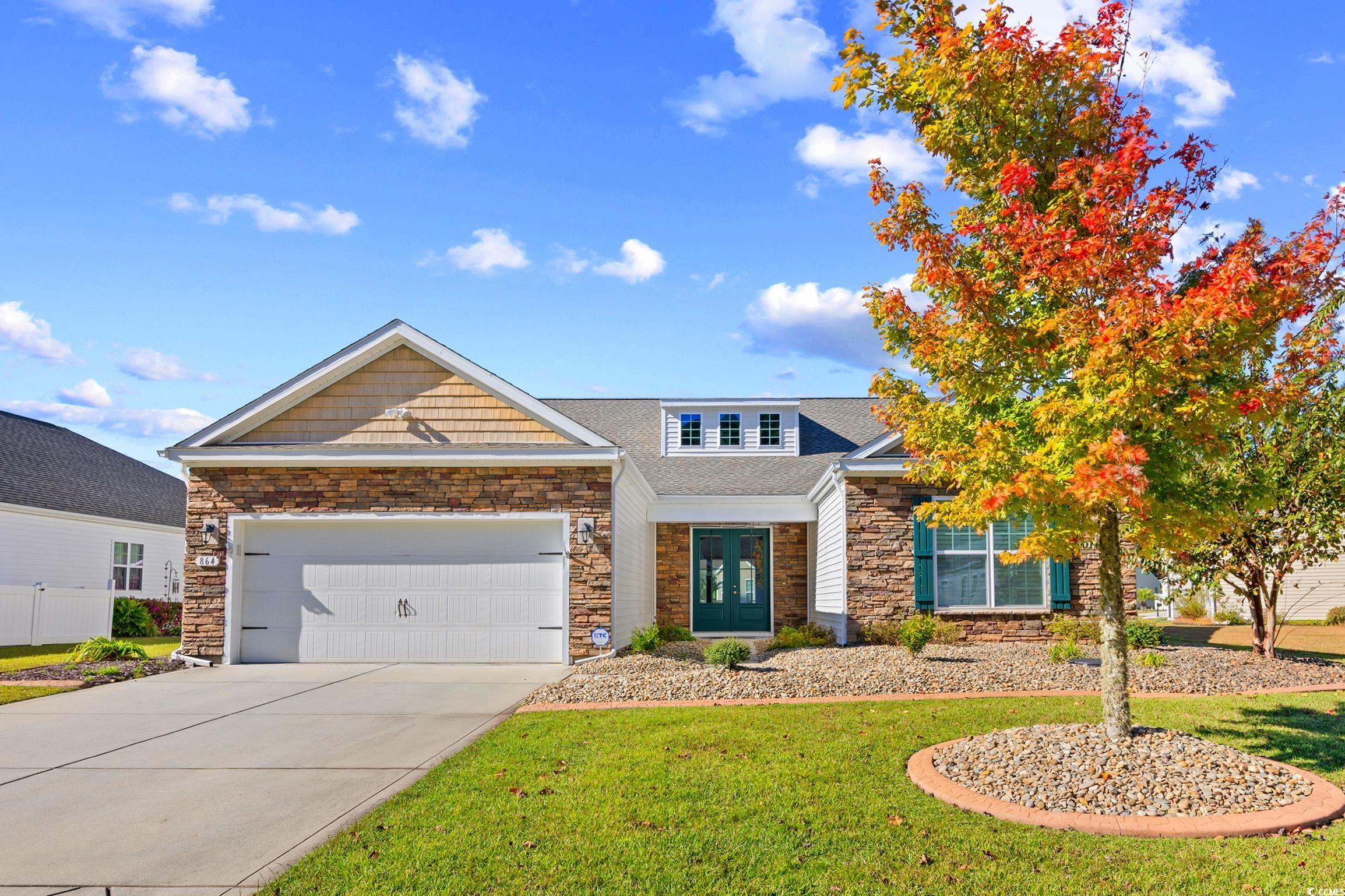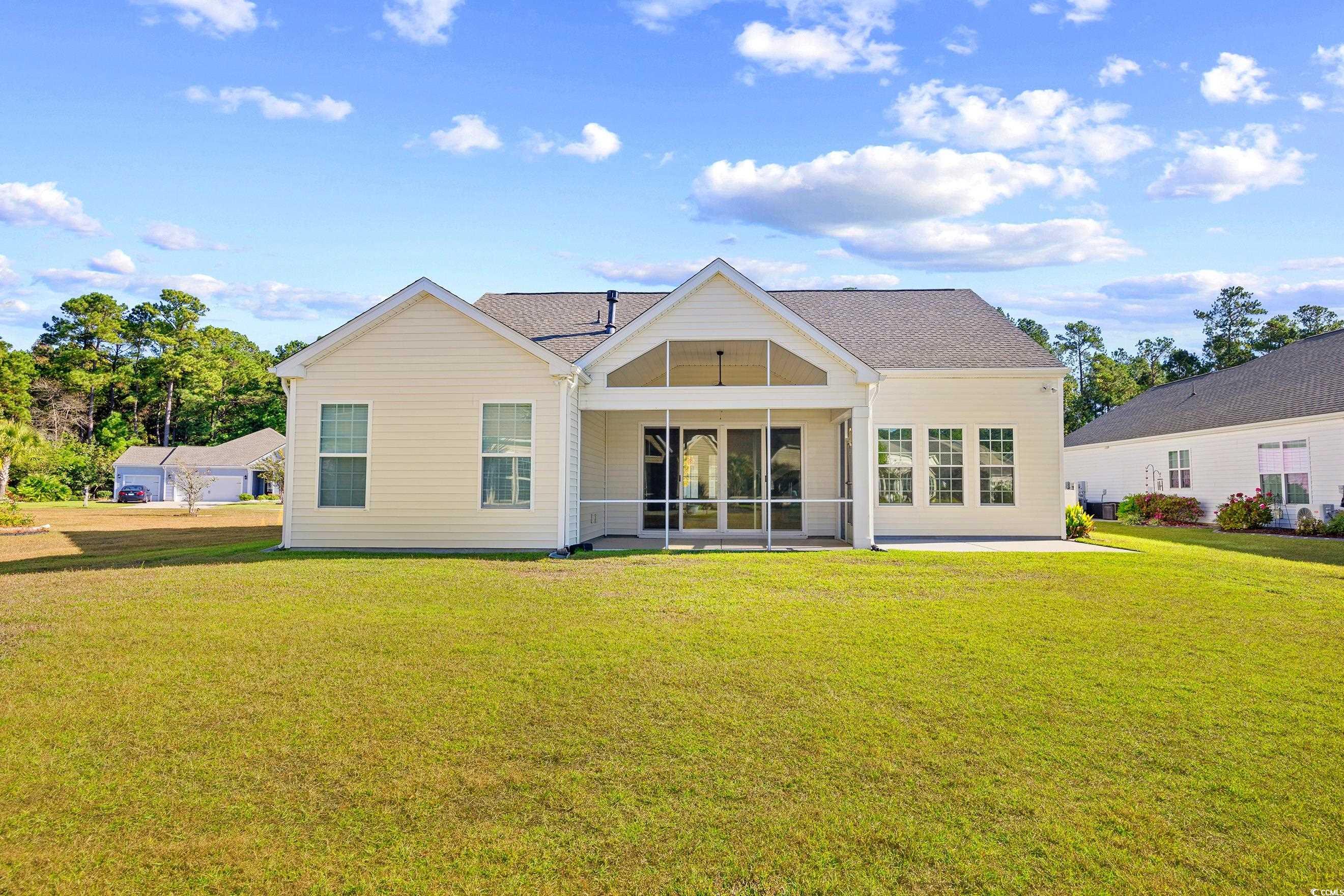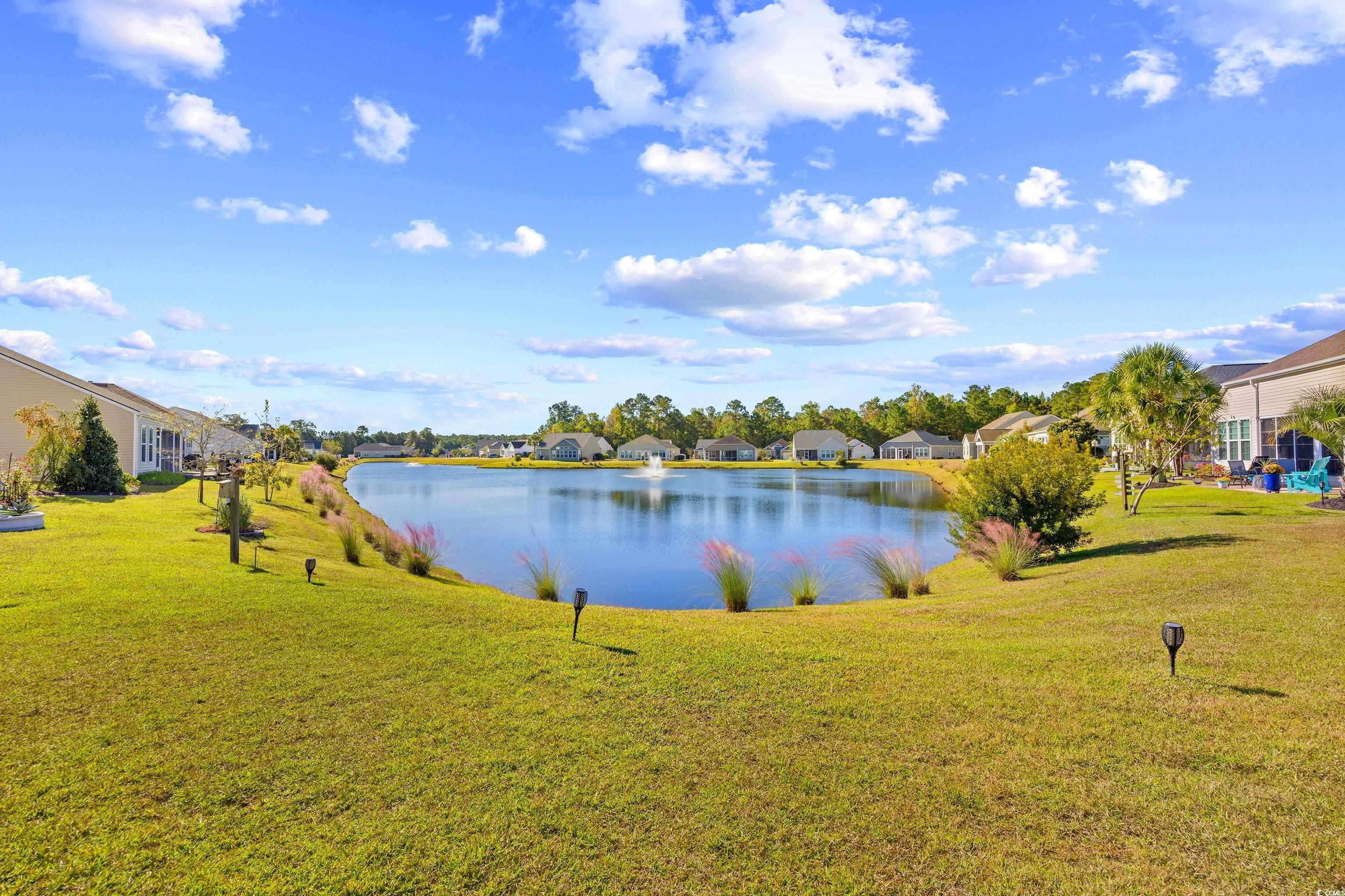 Come live the easy life at the beach! You will fall in love with this coastal oasis overlooking the serene pond with water fountains. This wonderful single-level home is located in Carolina Crossing, which is a unique community, because the landscaping is maintained for you! The exterior has stone accents with double french doors that lead into a foyer with a tray ceiling. This remarkable home has a grand entry with an open floor plan and high ceilings. The living room has a fireplace and custom built-ins were added for extra storage. This is the perfect spot to snuggle with your loved ones during the holidays. Engineered hardwood flooring was added throughout the main living area and you will notice that this lovely home has several windows which bring in an abundance of natural light. You can see the moon reflect on the water while you are enjoying a fabulous meal in the spacious dining area. The kitchen has an island bar with a pantry, stainless steel appliances, and a breakfast nook. Stylish cabinets and countertops have been added. There is a full-size laundry room and the washer/dryer will stay. The huge owner's suite has a tray ceiling, a big walk-in closet, and the attached bath features dual sinks. There are two large guest rooms and one of them has a built-in office area. The oversized sliding glass door in the living room opens up to a screened-in porch with tile and a vaulted ceiling. There's a big patio where you can grill out with friends while you watch the sunset over the water. There is a powder room inside for guests and a mud room area off the garage. This fantastic home has been very well-maintained by the original owners. A new HVAC system was installed in 2019, several windows were replaced in 2024, and the underground propane tank was replaced in 2019. The garage has a retractable screen door, which creates a comfortable place for everyone to sit back and relax. The yard has mature trees with beautiful curbscaping and river rocks. There is an outdoor pool with a clubhouse, which has social activities such as yoga and card games. This community is located about 15 minutes to Cherry Grove Beach, so you can live the Coastal Lifestyle! There are several delicious restaurants with live music, top-notch golf courses, and plenty of great fishing spots! This is truly a must-see and you don't want to miss out! Schedule your showing today and don't forget to check out the virtual tour! Square footage is approximate and not guaranteed. Buyer is responsible for verification.