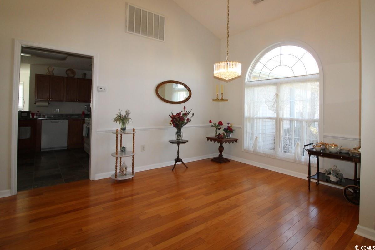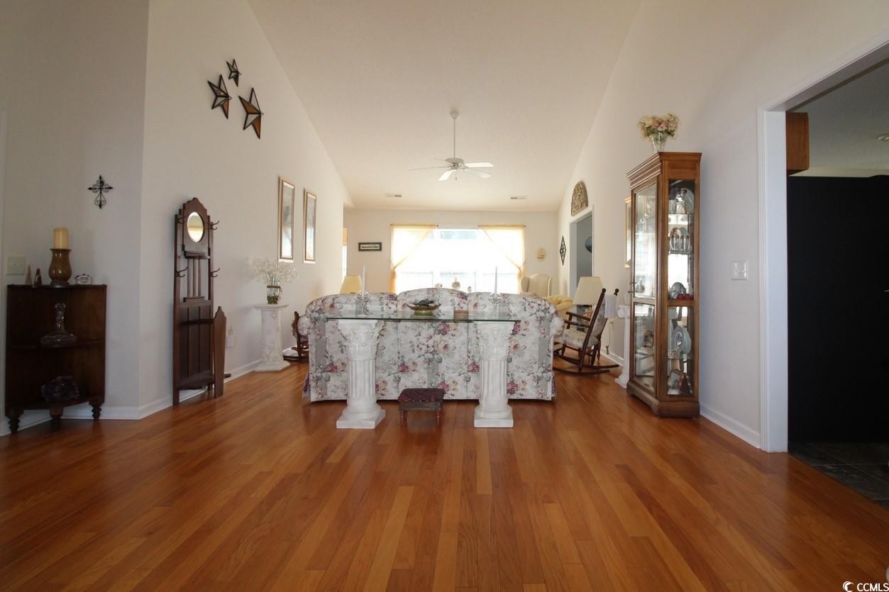 This 4BR, 2.5 BA home on a 0.32-acre lot enjoys a relaxing view of the community pond from the screened-in back porch. The home has a split bedroom floorplan with plenty of open space & high ceilings. The kitchen (19 x 12.5) has a flat top stove, built in microwave, breakfast eating area and a built-in desk. The living room (19 x 13) has a propane fireplace. The great room (22 x 13.5) with vaulted ceilings is the central core of the home. There is also a formal dining room. The master bedroom suite has a walk-in closet & linen closet. The hall from the kitchen to the garage services the laundry room, bedroom #4 and an additional half bathroom. New roof in 2022. HVAC 2017. Water Heater 2021. The home is located in the Collins Glenn community & the county resurfaced the roads in the summer of 2025. The community pool, weekly trash pick-up and internet service are amenities that are provided through the HOA. Collins Glenn is a highly desirous South Strand neighborhood serviced by the St. James schools. This home is conveniently close to Hwy 707, groceries, pharmacies, retail, the beaches of the Atlantic Ocean, the Murrells Inlet MarshWalk & all the amenities that the South Strand has to offer.
