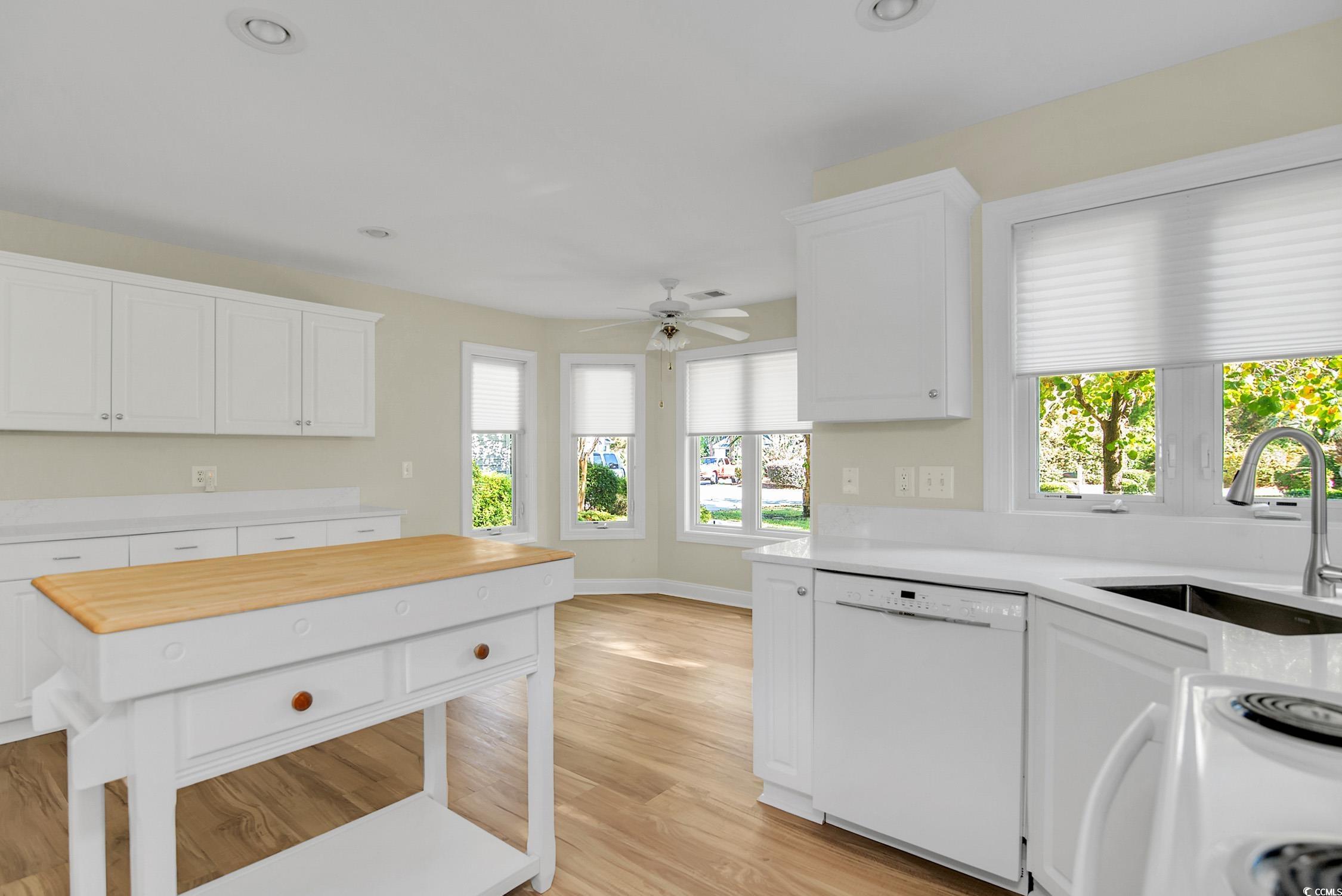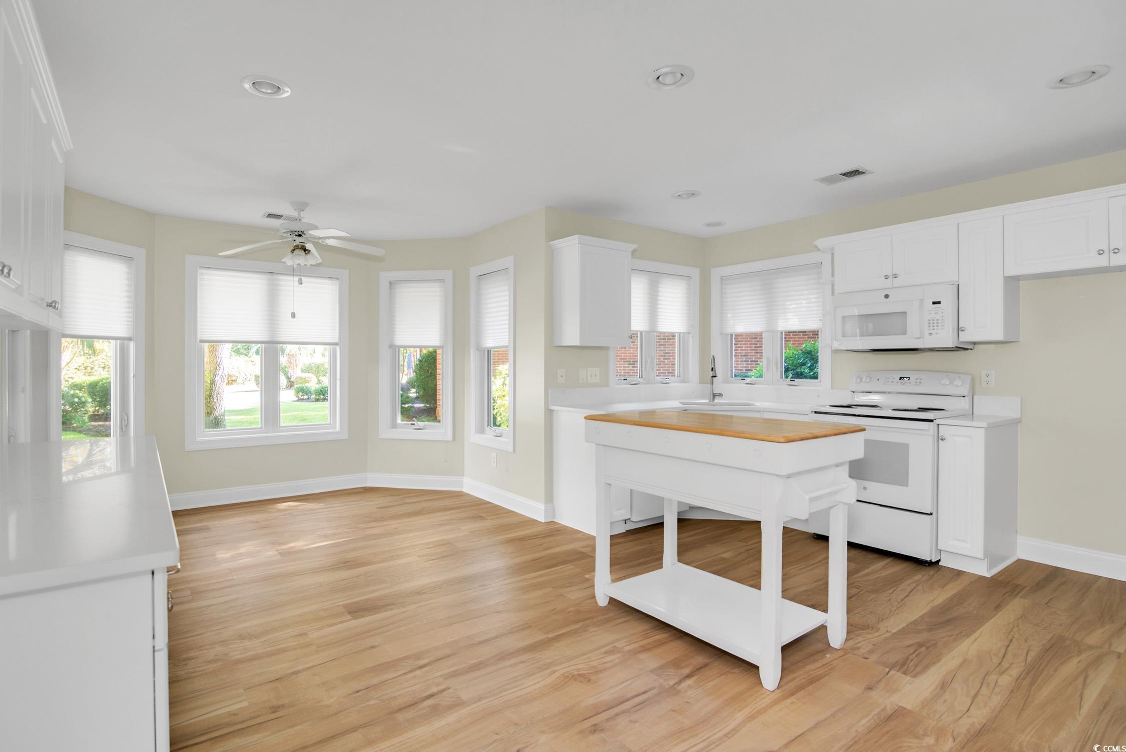 Move-in ready and well-maintained 3BR/2BA single-story home in the desirable Ricefields Plantation community. Home has been updated with new Luxury Vinyl Plank flooring in kitchen, living and dining rooms, laundry room, and hallway; new quartz countertops and stainless steel sink with new faucet in kitchen; fresh ceiling, wall, door, and trim paint throughout; new carpet in all bedrooms. Architectural roofing shingles, Leafguard gutter system and water heater replaced in 2021. HVAC with air scrubber system installed in 2023. The spacious family rooms vaulted ceilings and skylights provide a bright and airy living space, with an expansive view of the patio and rear yard. Enjoy the formal dining room or the breakfast nook in the kitchen, each with lovely window views of the outdoors. The primary bedroom with tray ceiling offers plenty of room as well as ensuite bath with double-sink vanity, large shower, garden tub, linen closet, and walk-in closet. Opening from the primary bedroom is a sitting area that also connects to both the primary bath and the back yard. Just inside from the two-car garage is the laundry room, which includes a sink, plenty of cabinet space, and relatively-new washer and dryer. Ricefields Plantations amenities include a sparkling community pool a short distance away, nature trails, a boat ramp providing easy access to the Waccamaw River & Intracoastal Waterway, discounted golf rates at nearby courses, and more. Situated in a prime location, Ricefields Plantation offers effortless access to pristine beaches, championship golf courses, and an abundance of shopping and dining options.