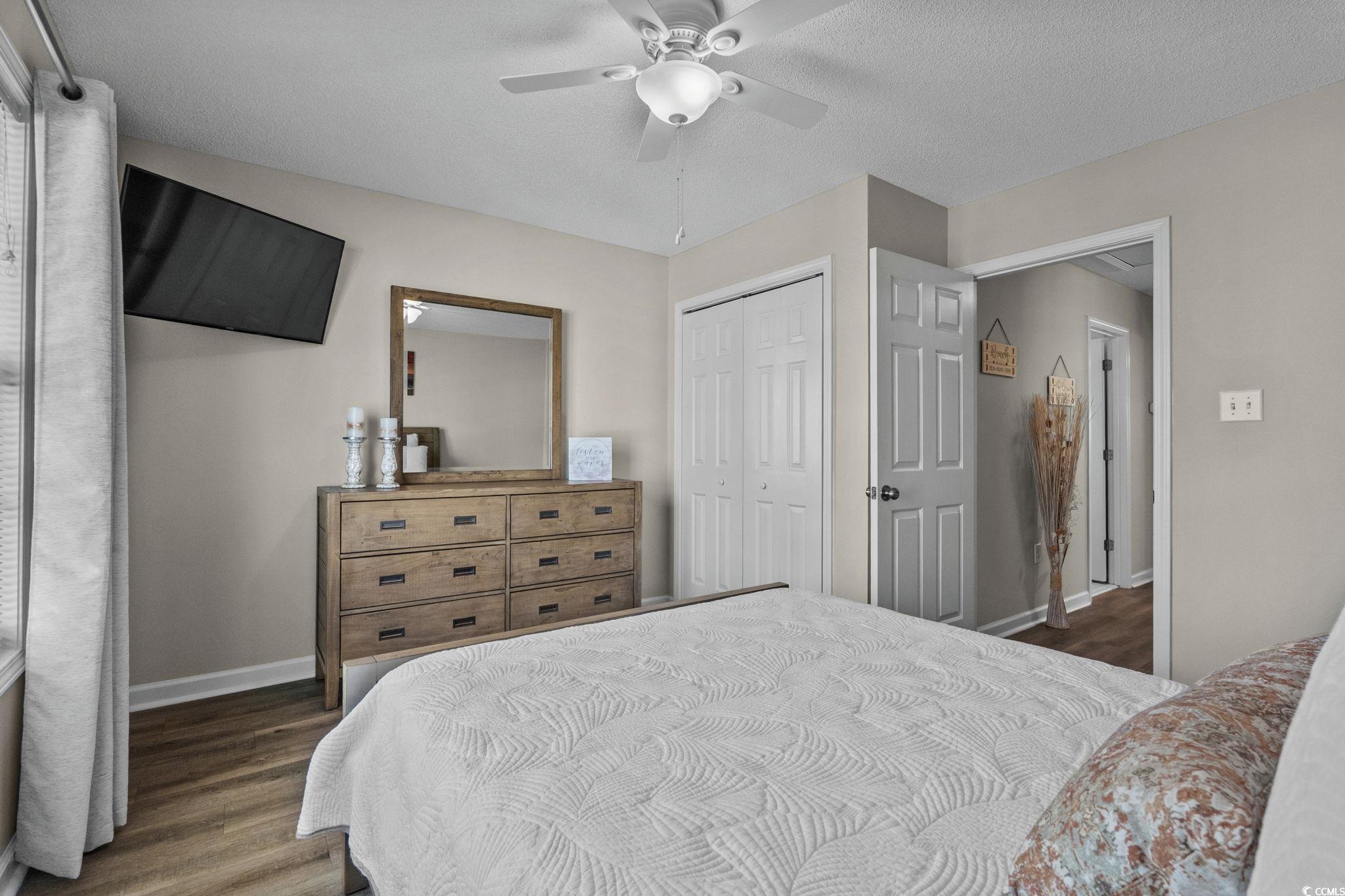 Well-maintained 3 bedroom, 2 bath home in Palmwood Estates located east of Hwy 17 in the Ocean Drive section of North Myrtle Beach. With approximately 1,629 heated square feet, this two-story property features an attached one-car garage with a mounted TV and driveway space for 2 more cars. Home is being sold mostly furnished, making it a great opportunity for buyers seeking a primary residence, vacation home, or investment property. Home is conveniently located a few blocks from the beach allowing for a short walk or quick golf cart ride to the ocean. Recent updates include two new heating and air units installed in 2021 and a new roof completed by Monarch Roofing in 2023. The home has upgraded luxury vinyl plank throughout the family room, dining area and bedrooms, with tile in the kitchen, laundry and bathrooms. The first floor features a nice sized 119 x 228 family room with a ceiling fan and lots of windows for abundant natural light. The kitchen offers granite countertops with an undermount sink, ample cabinetry including a pantry cabinet, and stainless steel appliances which include a refrigerator, a new dishwasher (2025), and smooth top stove with microwave above. The adjacent dining area (113 x 11) provides a comfortable space overlooking the backyard, ideal for everyday meals or entertaining. The nice-sized laundry room accommodates a side-by-side washer and dryer (2020), shelving storage above, utility sink, and an additional storage closet. All appliances convey with the home. Upstairs, the spacious primary suite (167 x 145) includes two closets, a ceiling fan, and an updated bathroom with a double-sink granite vanity, a linen closet, and a recently installed 5 walk-in shower (2022) with modern glass sliding doors. Two additional guest bedrooms, each with ceiling fans, are also located on the 2nd level, along with a guest bathroom that includes updated lighting, granite countertop, and a tub/shower combination. Additional features include a transferable termite bond from MidSouth Pest Control, outdoor shower, and access to a community clubhouse and large pool. Owners are allowed golf carts and pets. No short term rentals. The low HOA fee includes common area maintenance, pool and clubhouse maintenance and basic yard maintenance (grass mowing). Come see this beautiful home so close to everything North Myrtle Beach has to offer: shopping, restaurants, fishing, golfing, entertainmentand dont forget the amazing Intracoastal Waterway and nearby sandy beaches of the Atlantic Ocean! Come see your new beach home today!