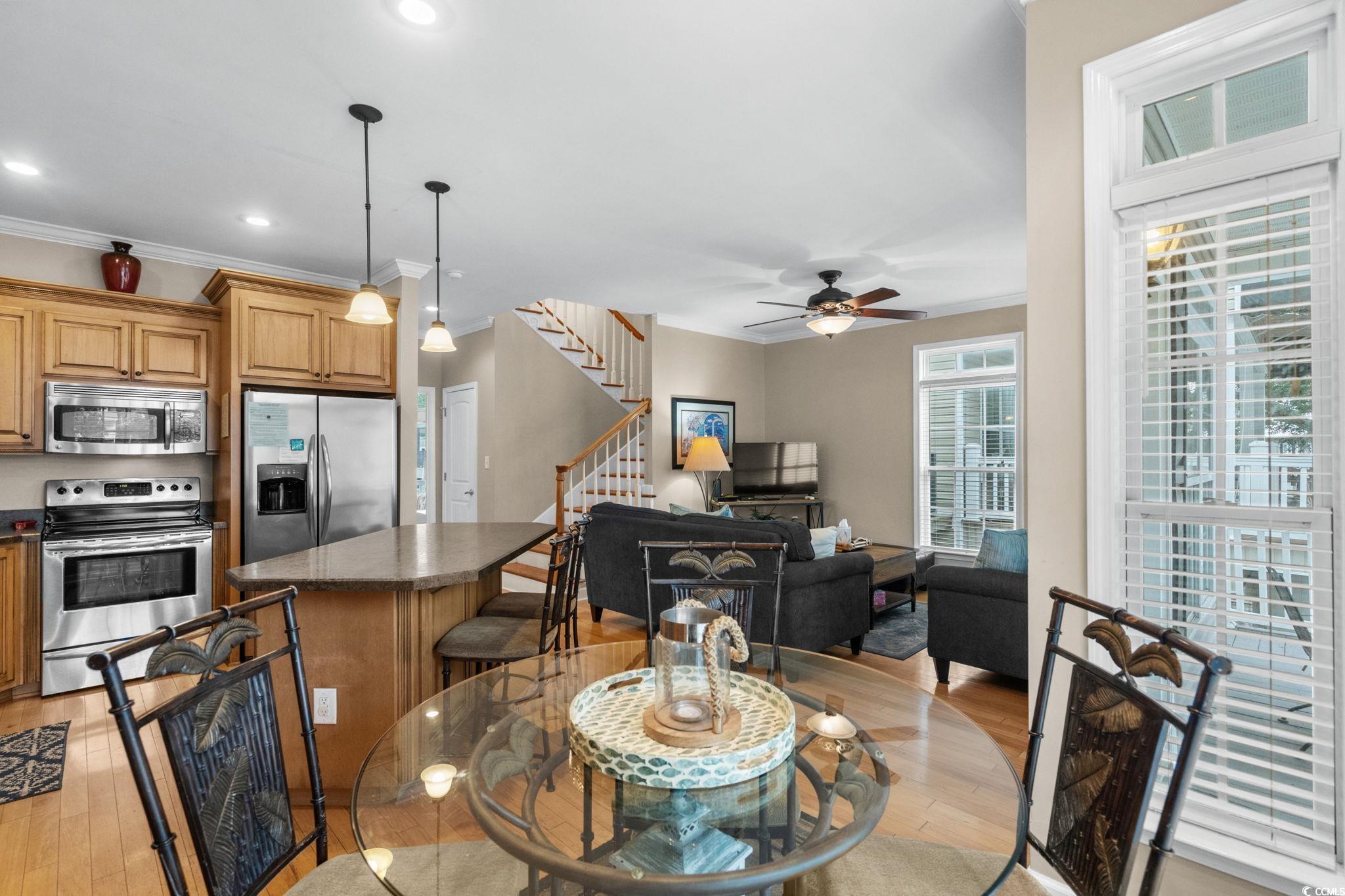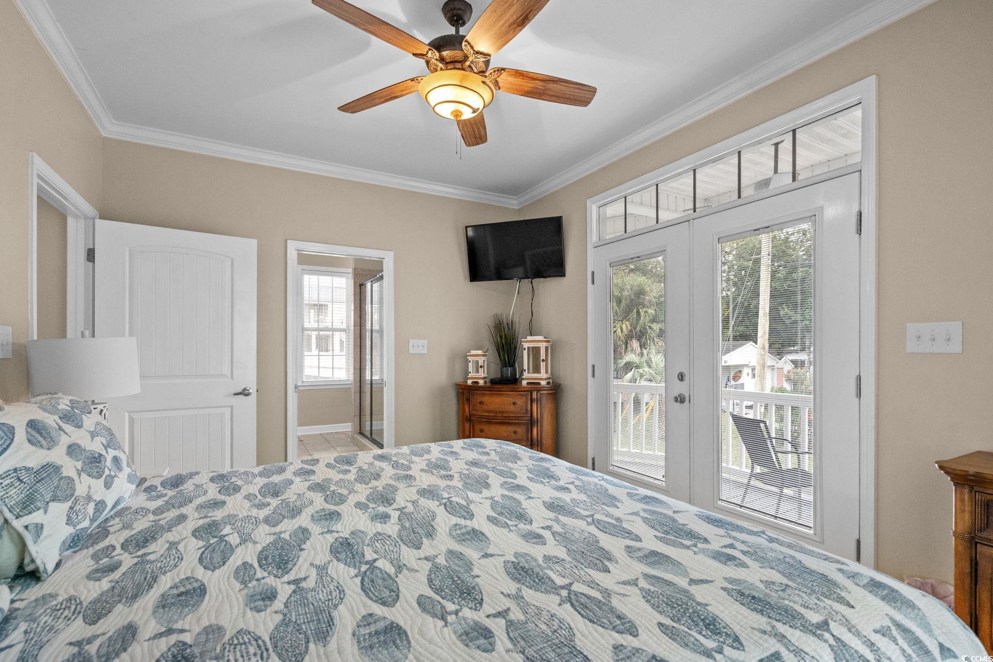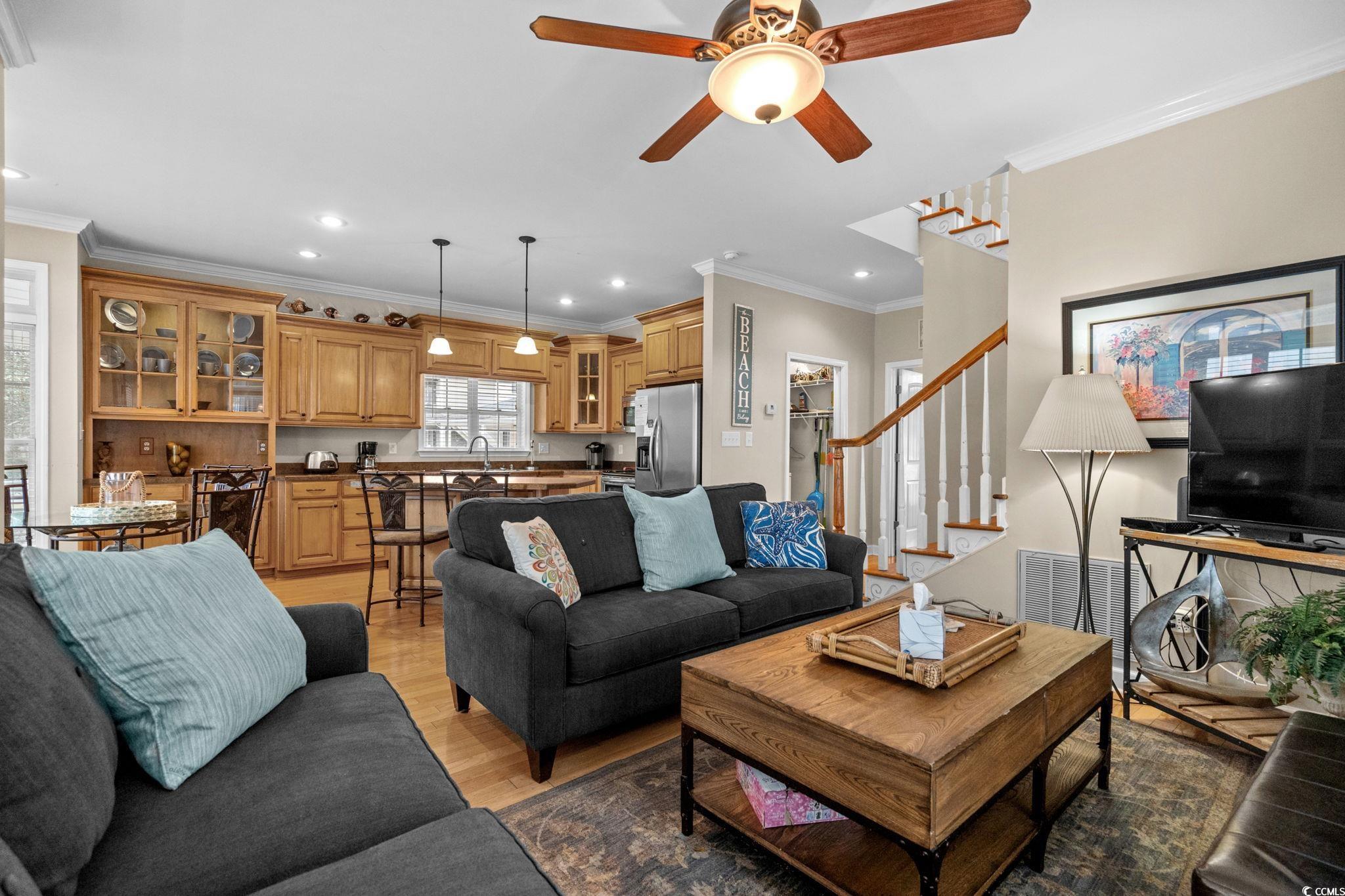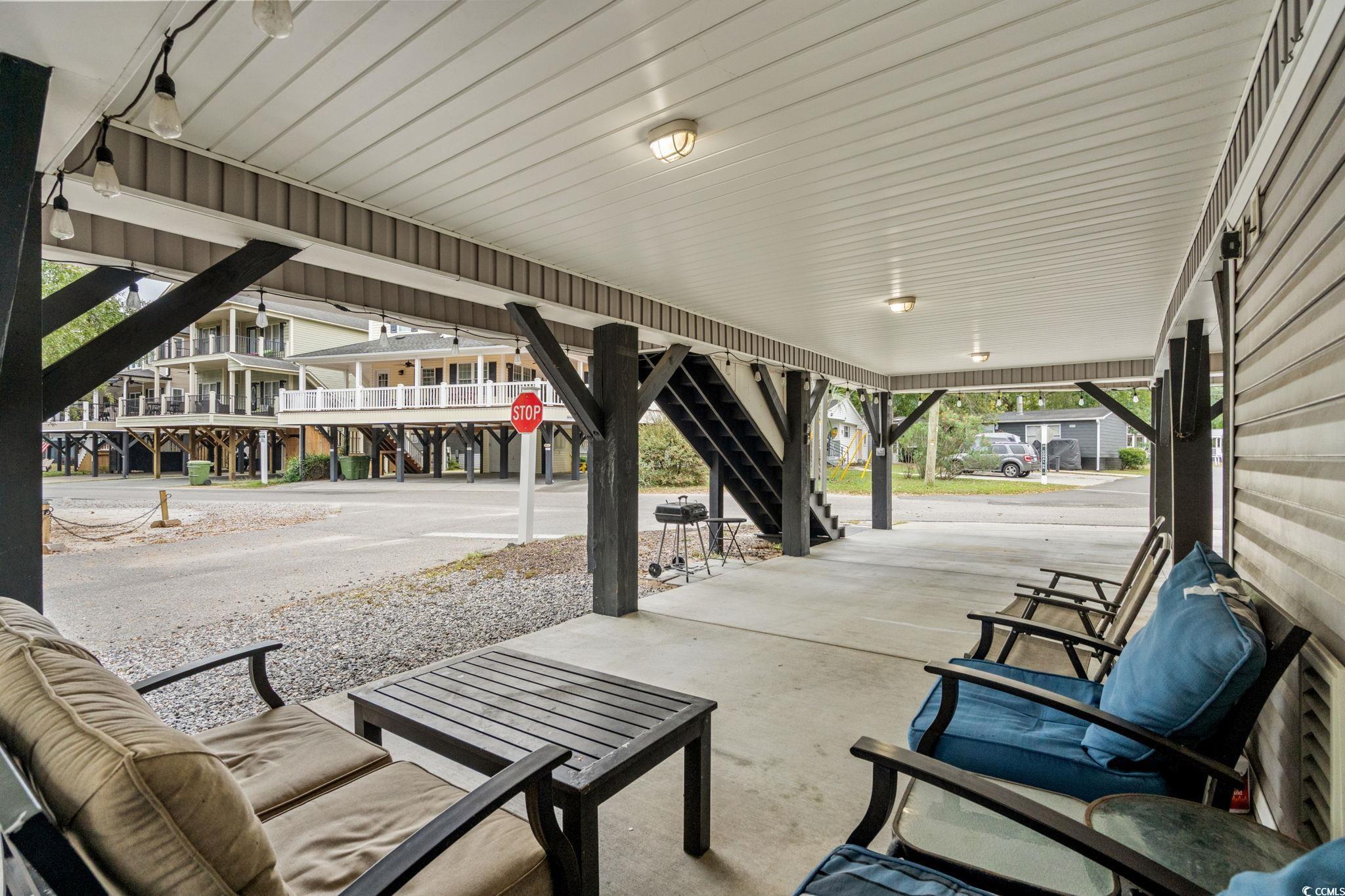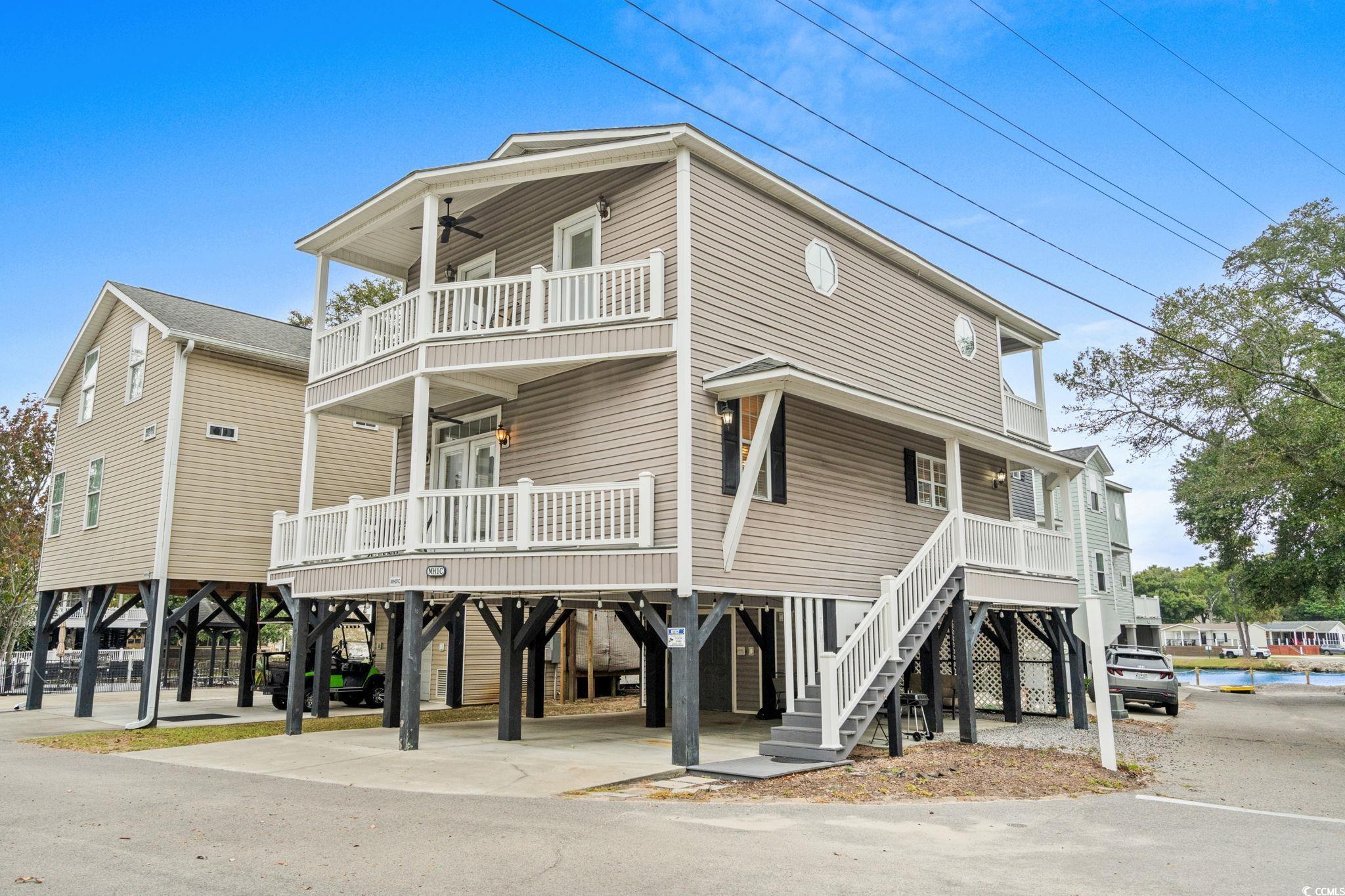 MH-01c is located in Ocean Lakes on Coral Drive. This gorgeous home has been extremely well taken care for and is currently on a short-term rental program. All the bells and whistles you want in a beach house. This custom built 4 bedroom 3.5 bath home has room for 4 cars underneath with a shower with hot water and plenty of room for golf carts. There is a roomy storage area for all your beach chairs, toys etc. You will also find an outside area with a tv and outdoor seating for entertaining. One of the many features of this home are the 4 covered porches. Entering inside on the 1st floor you have beautiful hardwood floors , the open floor plan featuring a beautiful kitchen with custom cabinetry and stainless steal appliances. The open family room with large tv and tons of seating plus a half bath. The large primary suite opens to its own private covered porch and large primary bath are one of the most talked about features. Upstairs you will find a 2nd primary suite that opens to a covered porch and two more bedrooms that open to covered porches. There is a second living room upstairs that has a couch and a loveseat that opens up to a full size bed plus another full bathroom. This home comes fully furnished (minus a few personal things) and includes multiple TVs, washer / dryer , appliances, etc.
