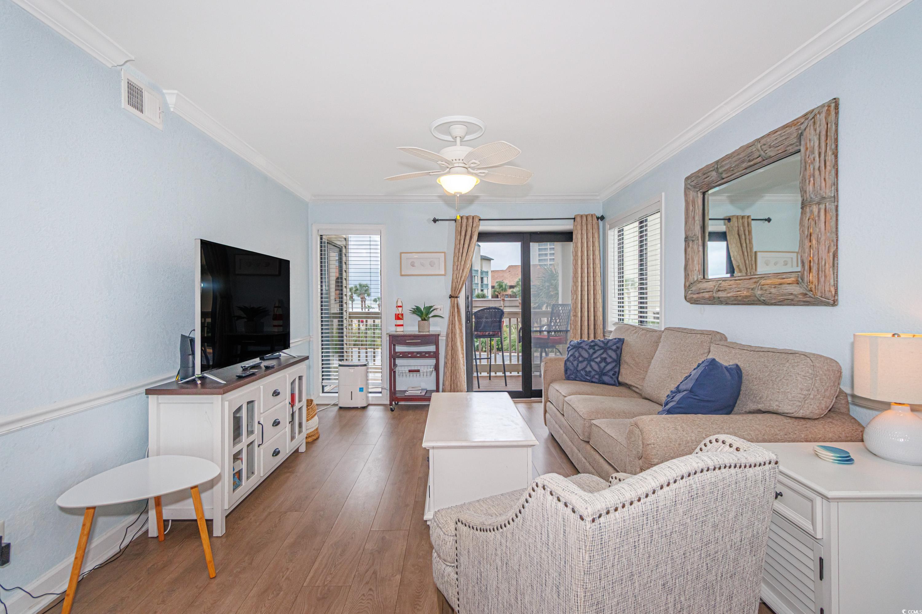 Beautifully Updated 2BR/2BA in Ocean Forest Villas - Steps from the Beach! This fully furnished, turnkey condo in the sought-after Ocean Forest Villas community truly checks all the boxes. Featuring desirable upgrades throughoutcentral HVAC, luxury vinyl plank flooring, smooth ceilings, crown molding, and an expanded primary bathroom with a beautifully tiled shower. The kitchen shines with updated cabinetry, granite countertops, and stainless steel appliances, creating a modern coastal feel. Perfectly positioned on the 2nd floor of the south side A building, this unit enjoys enhanced ocean views above the 1st-floor units while still offering easy access with only a few stairs. Ocean Forest Villas is a Myrtle Beach favorite, set in the historic Cabana Section on the former site of the iconic Ocean Forest Hotel. The HOA is exceptionally well managed, with beautifully maintained grounds, lush landscaping, and inviting common areas. Whether youre seeking a primary residence, a second home, or a strong vacation rental investmentthis one delivers on every level.