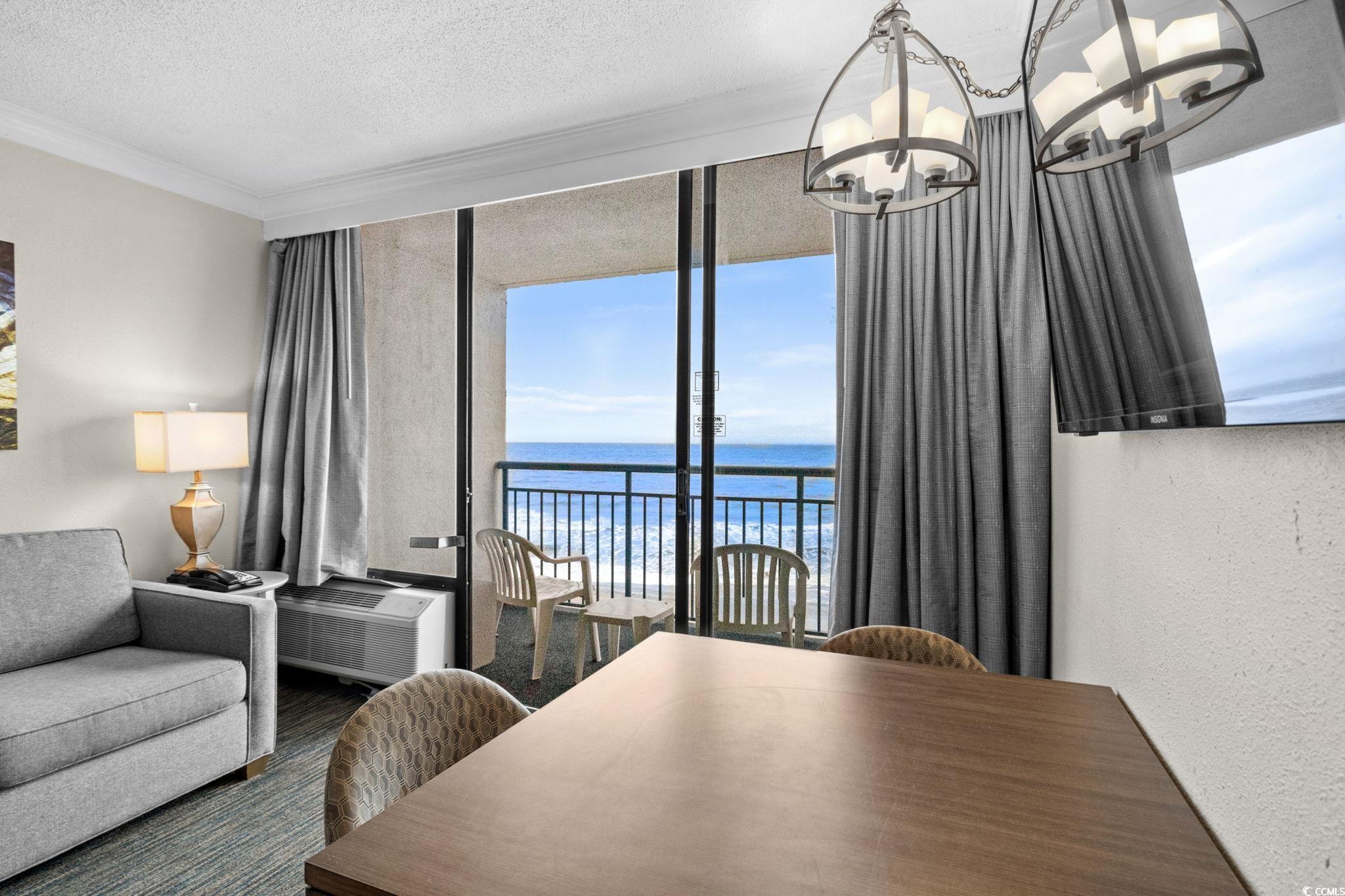 Welcome to your oceanfront getaway at Coral Beach Resort in Myrtle Beach, the perfect vacation retreat for owners and guests alike. This amenity-packed resort is designed for fun, relaxation, and lasting memories. Enjoy an entertainment zone complete with bowling, arcade games, a snack bar, and an ice cream shop. The resort also features a fitness room, business center, resort shop, and five on-site eateries, including a pool bar and caf. With indoor and outdoor pools, a lazy river, hot tubs, and a childrens water park, Coral Beach offers something for everyone to enjoy. Located on the 5th floor, this beautifully decorated one-bedroom condo provides the ideal height for stunning ocean views without being too high or low. Take in breathtaking views of the ocean directly from the kitchen and living area or relax on your private balcony, which offers concrete privacy walls on both sides. Inside, youll find a full kitchen with warm brown cabinetry, granite countertops, and black appliances. The bedroom includes two queen beds and, unlike some other units, features a door that separates it from the living area for added privacy. The living room also includes a Murphy bed, offering flexible sleeping space for guests. Sold fully furnished and ready, this condo is an excellent opportunity to own a piece of one of Myrtle Beachs most popular resorts. The homeowners association covers all utilities and building insurance. With its unbeatable amenities, prime oceanfront location, and proven guest appeal, this Coral Beach condo is the perfect place to create unforgettable vacation experiences. Located close to Market Commons Shopping and Dining District, Broadway at the Beach, and all the Grand Strand has to offer! Rest easy knowing you are only a short drive from wonderful dining, entertainment, and shopping options. HOA information has been provided to the best of our ability. All information should be verified and approved by the buyer. Square footage is approximate and not guaranteed. The buyer is responsible for verification.