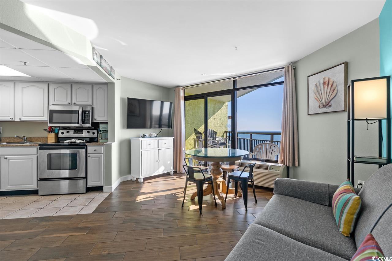 Welcome to this beautifully renovated ocean view condo, perfectly positioned at the end of Myrtle Beachs prestigious Golden Mile. From the moment you walk in, you're greeted with breathtaking views of the oceanespecially stunning at sunset. This move-in ready unit features a brand-new stainless steel stove and microwave, two smart TVs for your entertainment, and two brand new HVAC units for year-round comfort. The building offers a peaceful setting while being just minutes from all the excitement Myrtle Beach has to offer, including top-rated restaurants, shopping, golf, and attractions. Whether you're looking for a vacation getaway, investment property, or full-time beachside living, this condo delivers the ideal blend of style, convenience, and location. Dont miss your chance to own a piece of paradise with one of the best views on the coast.