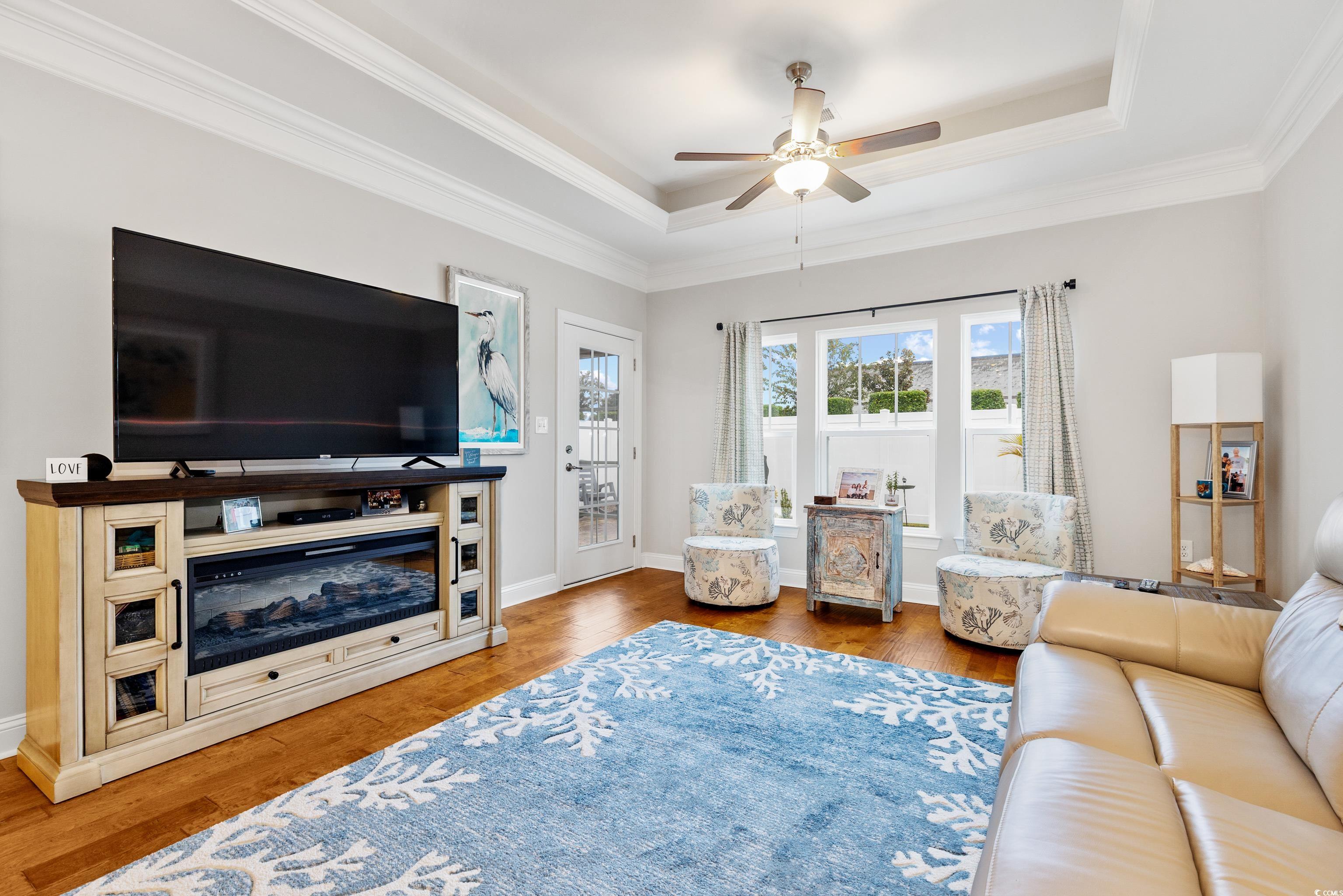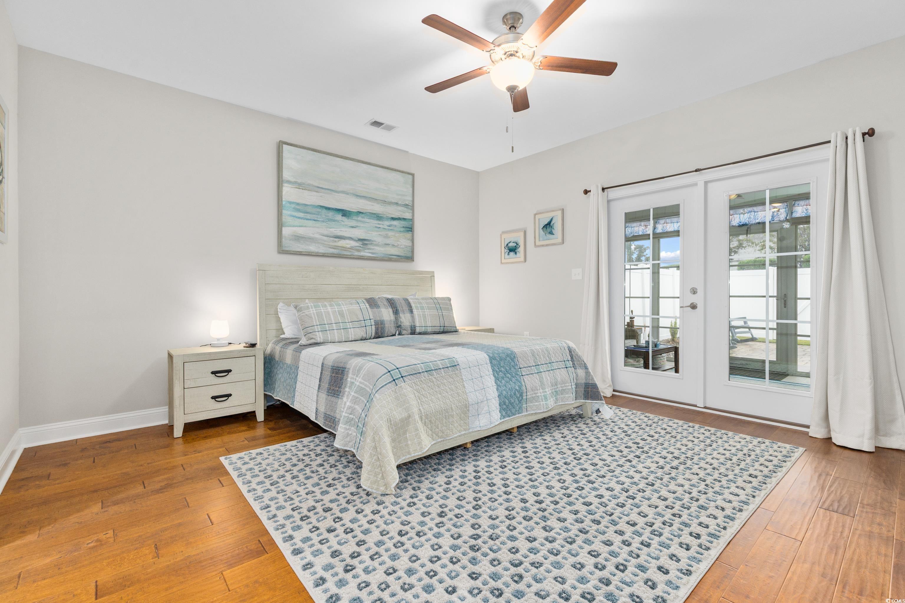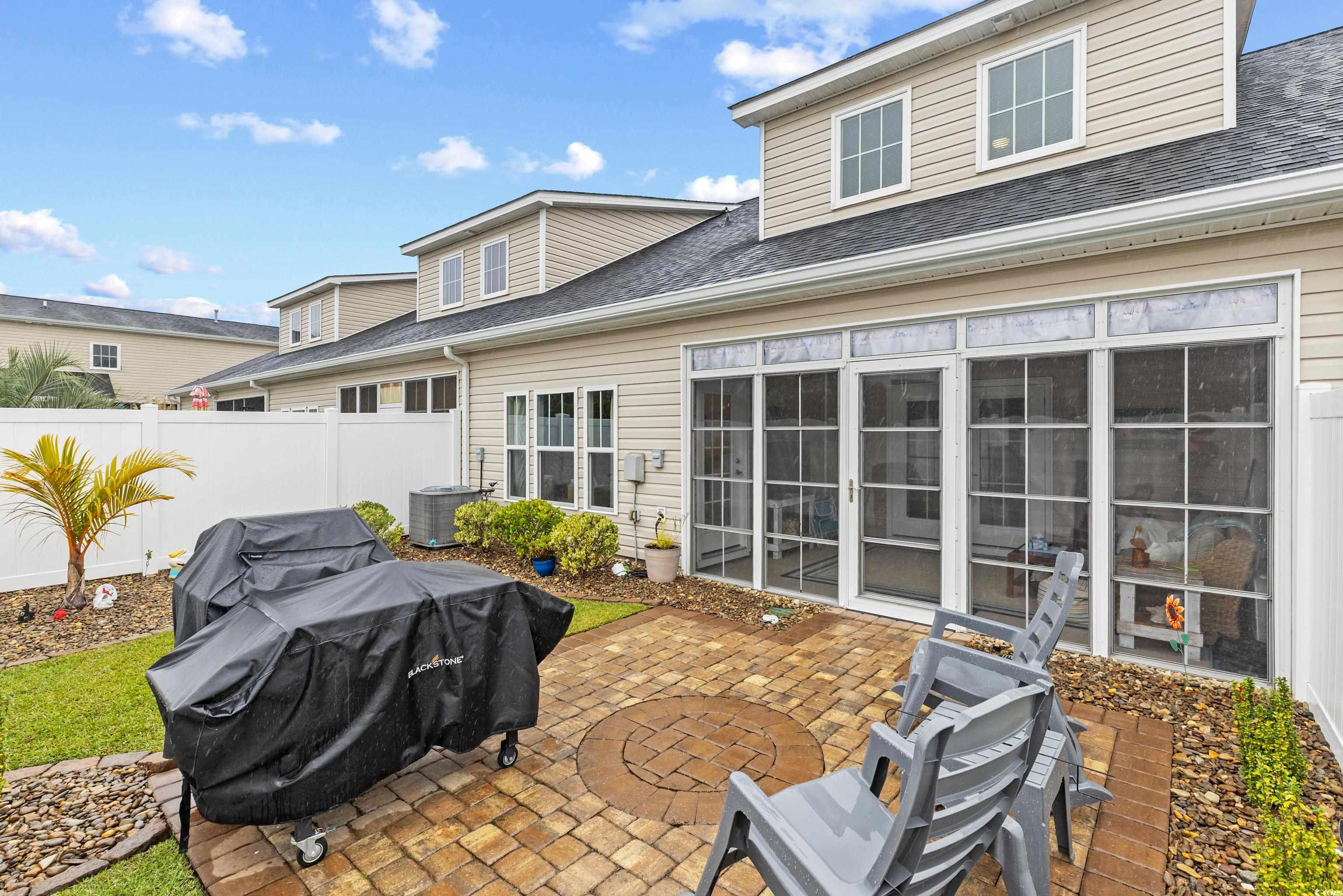 Welcome to this meticulously maintained 3-bedroom, 3-bath townhome in the desirable Queens Court community of Myrtle Beach. The open, flowing floor plan is perfect for both everyday living and entertaining. The spacious kitchen features stunning granite countertops, stainless steel appliances, and a large pantry, providing both style and functionality. The first-floor master suite is a true retreat, with hardwood floors and a large ensuite bathroom complete with a walk-in shower, dual-sink vanity and extra large linen closets. This two-story unit features hardwood flooring throughout the entire first floor, including both downstairs bedrooms and smart thermostats for first and second levels. A full bath is centrally located at the bottom of the stairs featuring tile floor, marble vanity and extra large linen closets. Upstairs, you'll find a spacious bedroom, neutral carpet with large closet and an additional full bath. Need storage? A dedicated storage room ensures you have space for everything! This home features a 1-car private garage and natural gas with a tankless water heater for energy efficiency. Relax and unwind in the generously sized patio room, the perfect spot for sipping your morning coffee or enjoying a quiet evening. The patio room is heated and cooled and features easy breeze windows. The backyard boast a beautiful paver patio and privacy fence making it ideal for entertaining or enjoying the outdoors. The patio is also equipped with a gas line for a grill which makes entertaining truly effortless. Pool and clubhouse are just a short golf cart ride away! Conveniently located south of Myrtle Beach and minutes away from shopping, dining and beaches. Schedule your showing today.