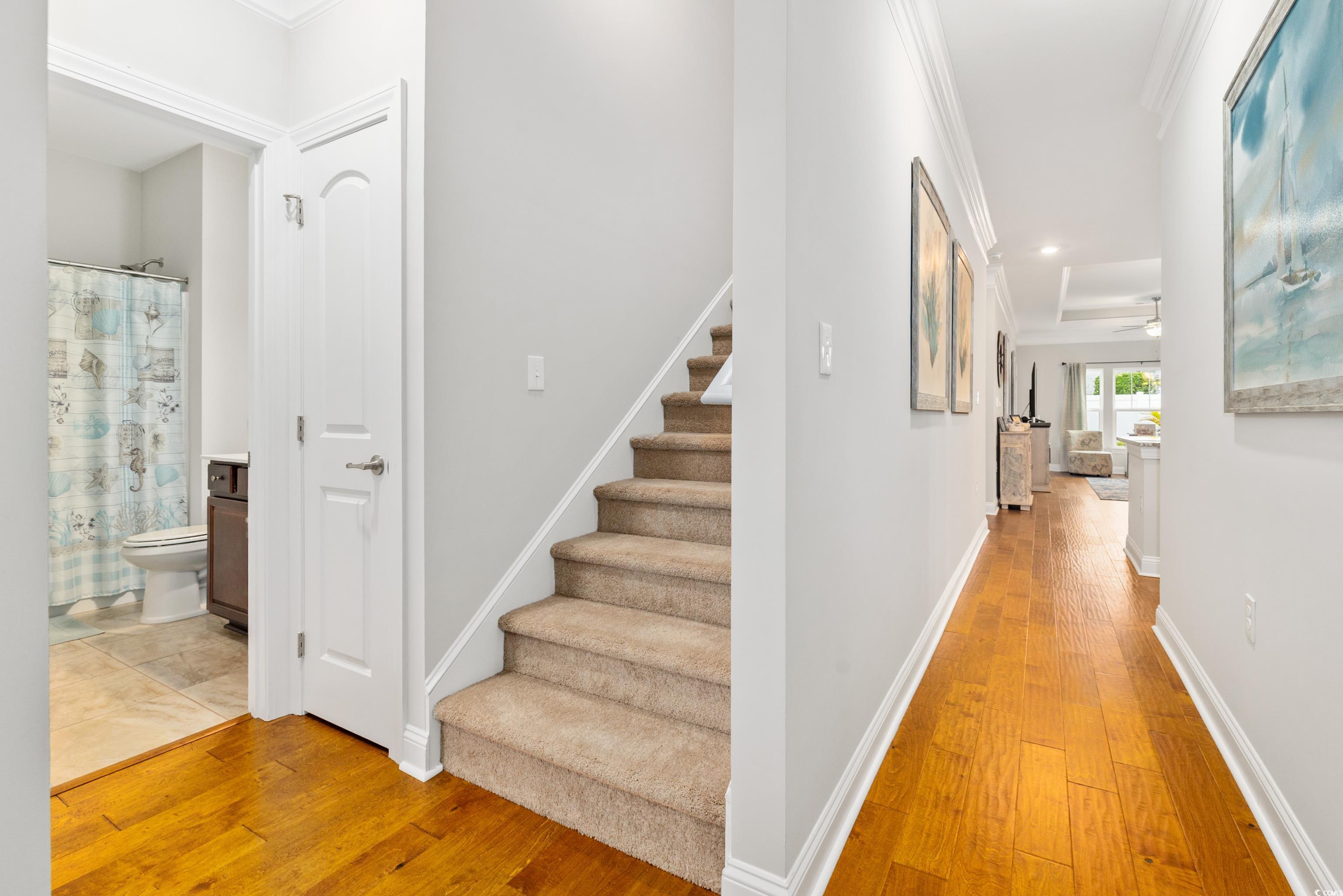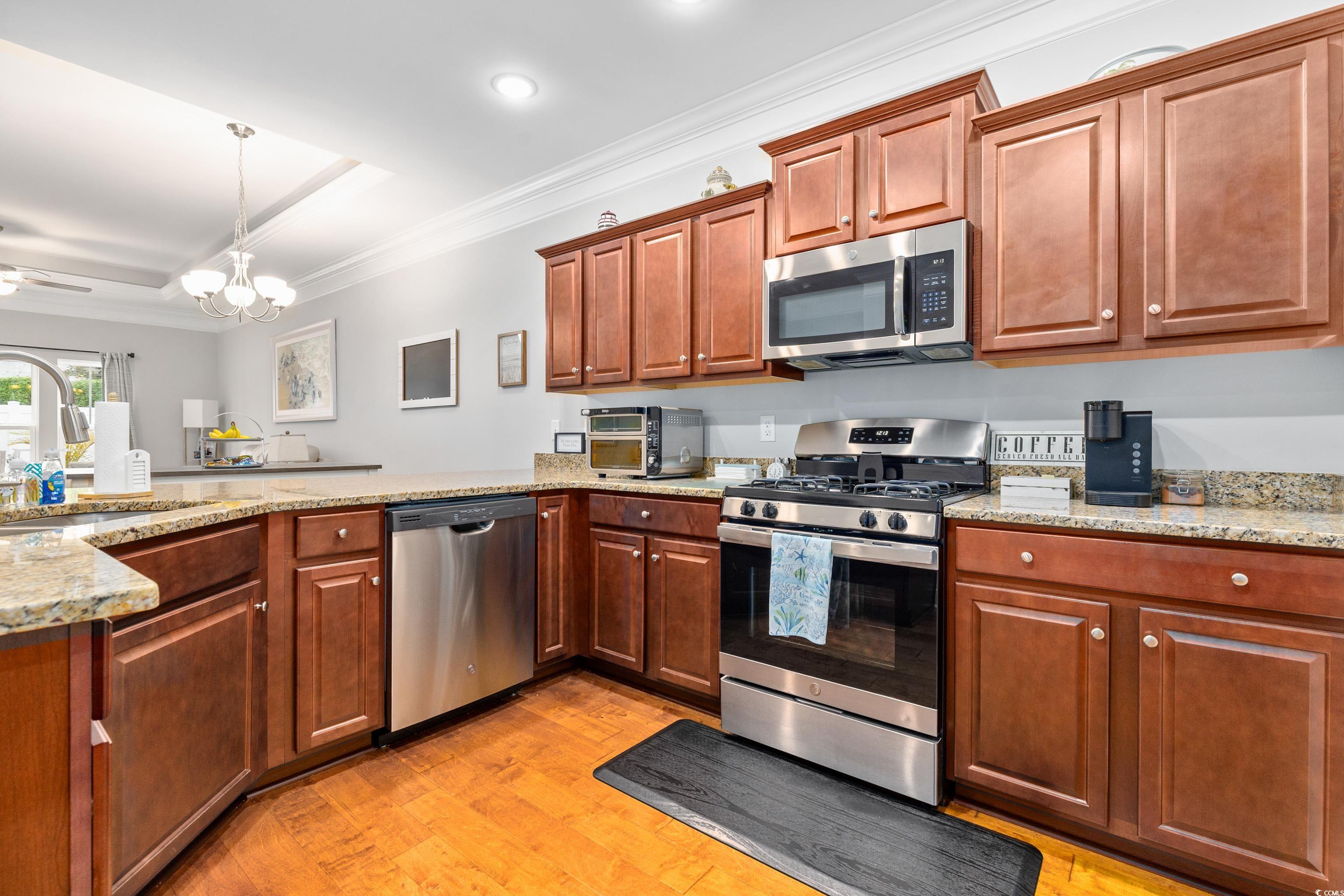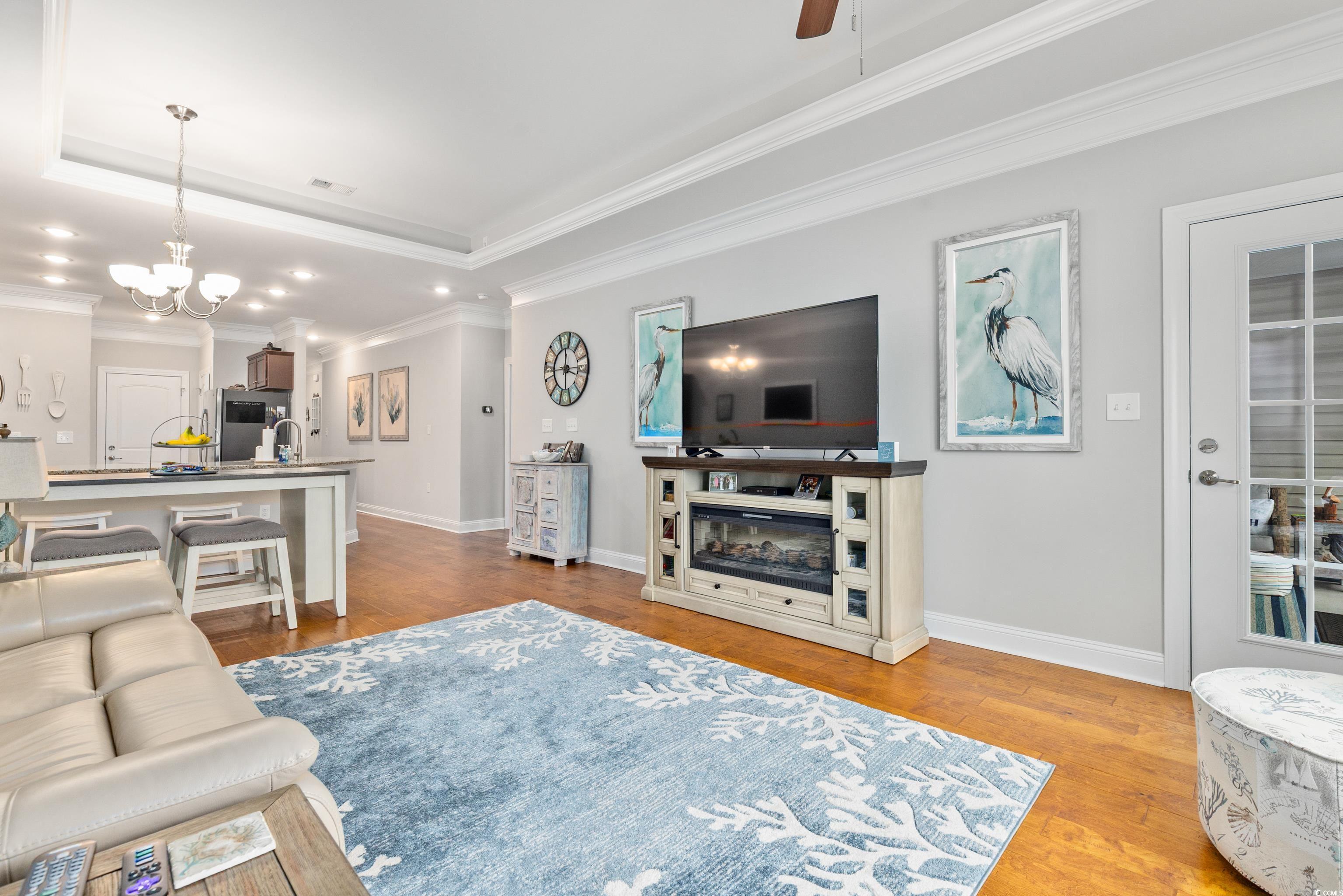 Welcome to this meticulously maintained 3-bedroom, 3-bath townhome in the desirable Queens Court community of Myrtle Beach. The open, flowing floor plan is perfect for both everyday living and entertaining. The spacious kitchen features stunning granite countertops, stainless steel appliances, and a large pantry, providing both style and functionality. The first-floor master suite is a true retreat, with hardwood floors and a large ensuite bathroom complete with a walk-in shower, dual-sink vanity and extra large linen closets. This two-story unit features hardwood flooring throughout the entire first floor, including both downstairs bedrooms and smart thermostats for first and second levels. A full bath is centrally located at the bottom of the stairs featuring tile floor, marble vanity and extra large linen closets. Upstairs, you'll find a spacious bedroom, neutral carpet with large closet and an additional full bath. Need storage? A dedicated storage room ensures you have space for everything! This home features a 1-car private garage and natural gas with a tankless water heater for energy efficiency. Relax and unwind in the generously sized patio room, the perfect spot for sipping your morning coffee or enjoying a quiet evening. The patio room is heated and cooled and features easy breeze windows. The backyard boast a beautiful paver patio and privacy fence making it ideal for entertaining or enjoying the outdoors. The patio is also equipped with a gas line for a grill which makes entertaining truly effortless. Pool and clubhouse are just a short golf cart ride away! Conveniently located south of Myrtle Beach and minutes away from shopping, dining and beaches. Schedule your showing today.