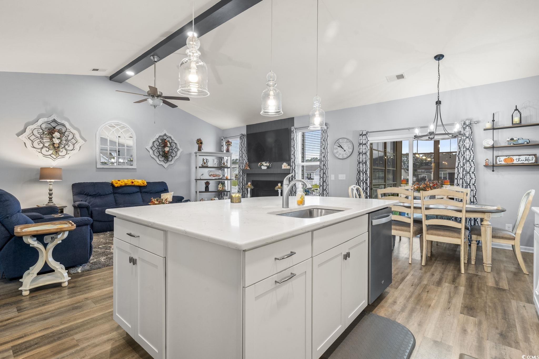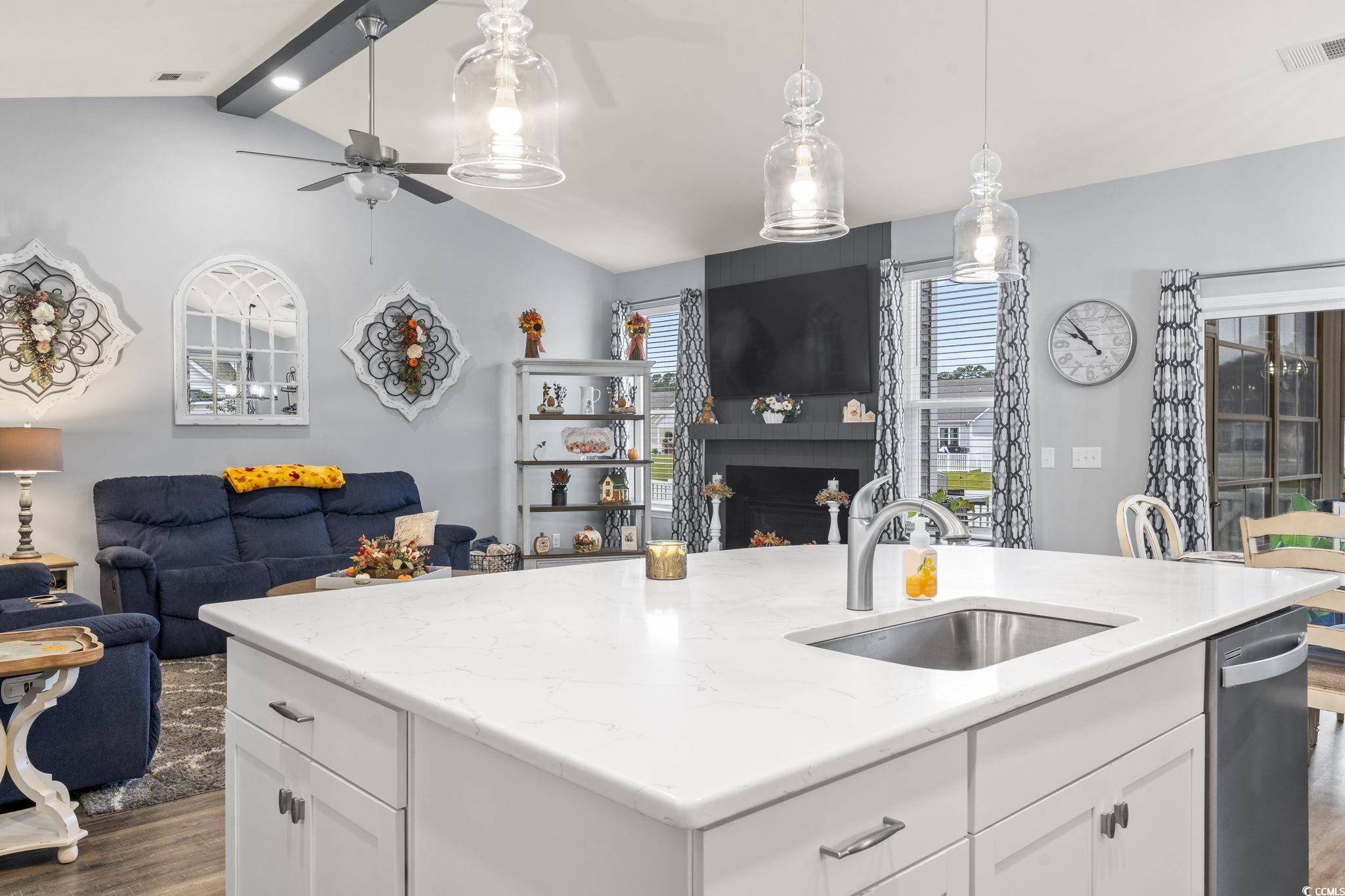 ***OPEN HOUSE Saturday November 1st 1-4pm and Sunday November 2nd 12-2pm*** Welcome to this inviting single-story home situated in the desirable Cameron Village community. Designed with an open floor plan, the kitchen flows into the spacious great room, both highlighted by elegant, vaulted ceilings. French doors lead to a flexible room, which can be customized as a home office, playroom, or dining area, offering versatility to suit your lifestyle needs The expansive primary suite is crafted for ultimate comfort and relaxation. It features a stunning bay window that bathes the room in natural light, creating a warm and welcoming ambiance. The en suite bathroom includes double vanity sinks and a generously sized tile shower, presenting a spa-like atmosphere for daily indulgence. This home is enhanced by a selection of premium upgrades. Enjoy the durability and style of luxury vinyl plank flooring in the main living areas, complemented by Quartz countertops, a tiled backsplash and pendant lighting in the kitchen. The custom tile shower adds a touch of luxury, while shiplap accents in the primary bedroom and on the fireplace deliver modern flair. Additionally, a decorative beam with integrated lighting elevates the look and feel of the kitchen and family room. This home has a split-bedroom layout, and the main bathroom is equipped with a newly installed soaking tub complemented by a tiled accent wall. Step outside onto the back porch, designed for year-round enjoyment with Eze-Breeze windows and a tiled floor. This comfortable space is perfect for relaxing or entertaining. The extended patio overlooks a tranquil pond, making it an ideal setting for gatherings with family and friends. This home also features beautiful landscaping with lights. See the complete list of upgrades in the documents section. Residents of Cameron Village benefit from a variety of amenities, including a swimming pool, clubhouse, pickleball and tennis courts, basketball facilities, and a playground. These features ensure that there is something for everyone to enjoy within the community. Conveniently located off Highway 707, this home is just one mile from Route 31. Residents have quick access to local shopping, dining, and entertainment options, making everyday living both easy and enjoyable. REFRIGERATOR DOES NOT CONVEY!