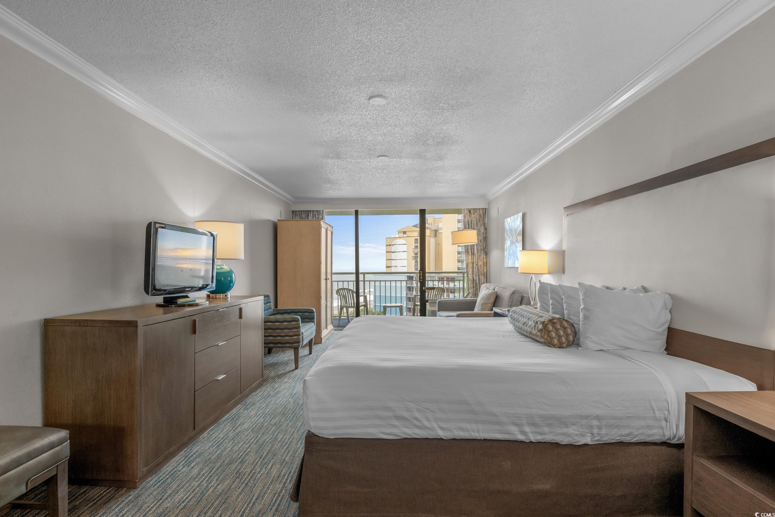 Welcome to beautiful Coral Beach Resort right on the oceanfront of Myrtle Beach! Wake up to ocean views and sounds in this furnished efficiency unit with a private balcony. This welcoming unit features a kitchenette with countertop space, mini refrigerator, microwave, a sitting area with sofa, and a bath tub with shower. This is a wonderful get away haven that is sought after for vacation rentals or to enjoy for yourself. There is no shortage of resort amenities with outdoor pools, and indoor pool, gym, lazy rivers, bars, restaurant, hot tubs, arcade, laundry facility, shopping, and even a bowling alley. Coral Beach is located in the heart of Myrtle Beach with a large selection of entertainment routes from Broadway at the Beach, Market Common, Myrtle Beach State Park, the beautiful Atlantic Ocean itself, and the Boardwalk. A great opportunity to own your slice of paradise!