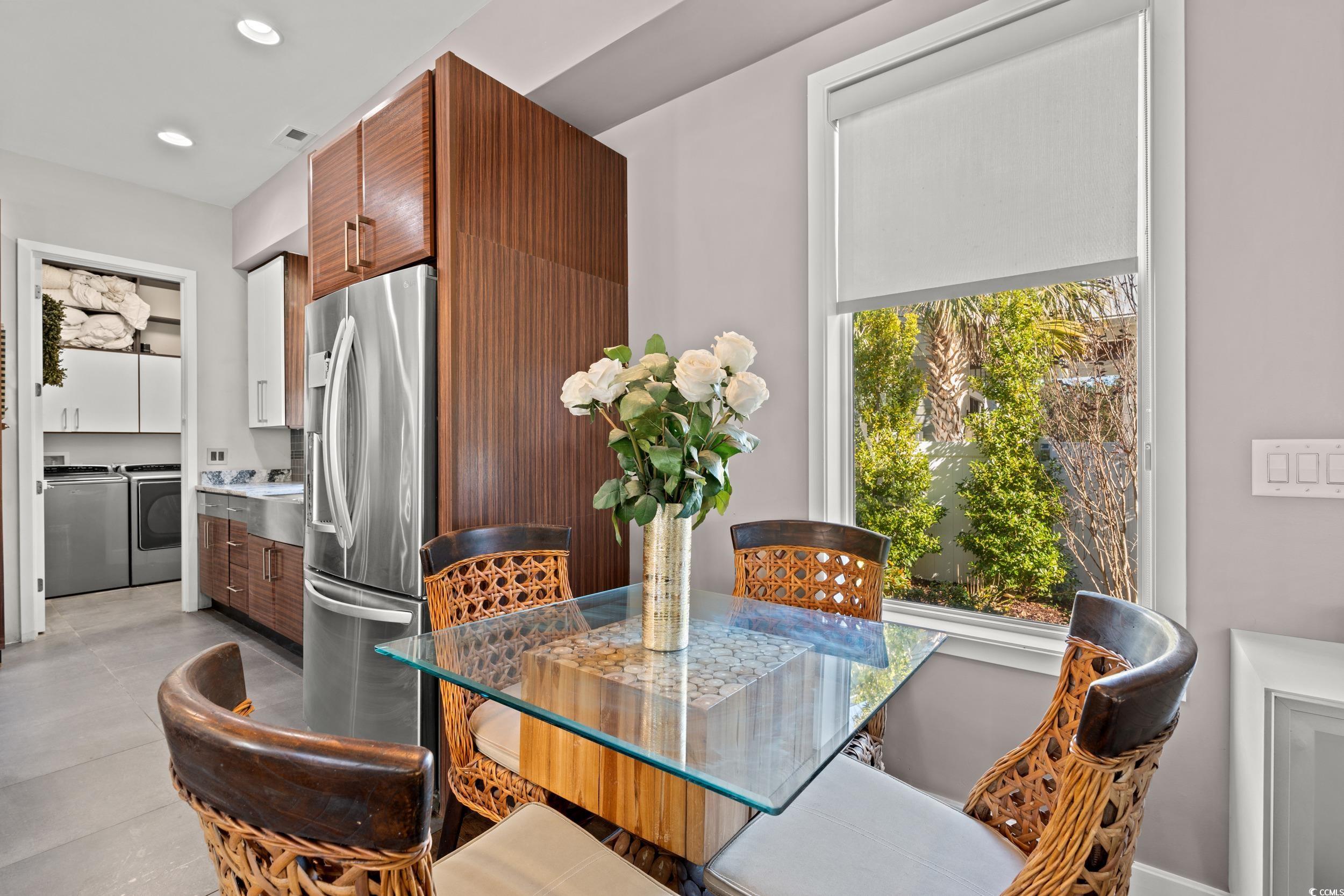 Experience the perfect blend of modern luxury, comfort, and coastal living in this fully furnished, move-in-ready home in the highly sought-after Pine Lakes communityjust three short blocks from the beach! Thoughtfully designed and architecturally interesting, this home stands out with its clean lines, rich materials, and warm textures. The striking exterior showcases natural stacked stone and beautiful Brazilian Ipe wood detailing by the front door, trim, and second-floor primary balcony, creating a truly distinctive coastal-modern aesthetic. Built with quality and style in mind, this turn-key property sits on one of the last lots developed in Pine Lakes, offering incredible value compared to surrounding homes. Inside, youll find designer furnishings, impact-resistant windows and doors, a metal roof, tankless water heater, and a chefs kitchen complete with premium appliances, natural gas cooktop, and tiger wood cabinetry. The open living space features a stacked stone gas fireplace, custom window treatments, and smart home technologywith Alexa-compatible systems controlling lighting, locks, thermostat, and security from anywhere in the world. Step outside to your private eco-friendly oasis, designed with native plants, fruit trees, and sustainable landscaping that attract butterflies, birds, and other local wildlife. Enjoy the heated and cooled cottage with a kitchenette and electric fireplace, the temperature-controlled greenhouse behind, and a sparkling in-ground pool surrounded by rosewood-toned Brazilian Ipe decking and elegant stacked stone accents. As a bonus the climate-controlled cottage space is not included in total heated square footage. Additional features include a primary suite with concealed wall safe, concealed table safes, a gaming/computer nook with a hidden twin bed, and best of allno HOA! Whether youre seeking a luxury beach retreat or a full-time residence close to everything Myrtle Beach has to offer, this home is truly one-of-a-kind. Just bring your toothbrush and start living your coastal dream!