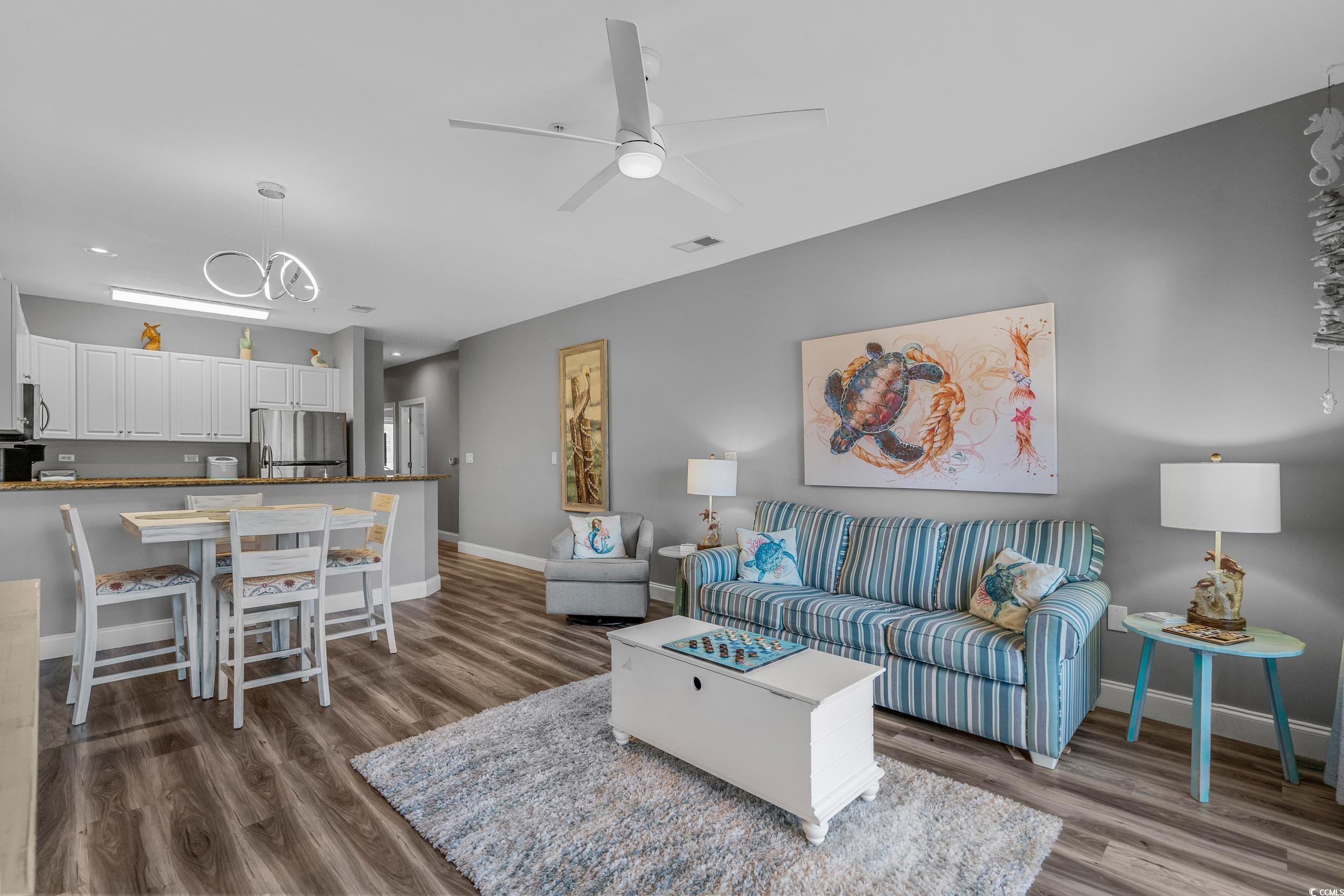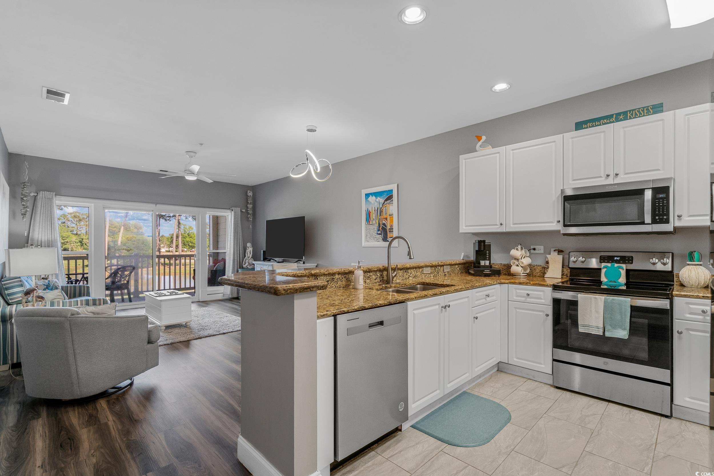 Discover this fully furnished, recently renovated 2 bed, 2 bath condo in the highly sought-after World Tour golf course community! Located in an elevator-equipped building, this fully furnished unit features a bright and open layout with granite countertops, beautiful white cabinetry, all appliances including a washer and dryer are included and modern light fixtures. There is plenty of storage for your golf clubs and beach gear, it's perfect for full-time living, a vacation getaway, or a smart investment property short and long-term rentals are allowed. Enjoy access to a sparkling community pool, clubhouse, and gym, all just minutes from shopping, dining, entertainment, the beach, and everything the Grand Strand has to offer. Be sure to check out the 3D tour and video!