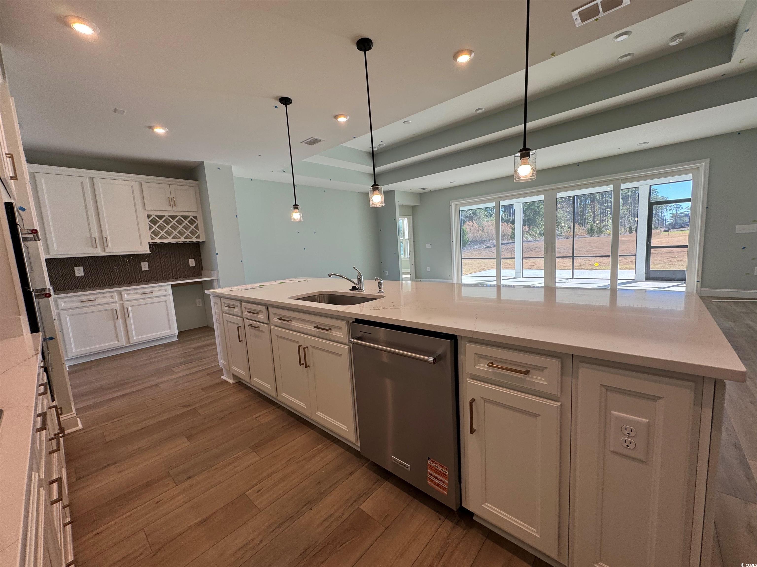 NEW Construction - Move-in Ready Janauary 2026. 3 Bedroom, 2.5 Bath, 3-Car Extended Garage. Gourmet Kitchen with White Cabinets, Quartz Countertops, modern Glass Herringbone Backsplash and Gold Cabinet Hardware. Built-in Kitchen Aid Appliances with Natural Gas Cooktop. Open Floorplan with Large Kitchen Island to Gathering Room and Cafe with dramatic double Tray Ceilings and 4-panel Glass Slider Doors to Large Screened Lanai and Patio. LVP and Tile Flooring Through-out, no Carpet! Irrigation System, Gutters, Faux White Wood Blinds, Garage Door Opener, upgraded 8 Foot Glass Panel Front Door, and Finished Garage are included on this NEW Construction home with Builder Warranties. Just a Golf Cart ride to the Beach! 55+ Active Adult/Lifestyle Community - Age Restricted, Central North Myrtle Beach, only 1.5 miles from the ocean. Golf Cart friendly, pets/fences allowed, on-site Amenity Center/Clubhouse, Yard Care, High-Speed Internet and Cable included in Monthly HOA.