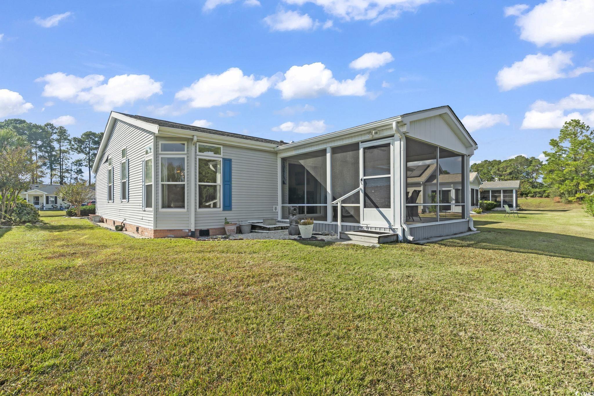 Welcome home to this beautifully maintained 3 bedroom, 2-bath single-level home in the desirable Lakeside Crossing community. Thoughtfully updated and move-in ready, this property combines comfort, charm and modern convenience just minutes from the beaches, shopping, and dining of the Grand Strand. Step inside to discover gleaming wood flooring, plantation shutters, and solar tubes that fill the space with natural light. The open floor plan flows effortlessly from the spacious living room to the dining area and kitchen-perfect for everyday living or entertaining friends and family. The kitchen is equipped with stainless steel appliances, including a new LG refrigerator (2025), dishwasher (2023), and washer & dryer (2023). Enjoy peace of mind with recent major updates- roof 2019 and HVAC 2024. Relax in the Carolina sunshine from your screened in porch or patio while taking in the serene pond view framed by beautiful mature trees- a perfect backdrop for your morning coffee or evening unwind. The professionally designed landscape curbing adds a polished touch to the exterior, enhancing the home's curb appeal. Located in the award-winning 55+ Lakeside Crossing community, residents enjoy resort-style amenities including indoor and outdoor pools, clubhouse, fitness center, tennis and pickleball courts, and countless social activities. Lot fee covers mowing, edging, trash, lot taxes and full amenities access. DON'T WAIT! Schedule your showing today!