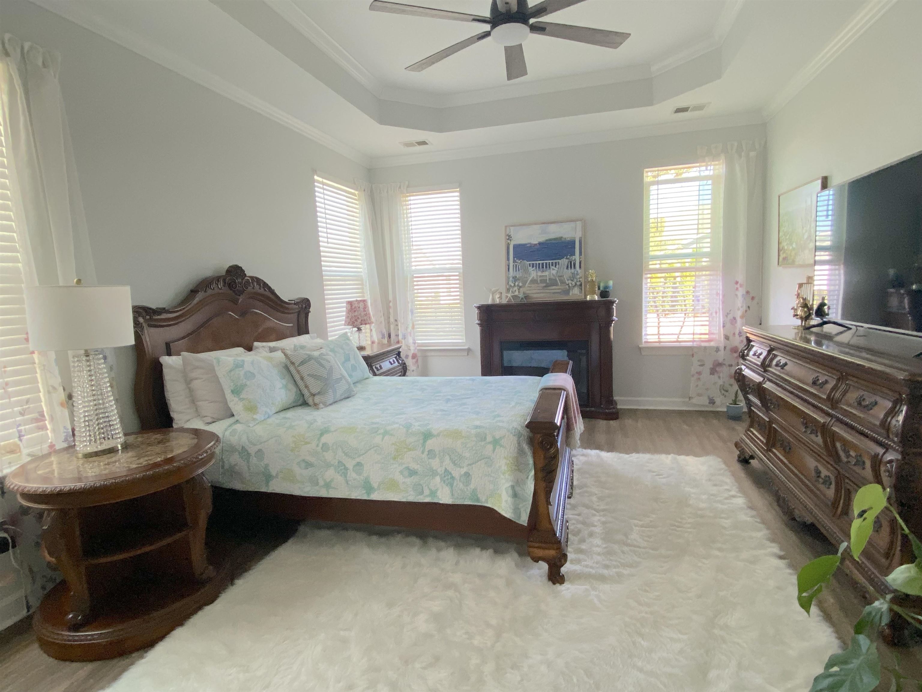 PrimaryBedroom: TrayCeilings, CeilingFans, LinenCloset, MainLevelMaster, WalkInClosets