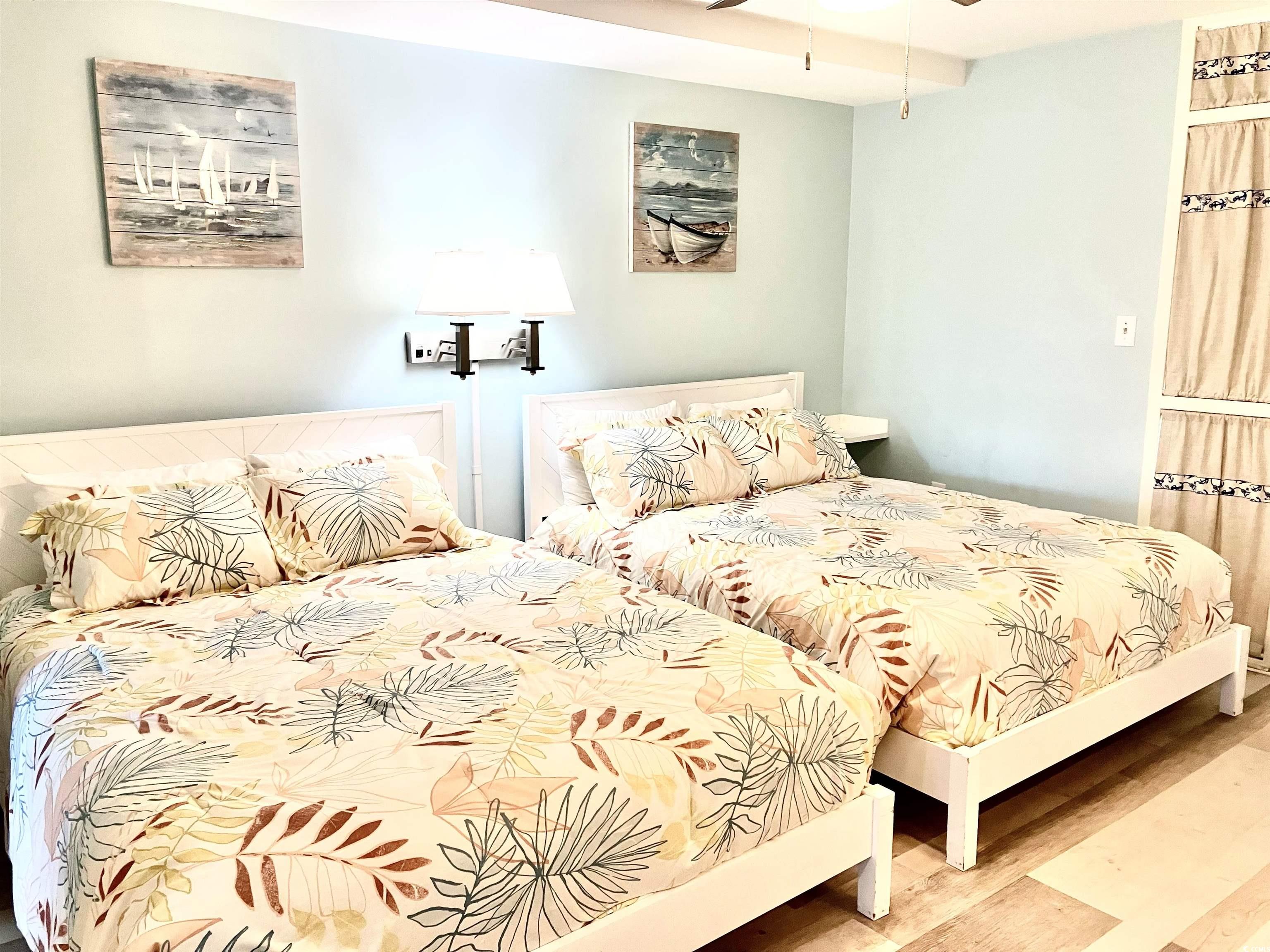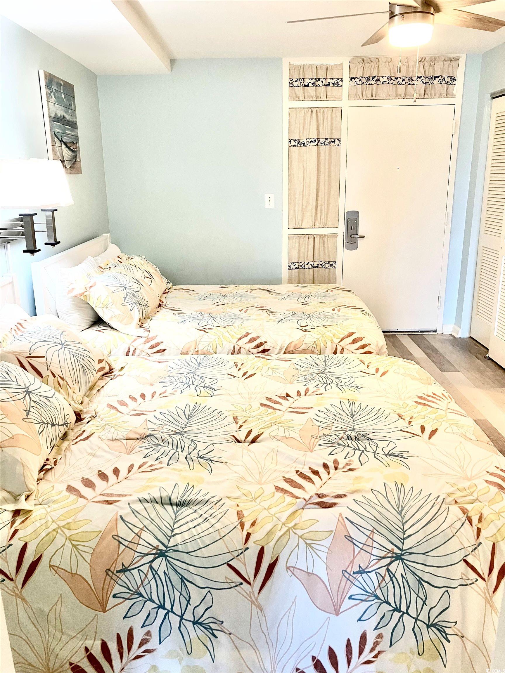 Discover your perfect coastal getaway with this charming 1-bedroom, 1.5-bath condo located in the sought-after Golden Mile of Myrtle Beach. This end unit boasts breathtaking ocean views and is just steps away from the sandy shores, making it an ideal retreat for beach lovers. Unit updated with new freshly painted walls, smooth ceilings and new baseboard throughout. New lighting fixtures and window treatments. HVAC replaced in October 2024. Two true queen size beds with new bedding. Bathrooms updated with new sinks, cabinets and mirrors. Beachy dcor throughout. Easily sleeps six people with Murphy Bed in living area.