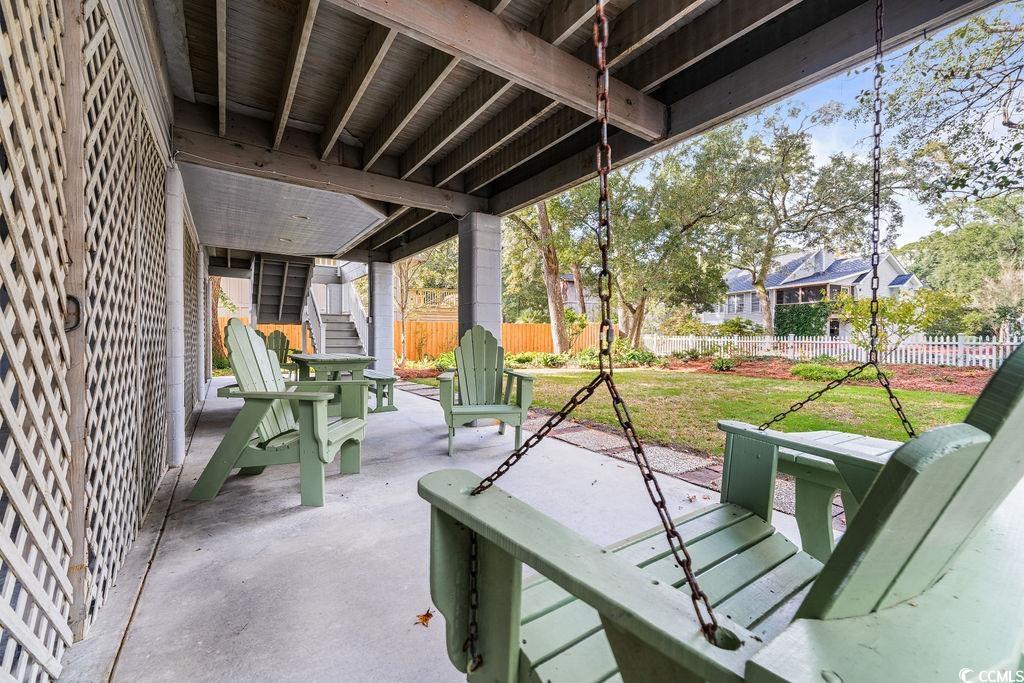 Walk or ride a golf cart to desirable North Litchfield Beach! This lovely Lowcountry style raised beach home has 3BR/3BA and is located on a great street The beautiful heart pine floors in the living area, plantation shutters, built-in cabinetry and brick fireplace add to the Lowcountry/Pawleys Island charm. The inviting back screened porch overlooks the lovely backyard and is a great place to relax or entertain. There's a large storage area underneath the house, outdoor shower, irrigation and fenced back yard. North Litchfield Beach, also known as a bird watchers paradise, is conveniently located to Brookgreen Gardens and other beautiful beaches of the Atlantic Ocean such as Pawleys Island and Huntington Beach State Park, restaurants, shopping, art galleries and medical facilities. For those seeking an active lifestyle, there are miles and miles of bike trails and many world class golf courses. This home is perfect for a permanent or vacation home. Relax, play and have fun in the sun at North Litchfield Beach, Pawleys Island, South Carolina. You can enjoy everything that Myrtle Beach and Historic Charleston have to offer for the day or evening and return back to the laid-back serene lifestyle in North Litchfield Beach, Pawleys Island, SC. Voluntary HOA.