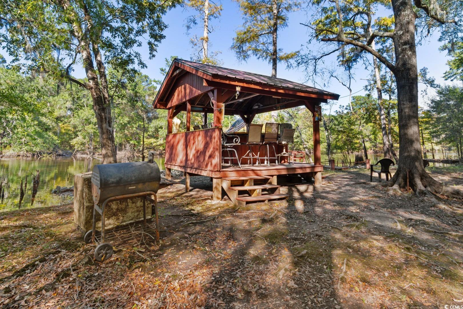 Hidden off the beaten path on the deep waters of the Waccamaw River, this private, gated 3-bedroom, 2-bath home sits on 5.6 serene acres---a true Lowcountry fishing and hunting paradise. From the moment you arrive, you'll feel a world away, surrounded by mature landscaping and a hand-cleared natural area leading to your own 700+ foot pier walkway and 270 feet of pristine riverfront. Whether you're casting a line at sunrise, launching your boat from the floating dock, or gathering under the tiki hut and gazebo for a cookout, this is the kind of place where memories are made. The home itself is low-maintenance, open, and airy---completely move-in ready with no HOA fees. Inside, you'll find a spacious master suite with a large walk-in closet and a private bath featuring a double vanity, walk-in shower, and a relaxing garden soaking tub. The kitchen offers plenty of cabinet and counter space plus a roomy pantry, while ceiling fans throughout keep the air fresh and energy bills low. Step out onto the oversized side deck and enjoy the best of both worlds, a beautiful yard with privacy, and access to the river with spectacular views! This is more than just a home, it's a family retreat designed for generations to enjoy, where weekends stretch long, and the simple pleasures of nature take center stage!