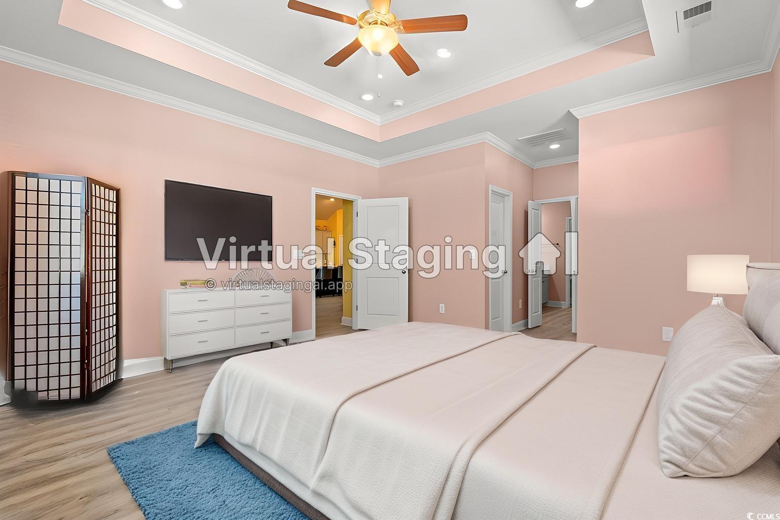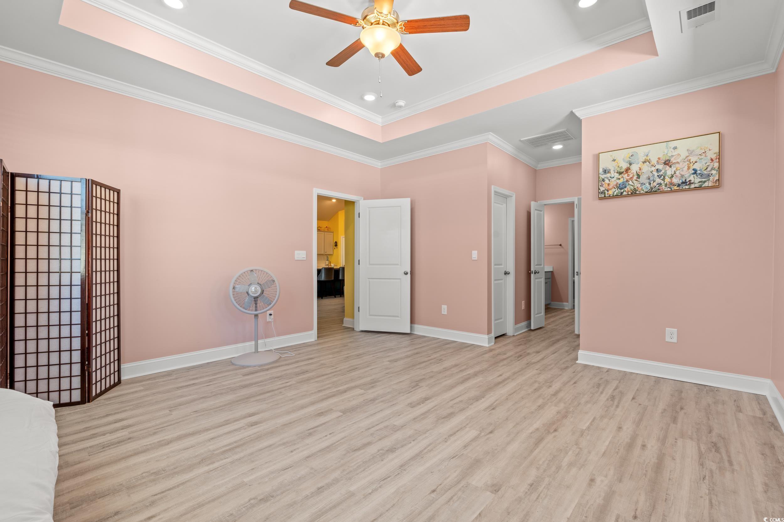PrimaryBedroom: CeilingFans, LinenCloset, MainLevelMaster, WalkInClosets