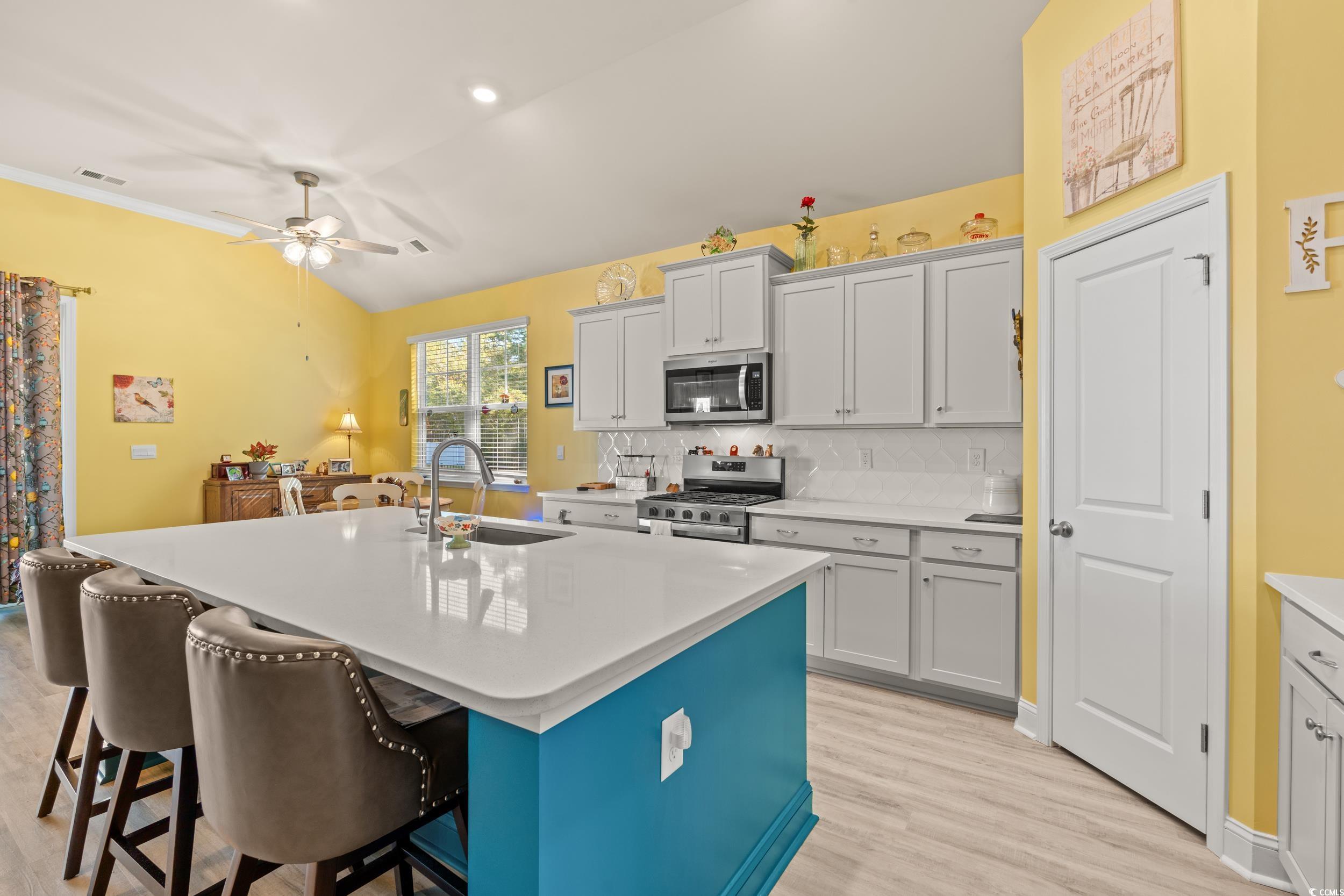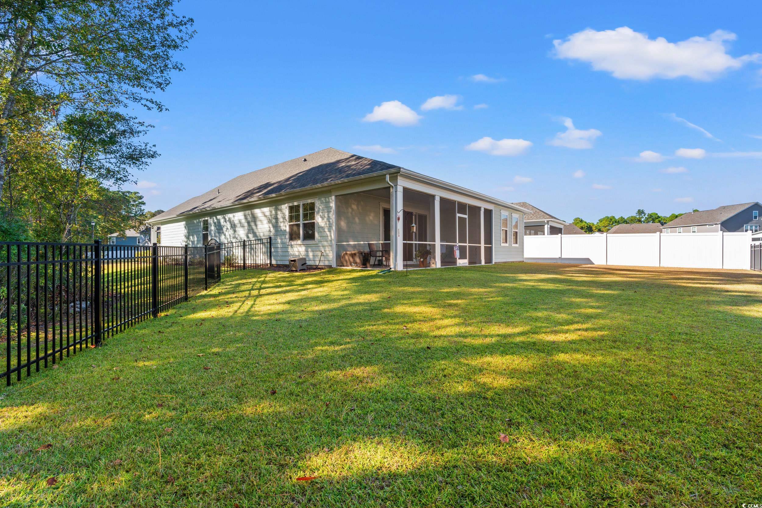 Located in the highly desirable Waterbridge community in Carolina Forest, youll be just minutes from shopping, dining, golf, top-rated schools, and the beach. Enjoy resort-style amenities including a grand clubhouse, South Carolinas largest residential swimming pool, fitness center, tennis, pickleball, basketball, volleyball, bocce courts, and even a private lake with a boat launch. Litchfield floor plan one One of our most sought-after single-level homes in Waterbridge. Built just last year, this home feels practically brand. Featuring four spacious bedrooms and an open-concept layout, this home is designed for both comfort and entertaining. Soaring 11-foot ceilings, abundant natural light, and a seamless flow between the living, dining, and kitchen areas create an inviting atmosphere. The kitchen is a showstopper with quartz countertops, stainless steel appliances, and a large pantry that opens directly to the family room. The owners suite offers a spa-like retreat with a tiled 5-foot shower, dual vanities, and two generous closets. Oversized sliding glass doors from the dining area open to a generous covered porch and beautifully fenced backyard, creating a seamless blend of indoor comfort and outdoor enjoyment ideal for entertaining or letting your pets roam freely. Dont miss your chance to call this home yours! Schedule your showing today and experience firsthand why everyone is falling in love with this community and lifestyle!