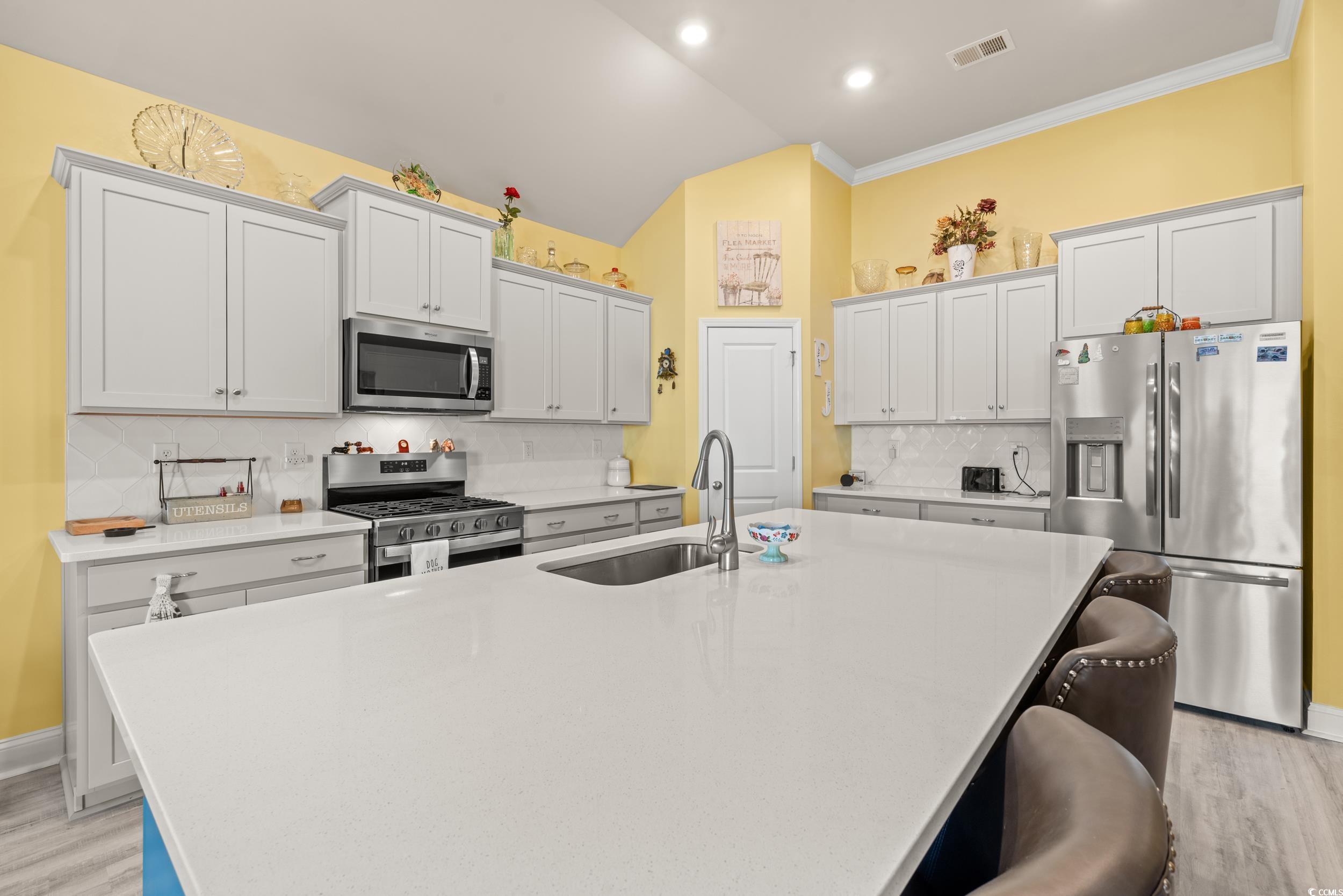 Located in the highly desirable Waterbridge community in Carolina Forest, youll be just minutes from shopping, dining, golf, top-rated schools, and the beach. Enjoy resort-style amenities including a grand clubhouse, South Carolinas largest residential swimming pool, fitness center, tennis, pickleball, basketball, volleyball, bocce courts, and even a private lake with a boat launch. Litchfield floor plan one One of our most sought-after RANCH single-level homes in Waterbridge. Built just last year, this home feels practically brand. Featuring four spacious bedrooms and an open-concept layout, this home is designed for both comfort and entertaining. Soaring 11-foot ceilings, abundant natural light, and a seamless flow between the living, dining, and kitchen areas create an inviting atmosphere. The kitchen is a showstopper with quartz countertops, stainless steel appliances, and a large pantry that opens directly to the family room. The owners suite offers a spa-like retreat with a tiled 5-foot shower, dual vanities, and two generous closets. Oversized sliding glass doors from the dining area open to a generous covered porch and beautifully fenced backyard, creating a seamless blend of indoor comfort and outdoor enjoyment ideal for entertaining or letting your pets roam freely. Dont miss your chance to call this home yours! Schedule your showing today and experience firsthand why everyone is falling in love with this community and lifestyle!