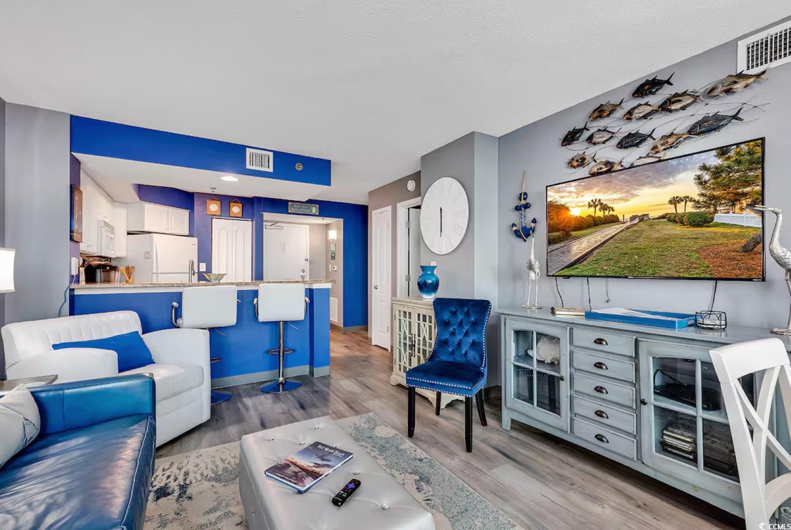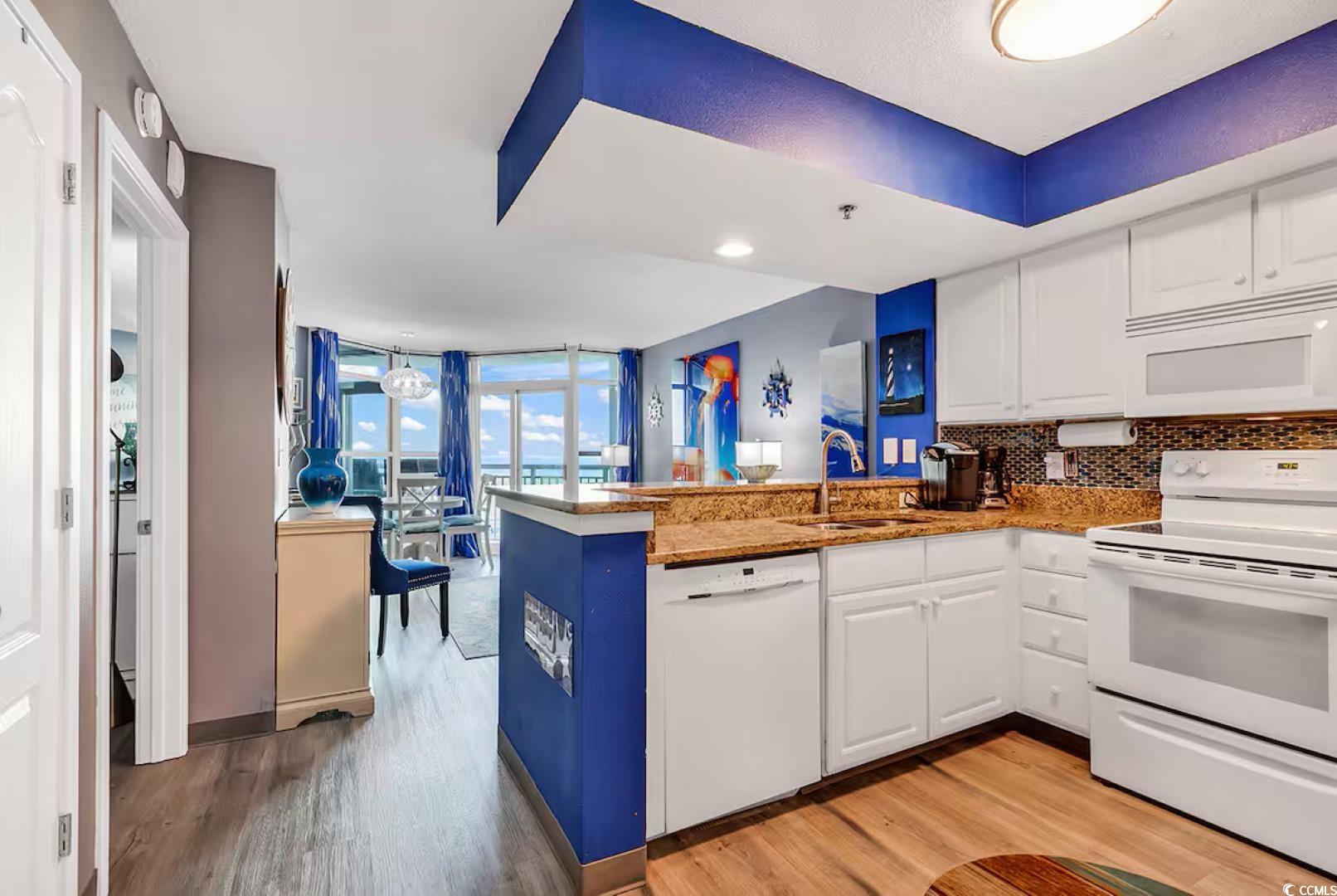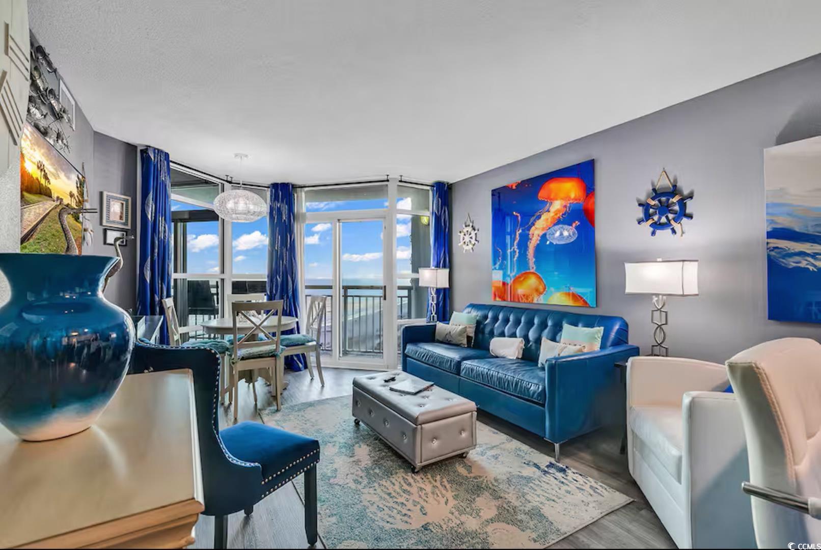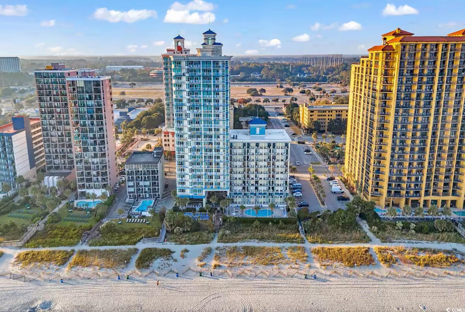 Beautifully updated 1BR/1BA ocean-view condo at the prestigious Carolinian Beach Resort in the heart of Myrtle Beach. This fully furnished unit offers a bright, open floor plan with luxury vinyl plank and tile flooring, granite countertops, and a full kitchen with ample cabinet and counter space. The spacious bedroom features two queen beds, balcony access, and a large ensuite bath. Enjoy stunning ocean views from the private balcony and the convenience of an in-unit washer/dryer. Resort amenities include indoor and outdoor pools, a lazy river, hot tub, kiddie pool, and fitness center. Perfect as a primary residence, vacation getaway, or investment property-just steps from the beach and minutes to Broadway at the Beach, Topgolf, dining, and shopping.